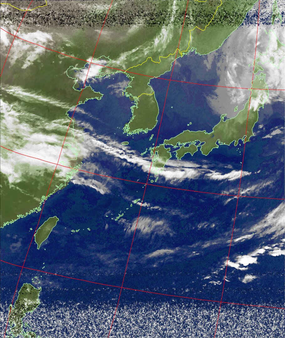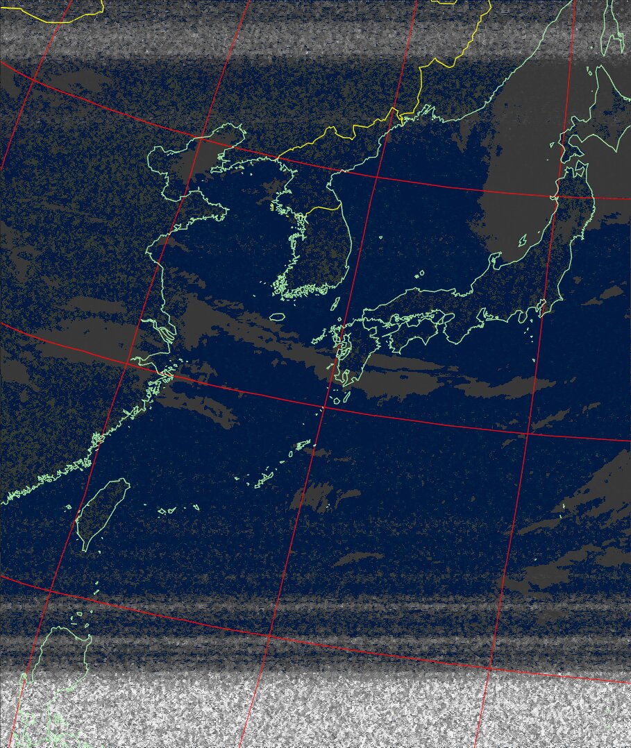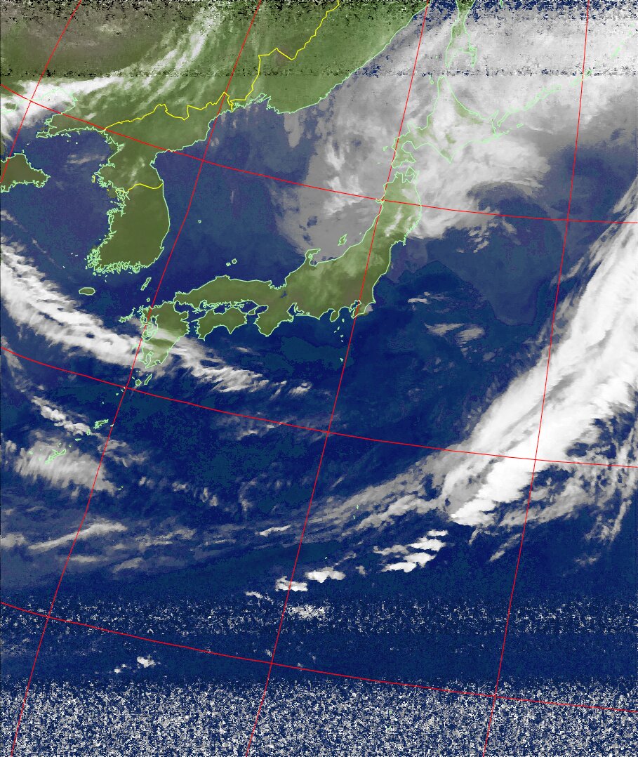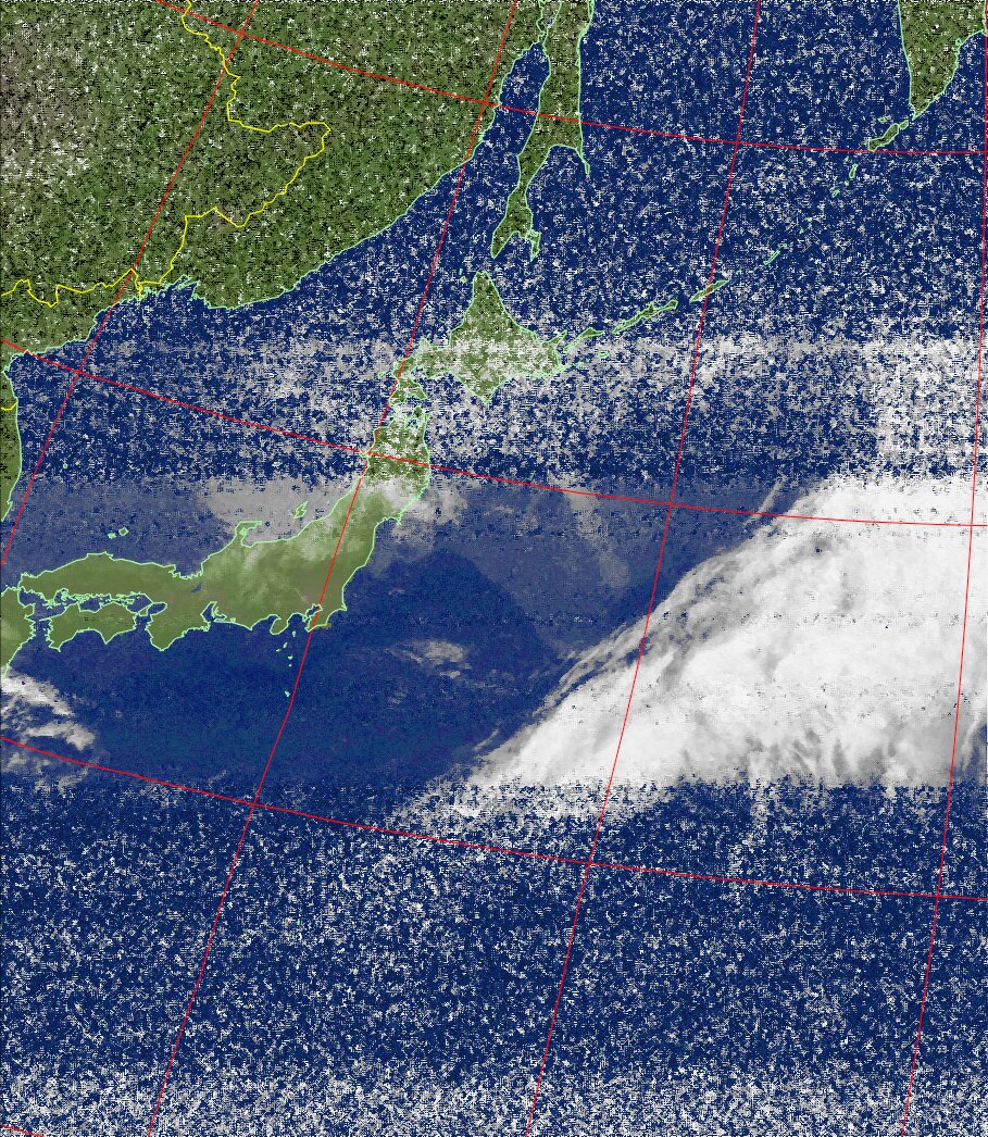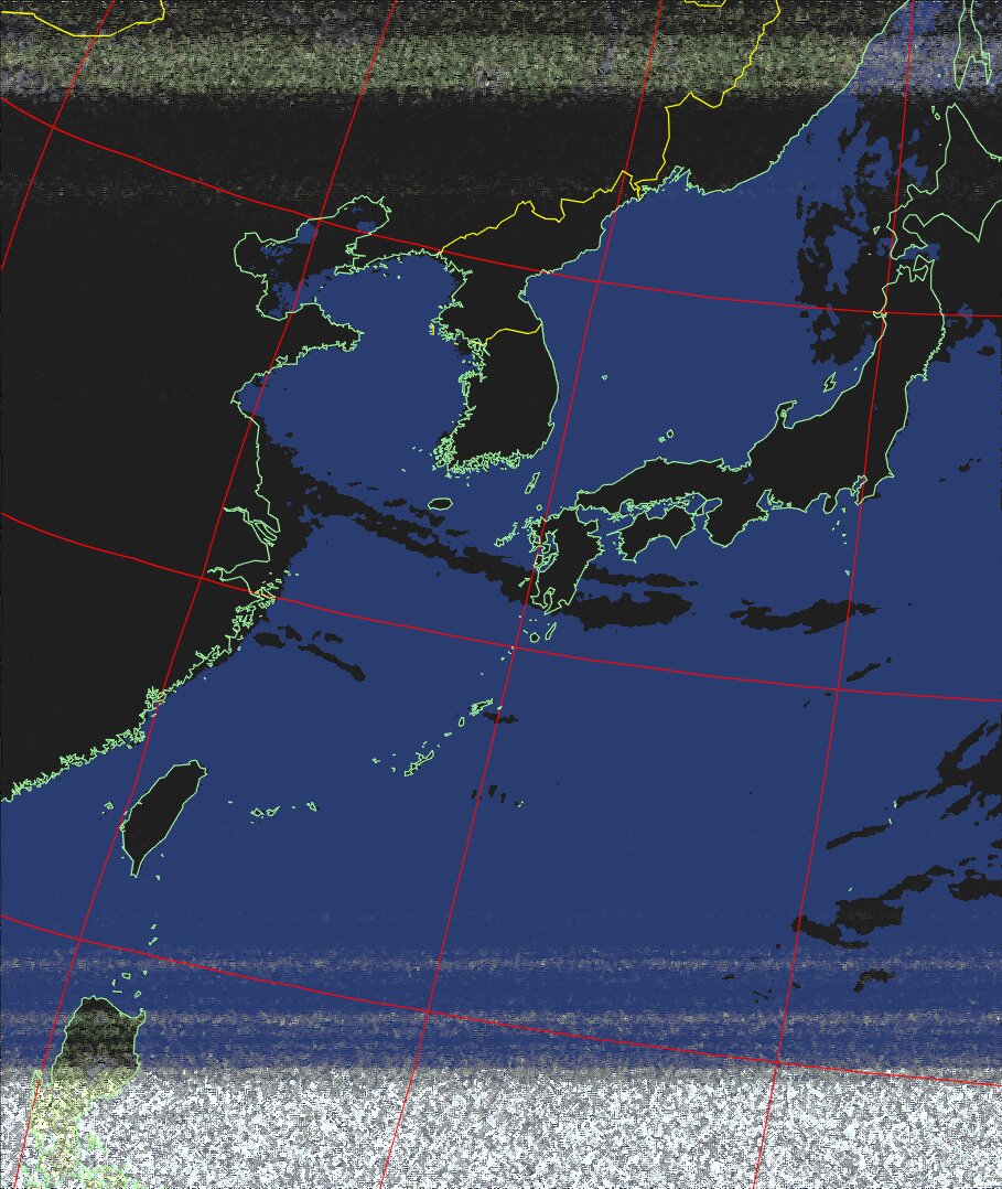 | NOAA18 11:19:21~11:35:01 進行方向(北から南) 最大昇角(72°) 方角(西) |