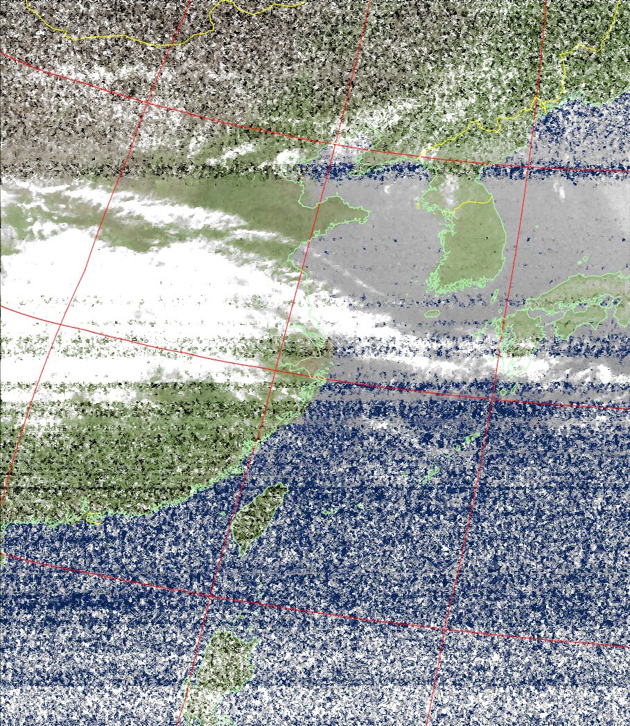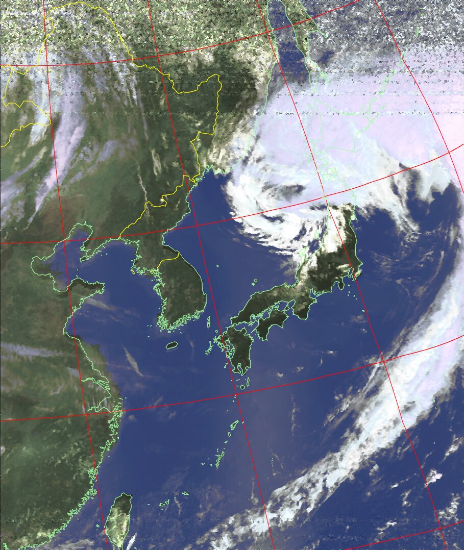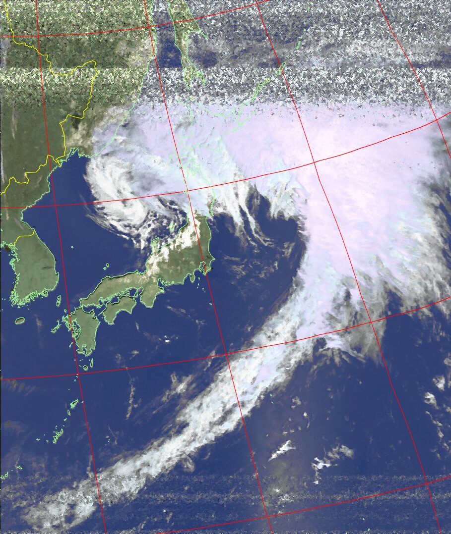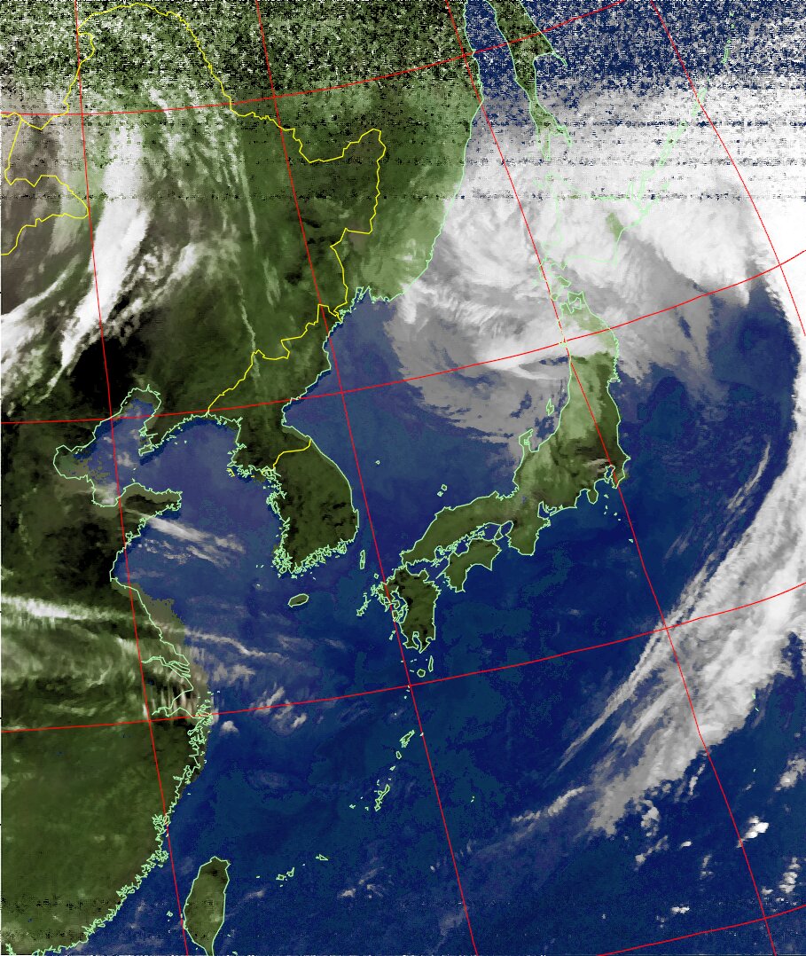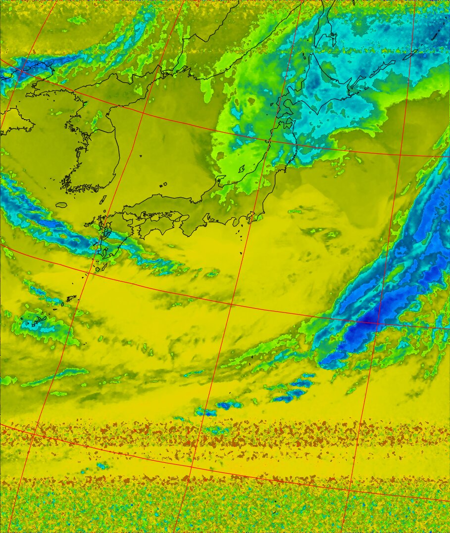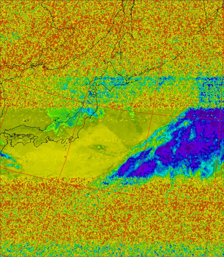 | NOAA18 11:19:21~11:35:01 進行方向(北から南) 最大昇角(72°) 方角(西) |