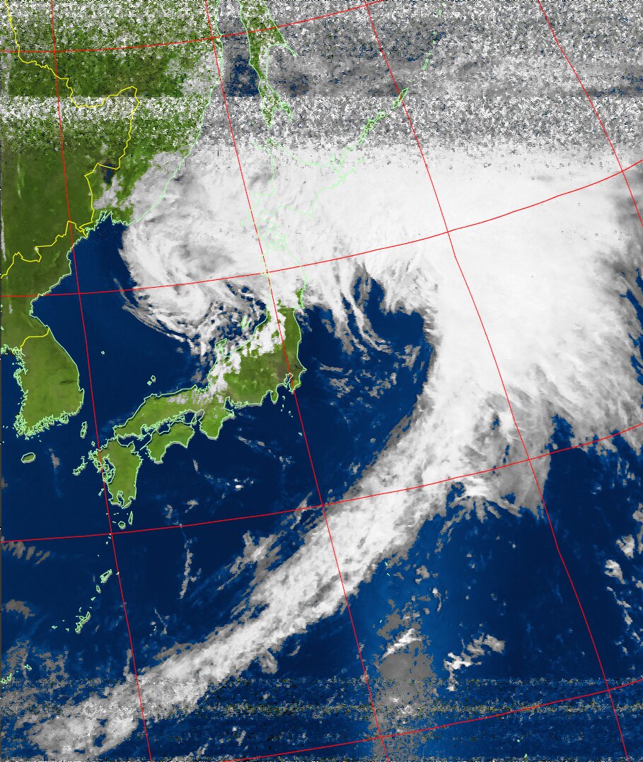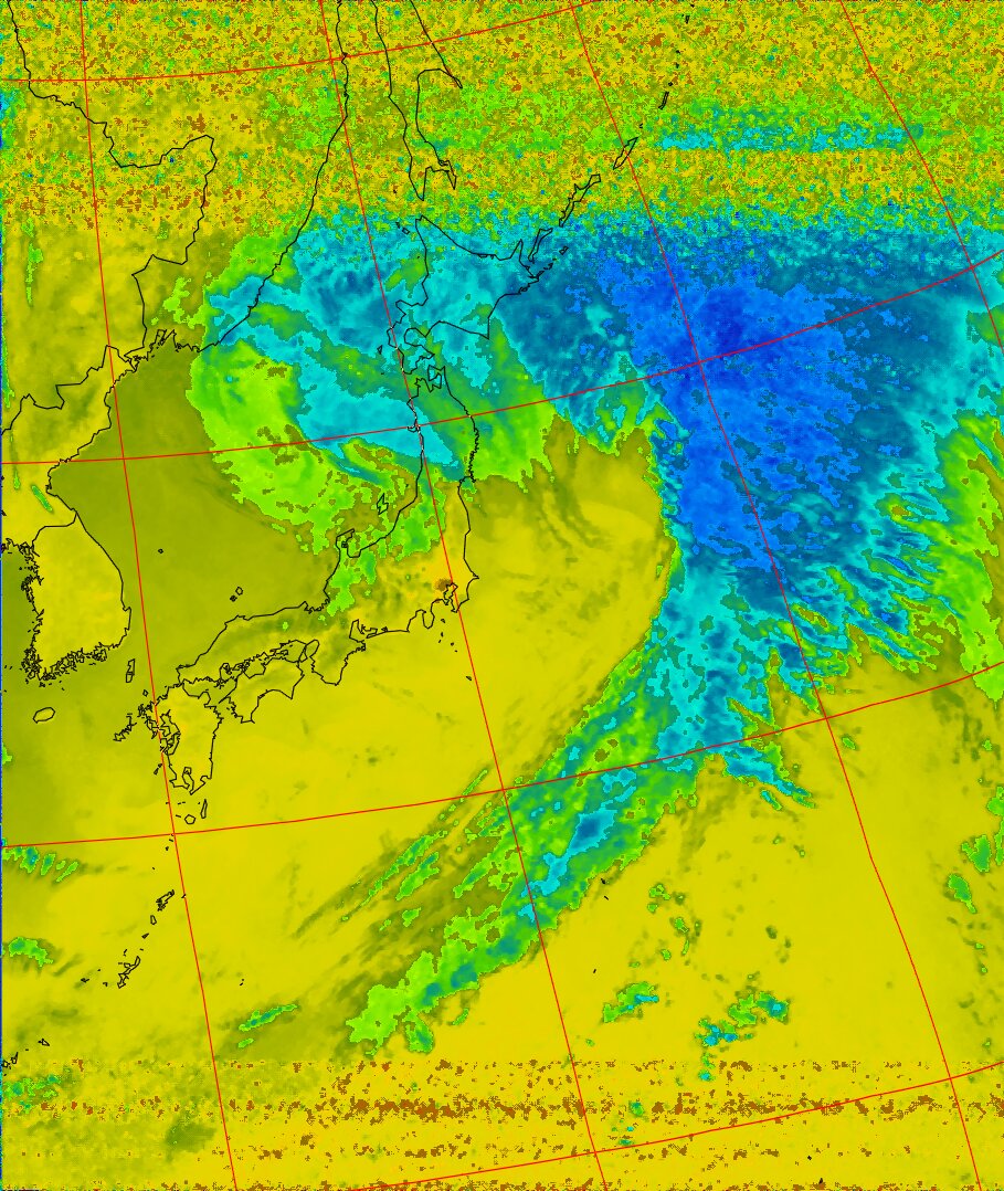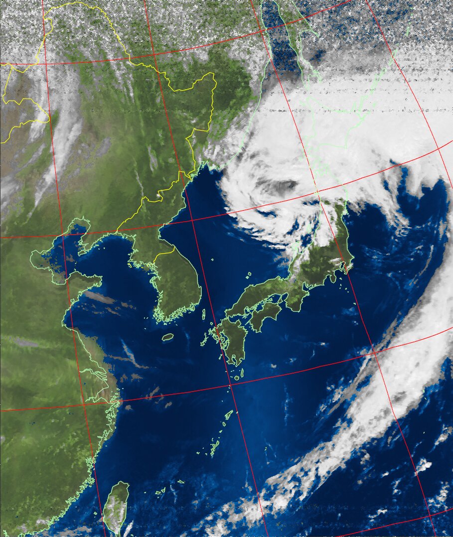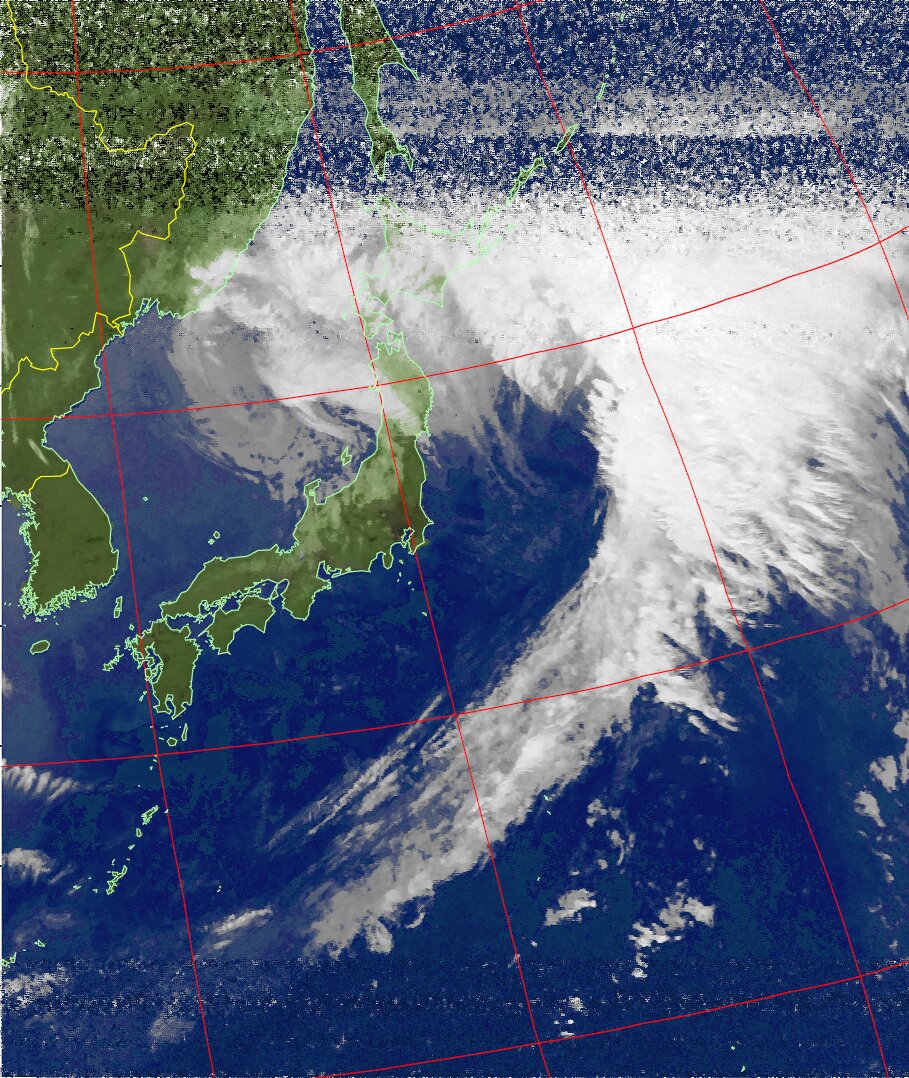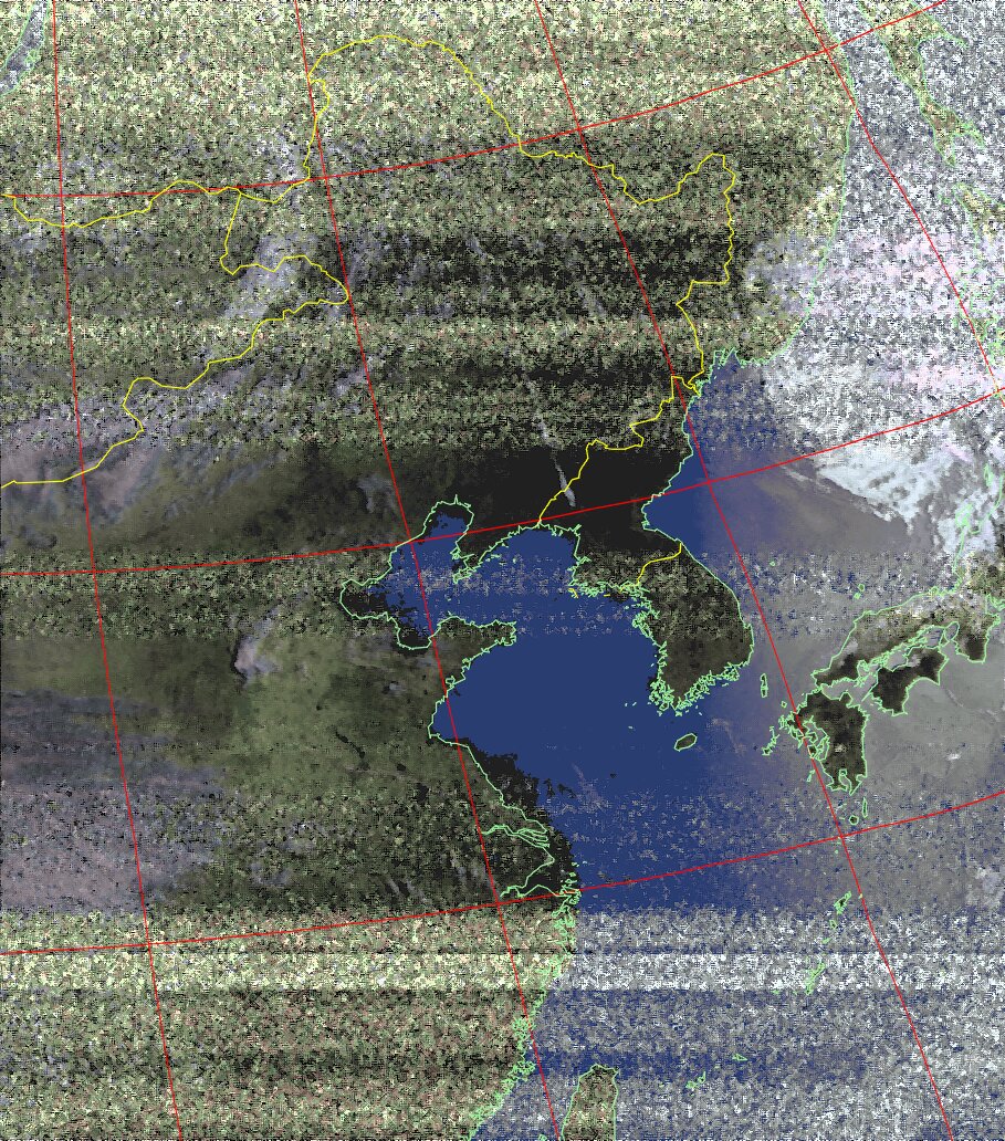 | NOAA18 11:19:21~11:35:01 進行方向(北から南) 最大昇角(72°) 方角(西) |