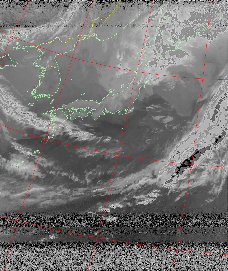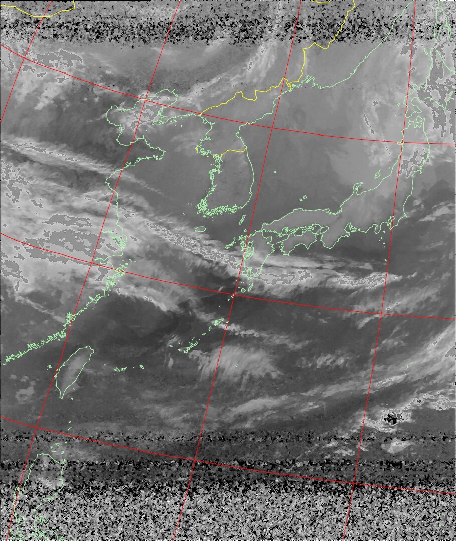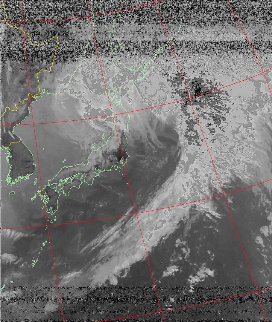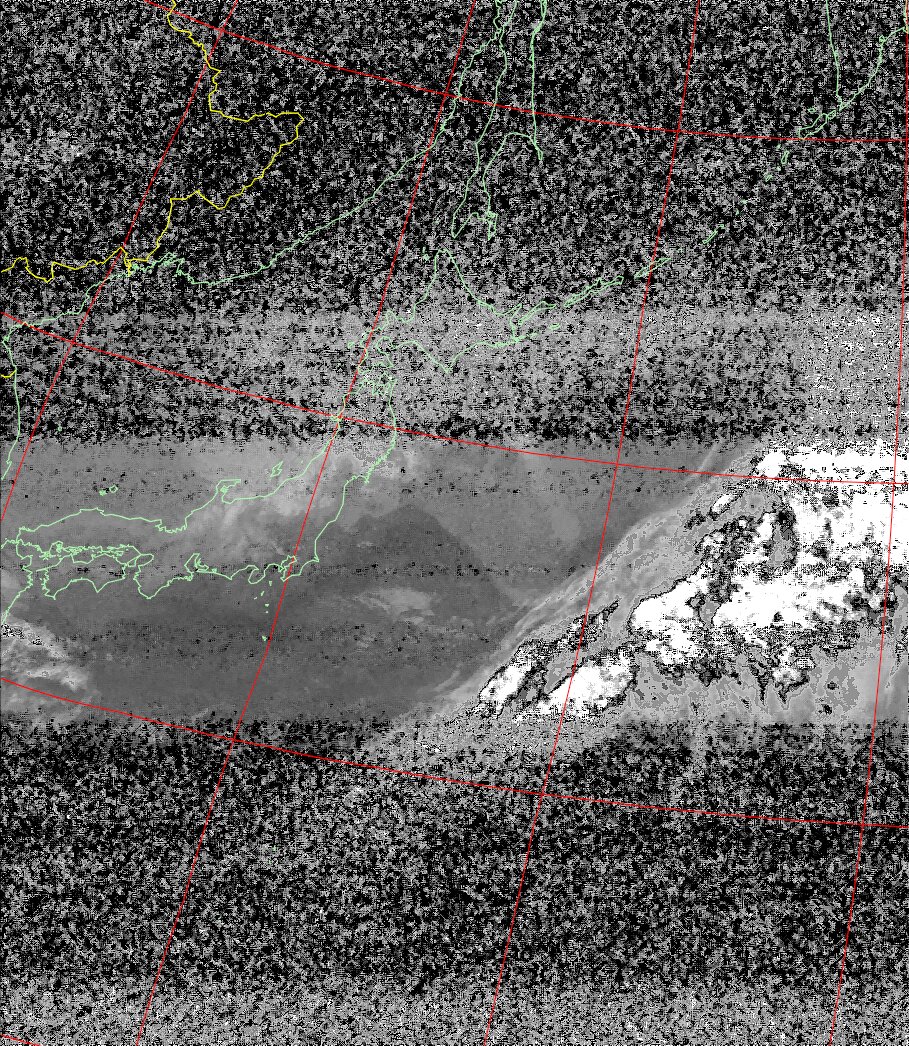 | NOAA19 09:37:35~09:52:53 進行方向(北から南) 最大昇角(45°) 方角(東) |