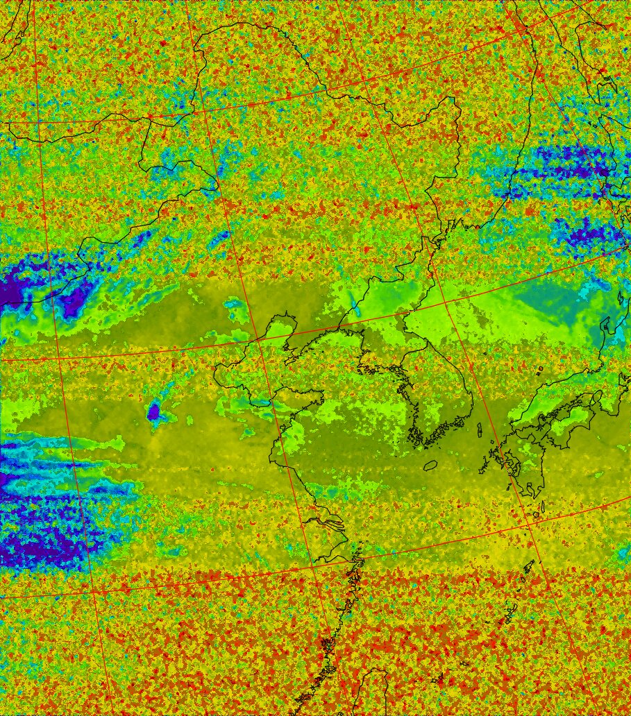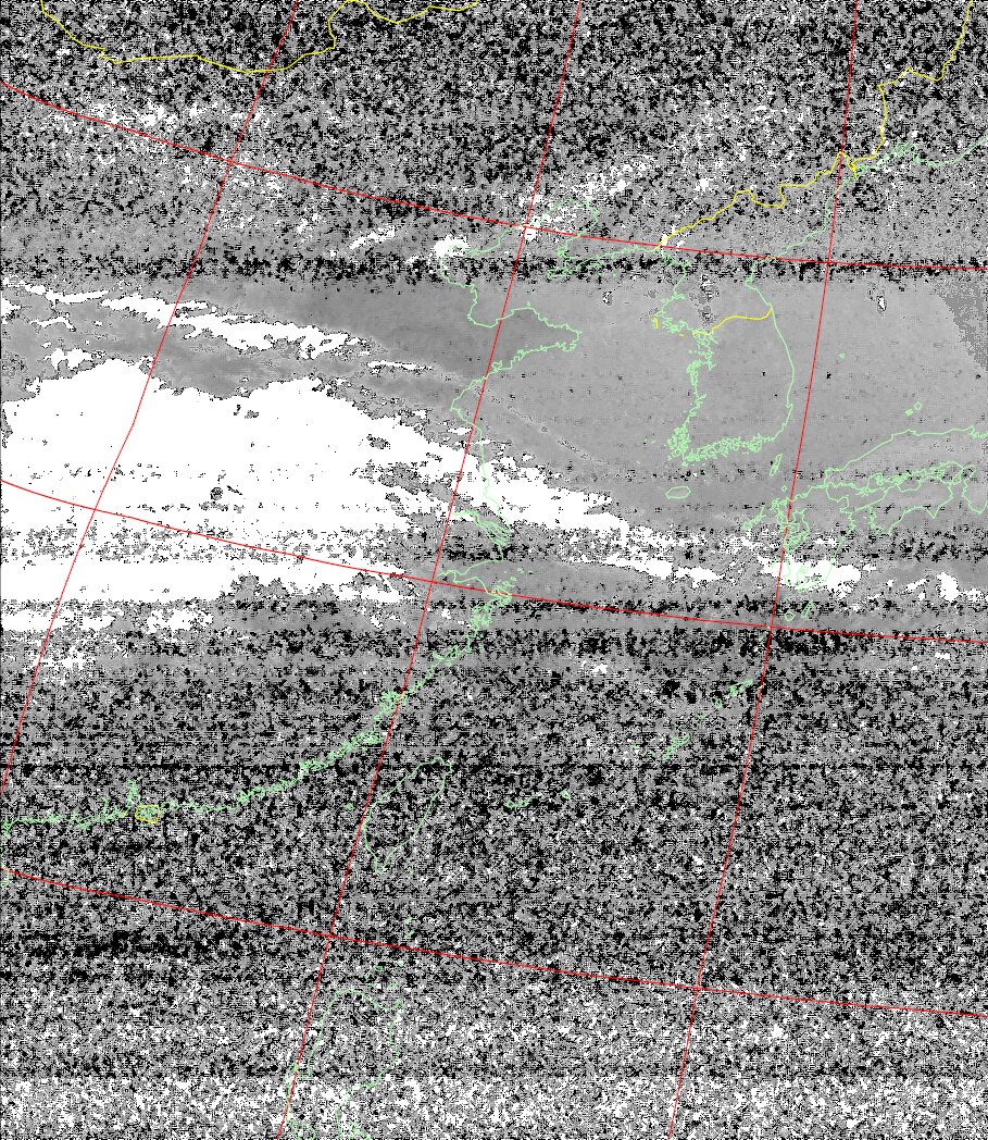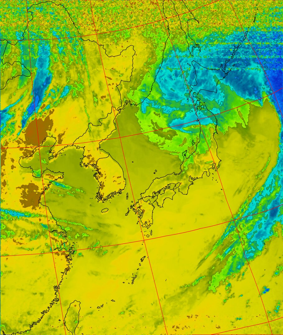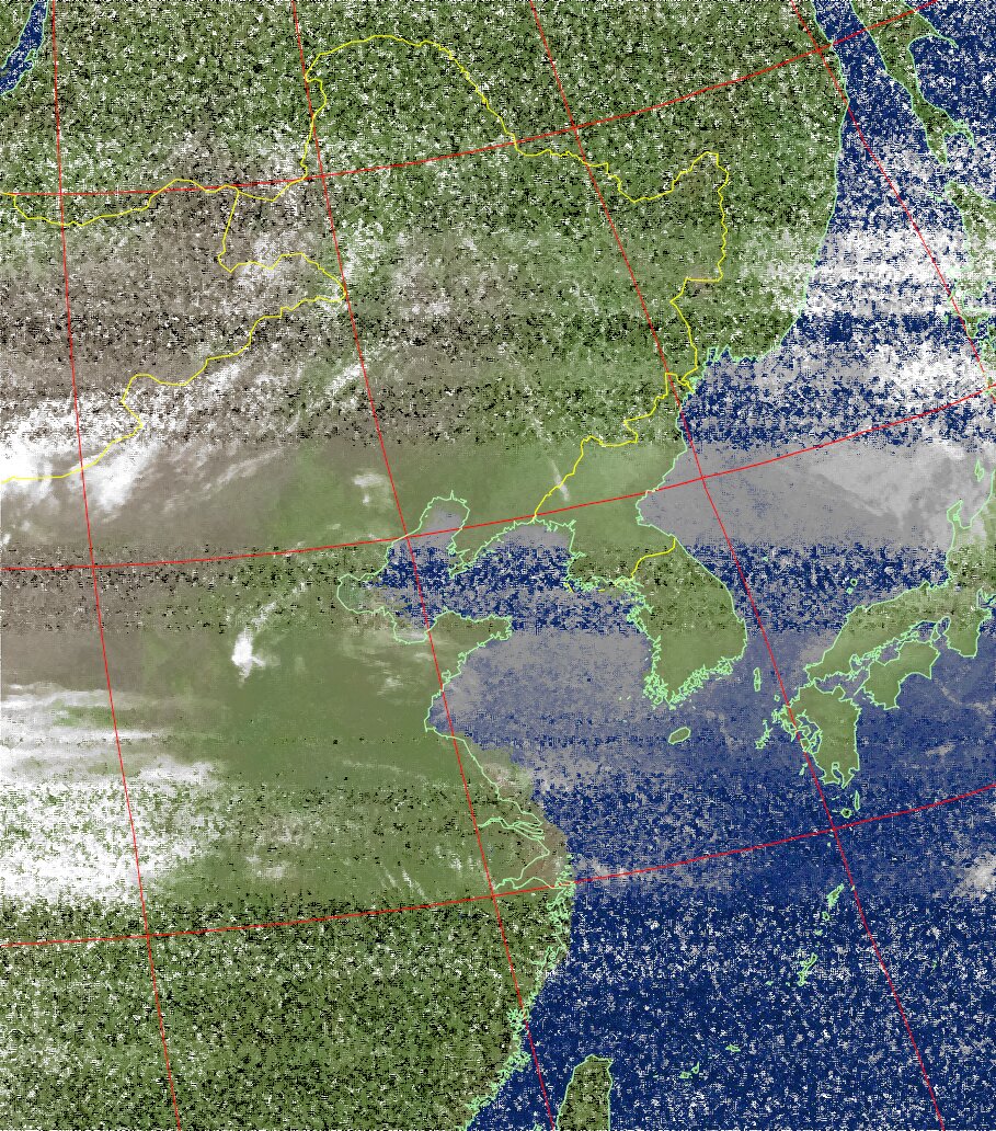 | NOAA19 09:37:35~09:52:53 進行方向(北から南) 最大昇角(45°) 方角(東) |