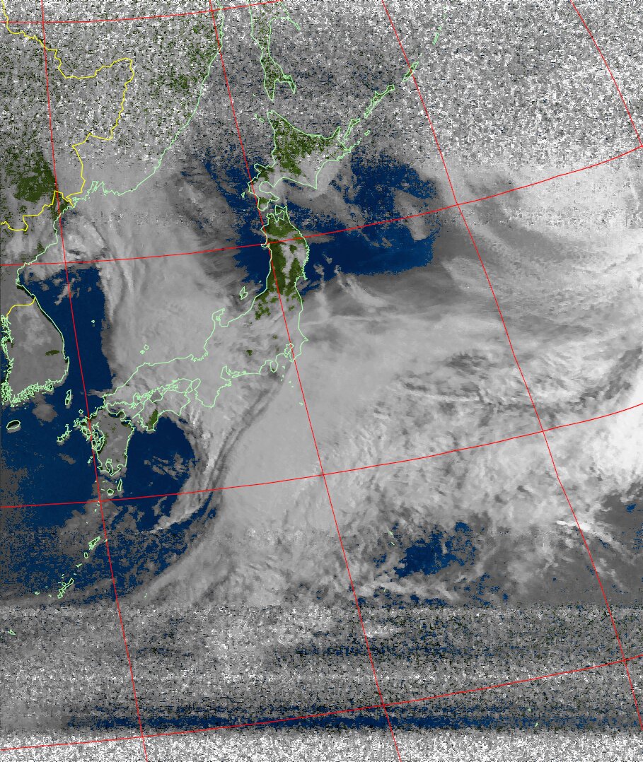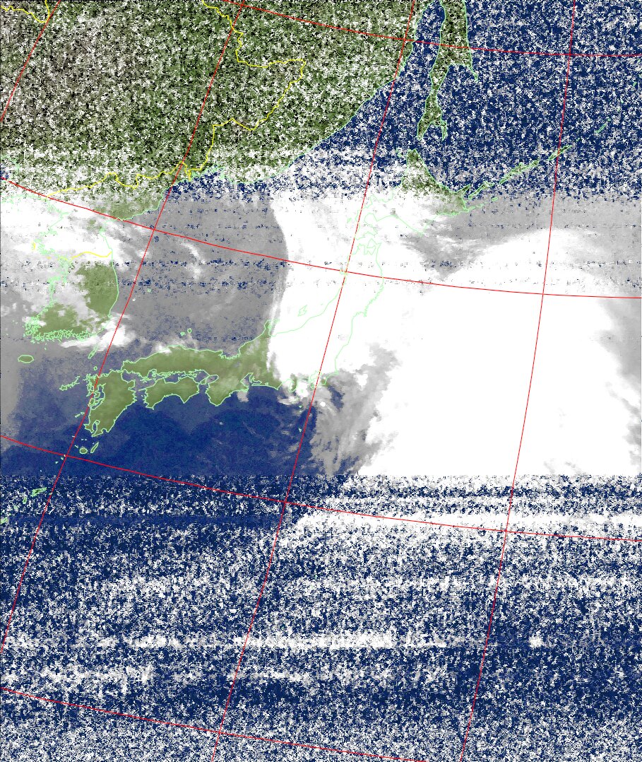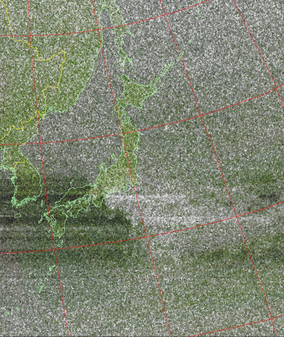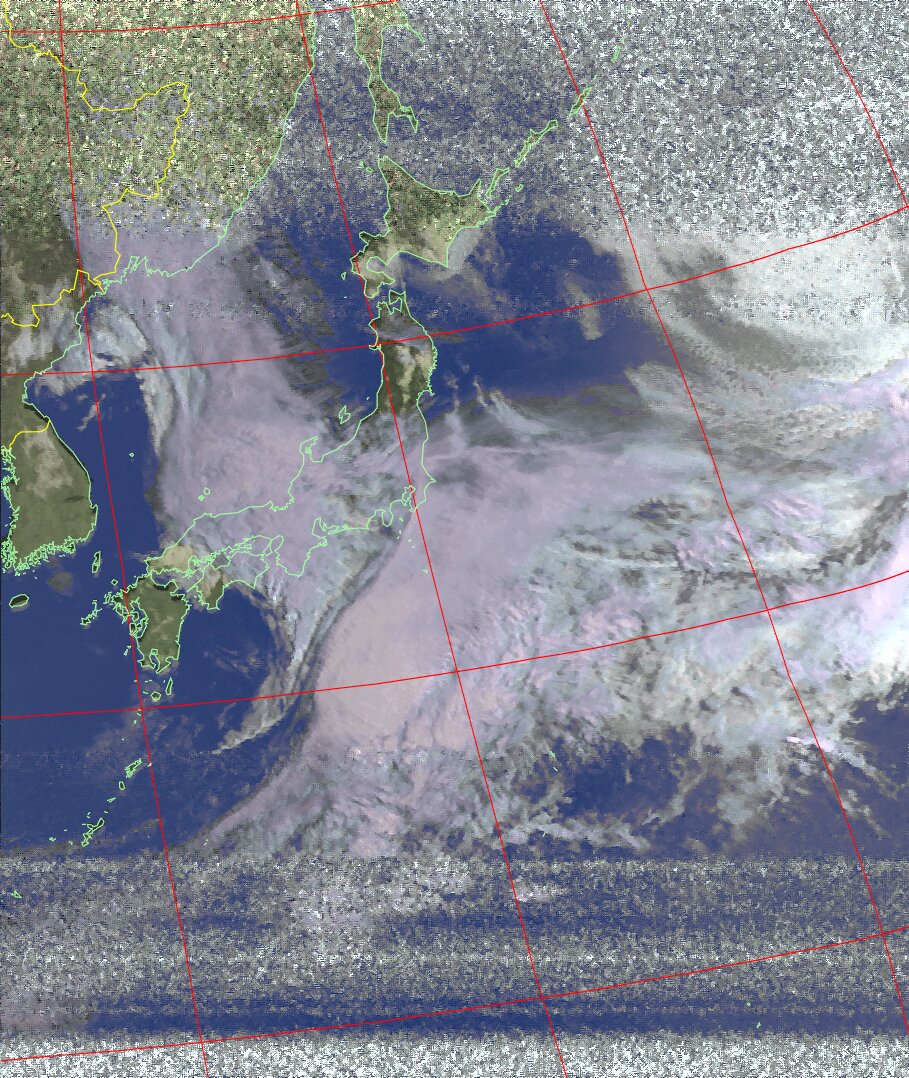 NOAA18 10:40:49~10:56:15 進行方向(北から南) 最大昇角(47°) 方角(東)