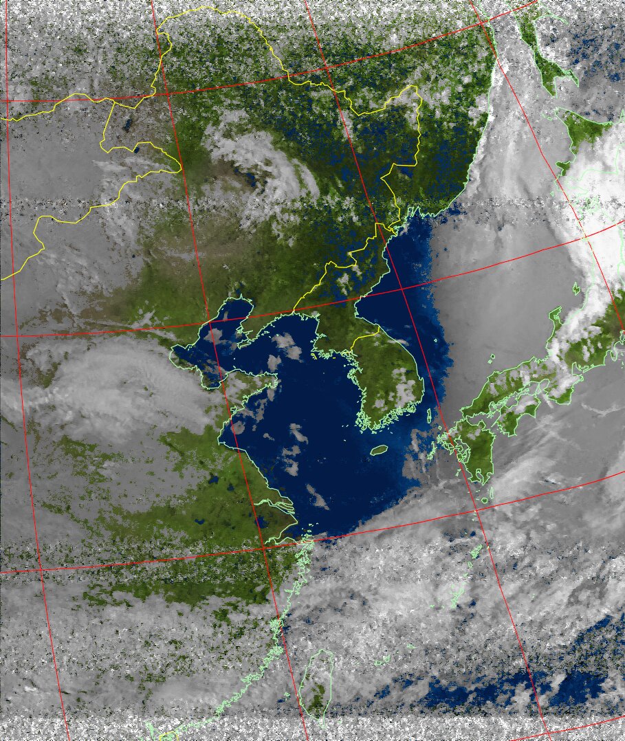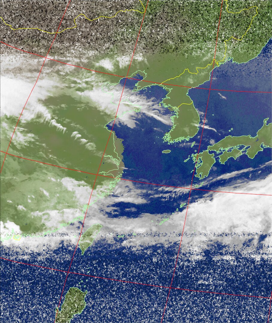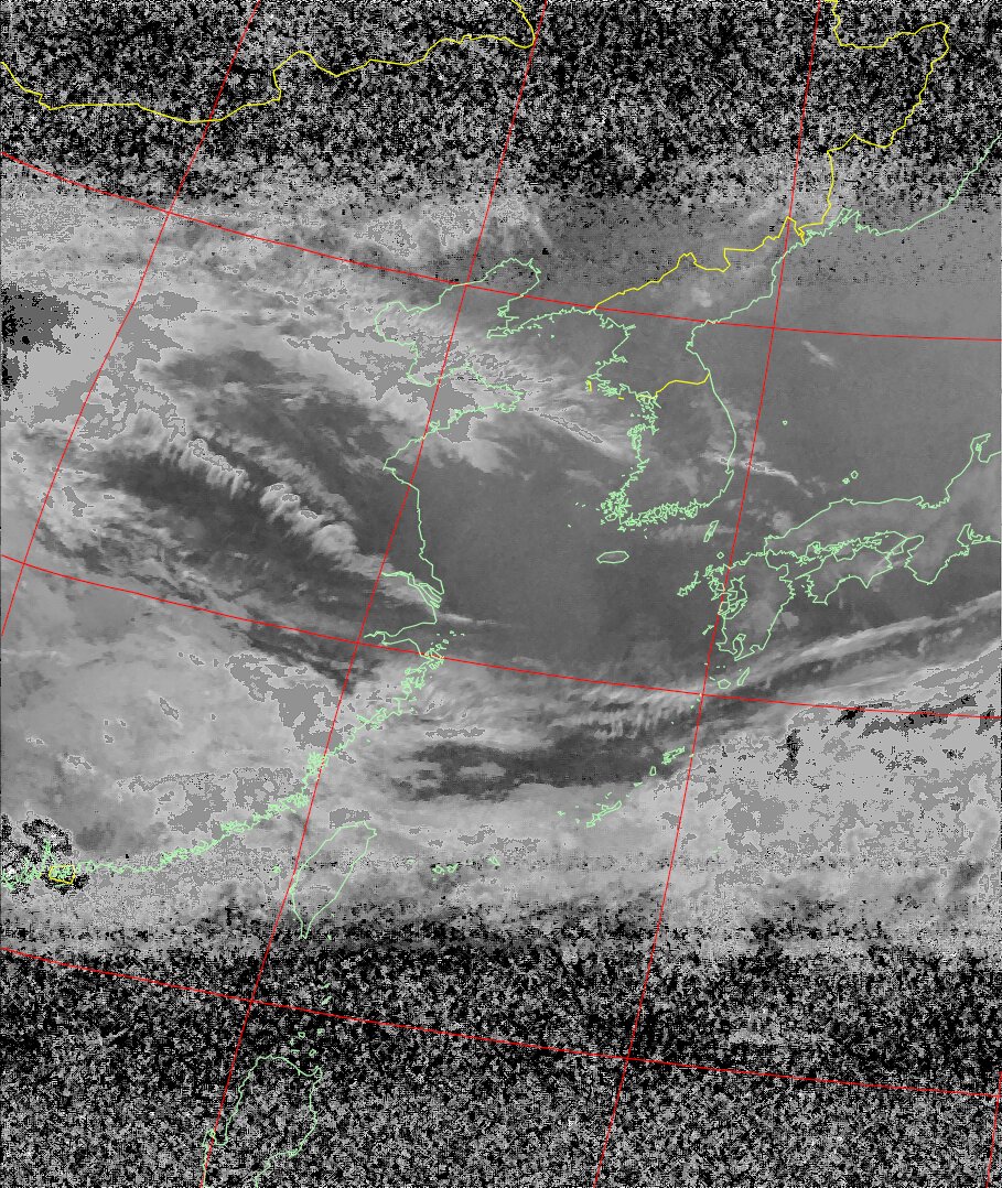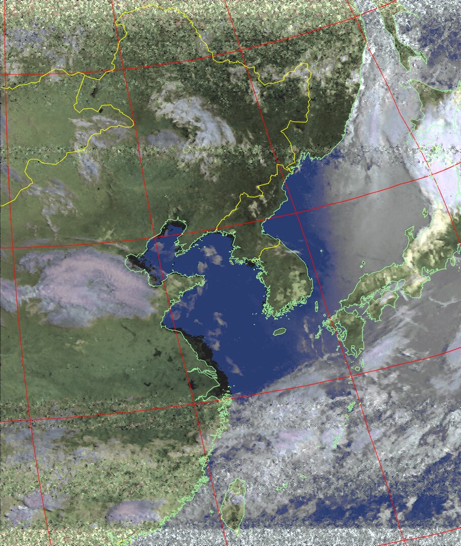 NOAA19 09:37:02~09:52:16 進行方向(北から南) 最大昇角(44°) 方角(東)