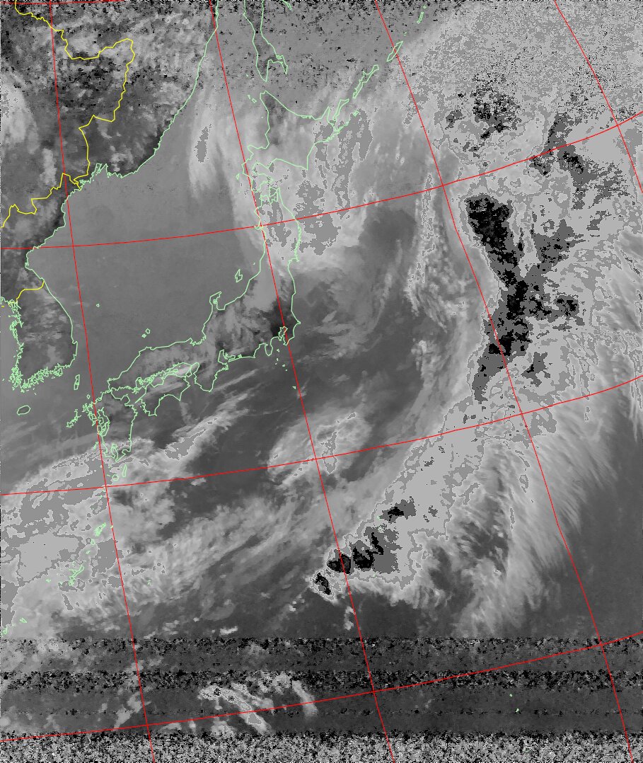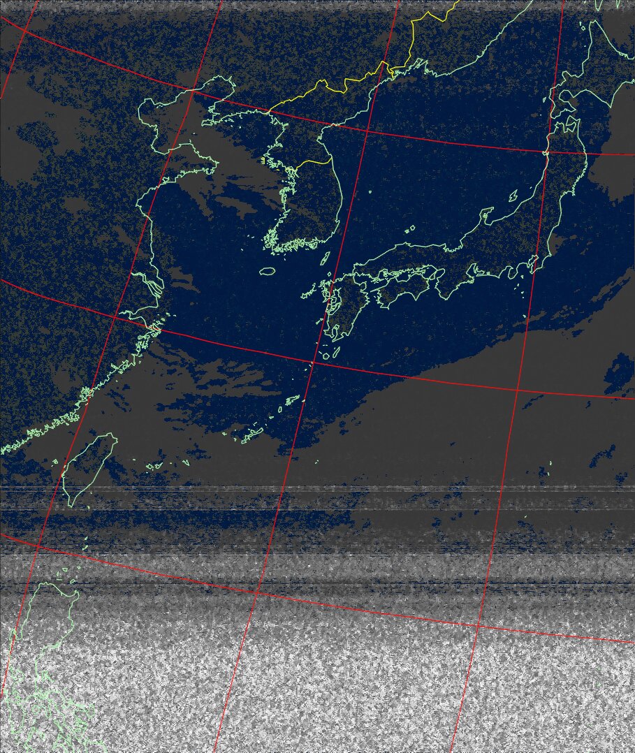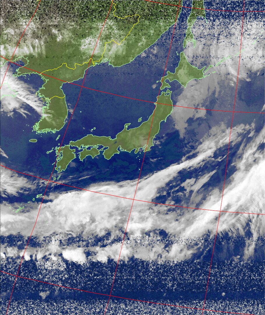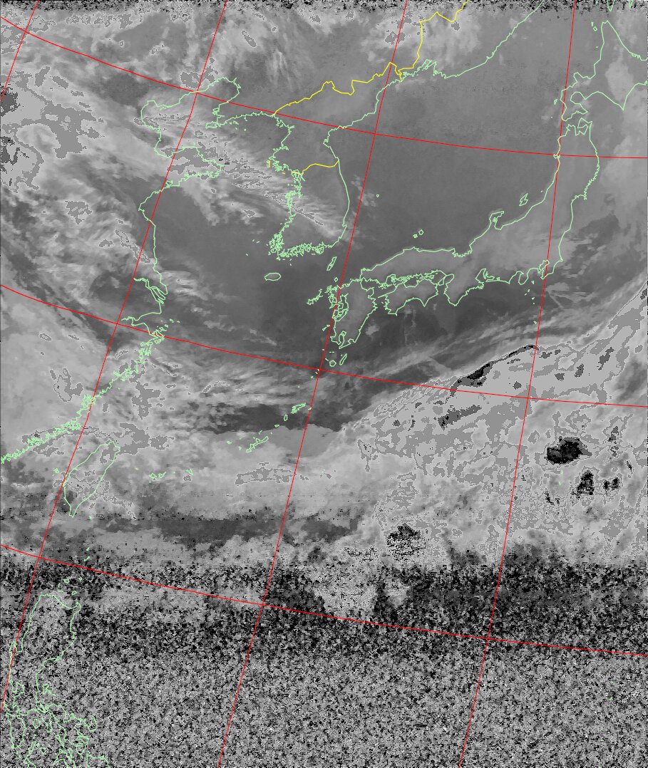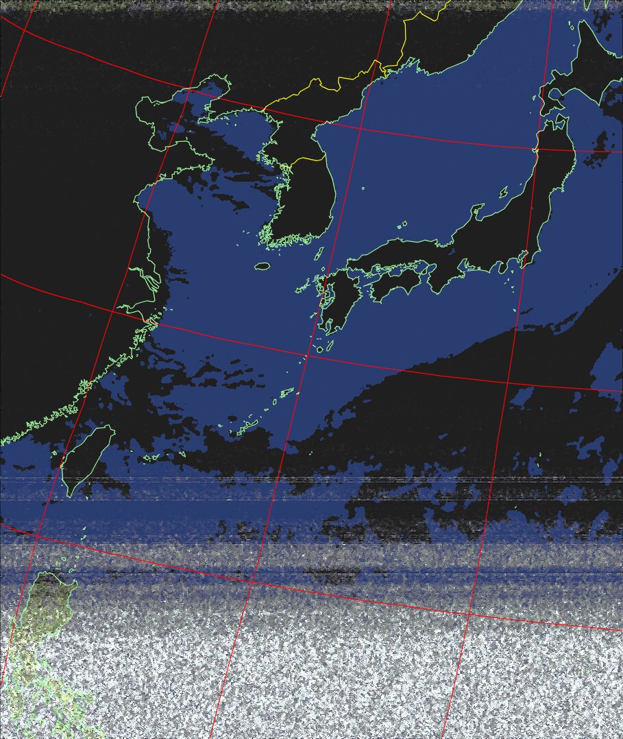 NOAA18 11:16:57~11:32:35 進行方向(北から南) 最大昇角(77°) 方角(西)