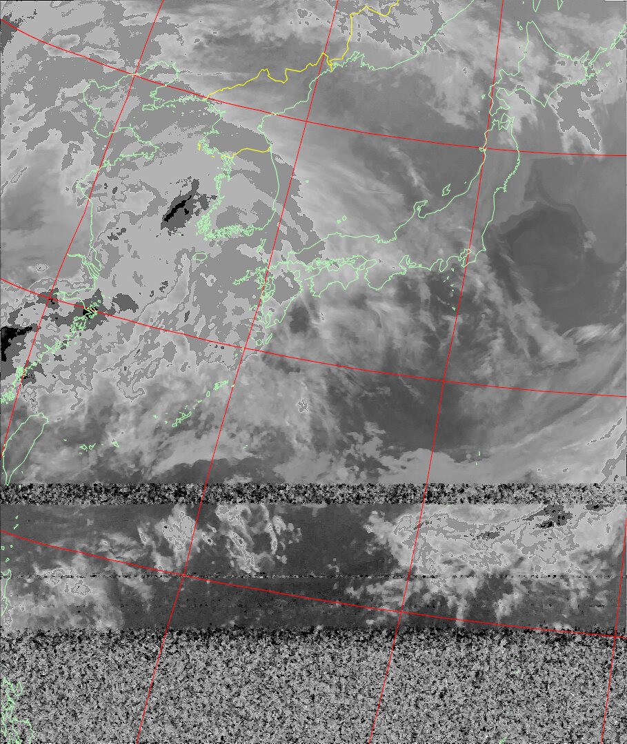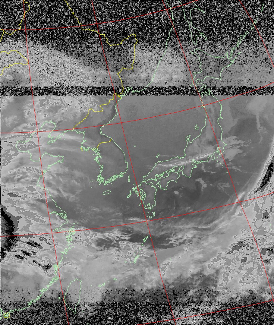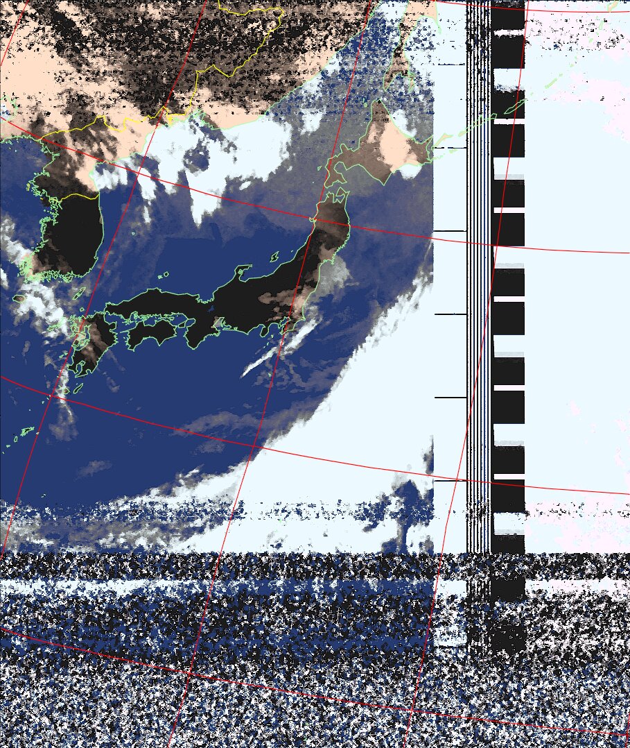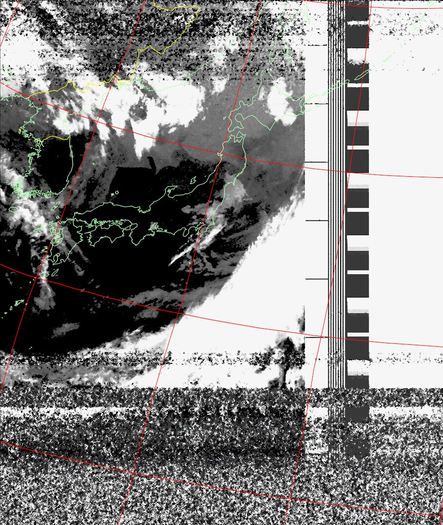 | NOAA19 09:24:31~09:39:26 進行方向(北から南) 最大昇角(32°) 方角(東) |