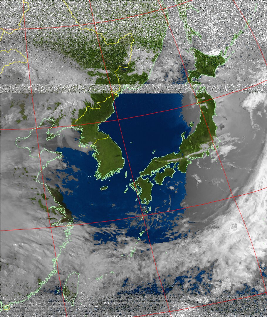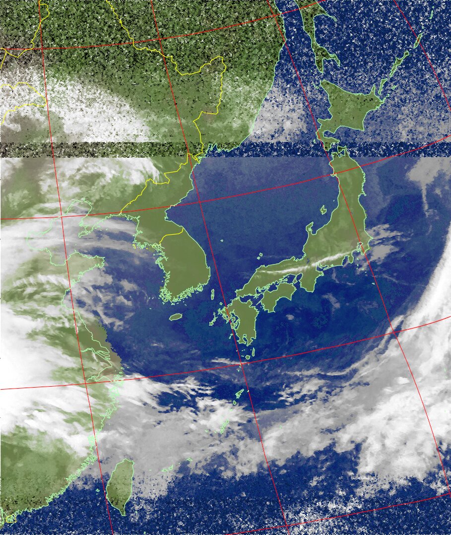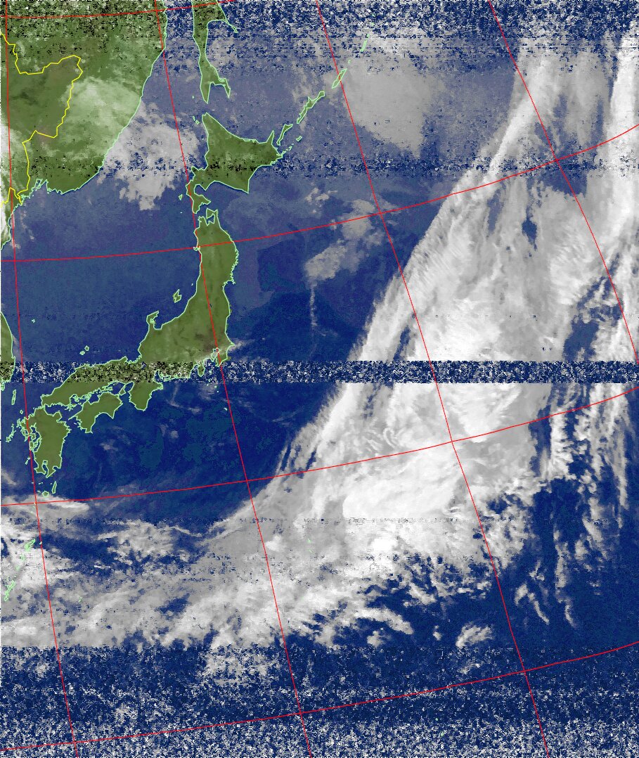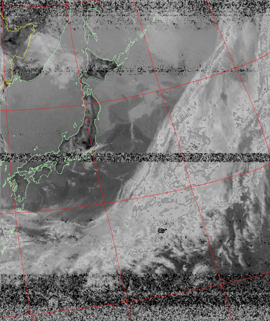 | NOAA19 09:24:31~09:39:26 進行方向(北から南) 最大昇角(32°) 方角(東) |