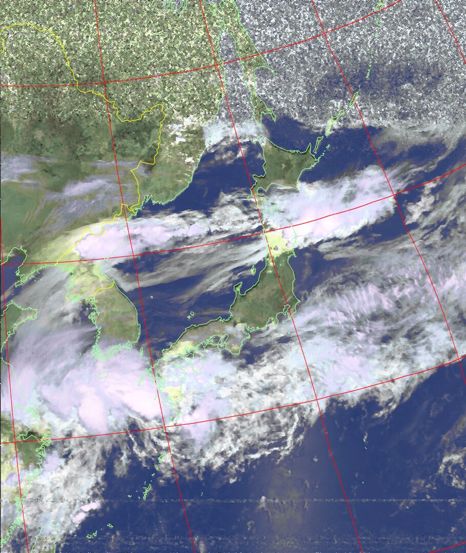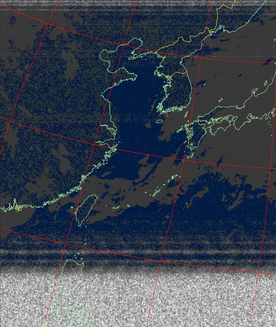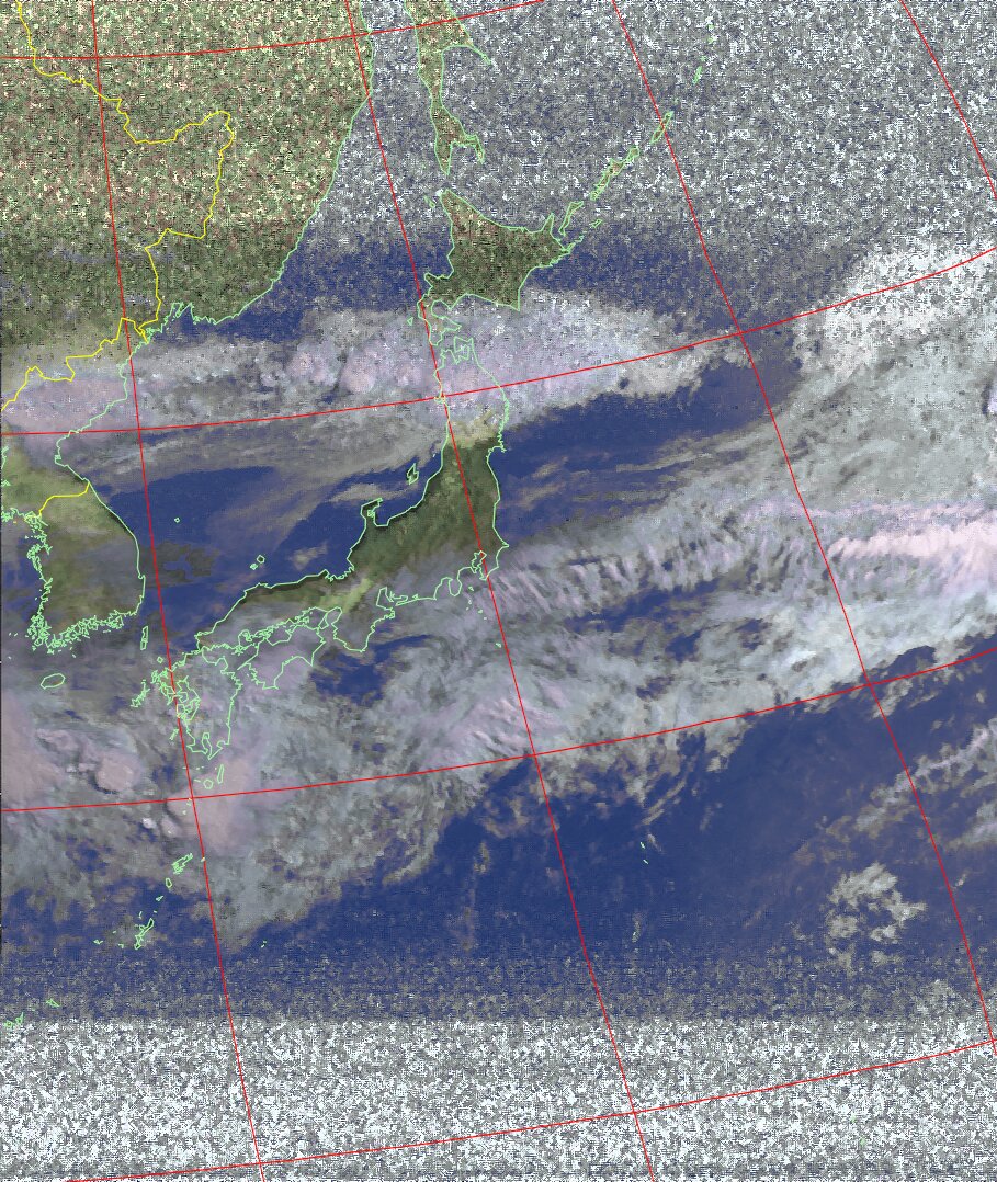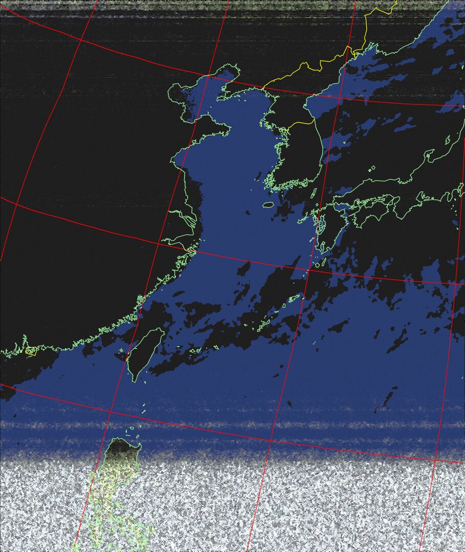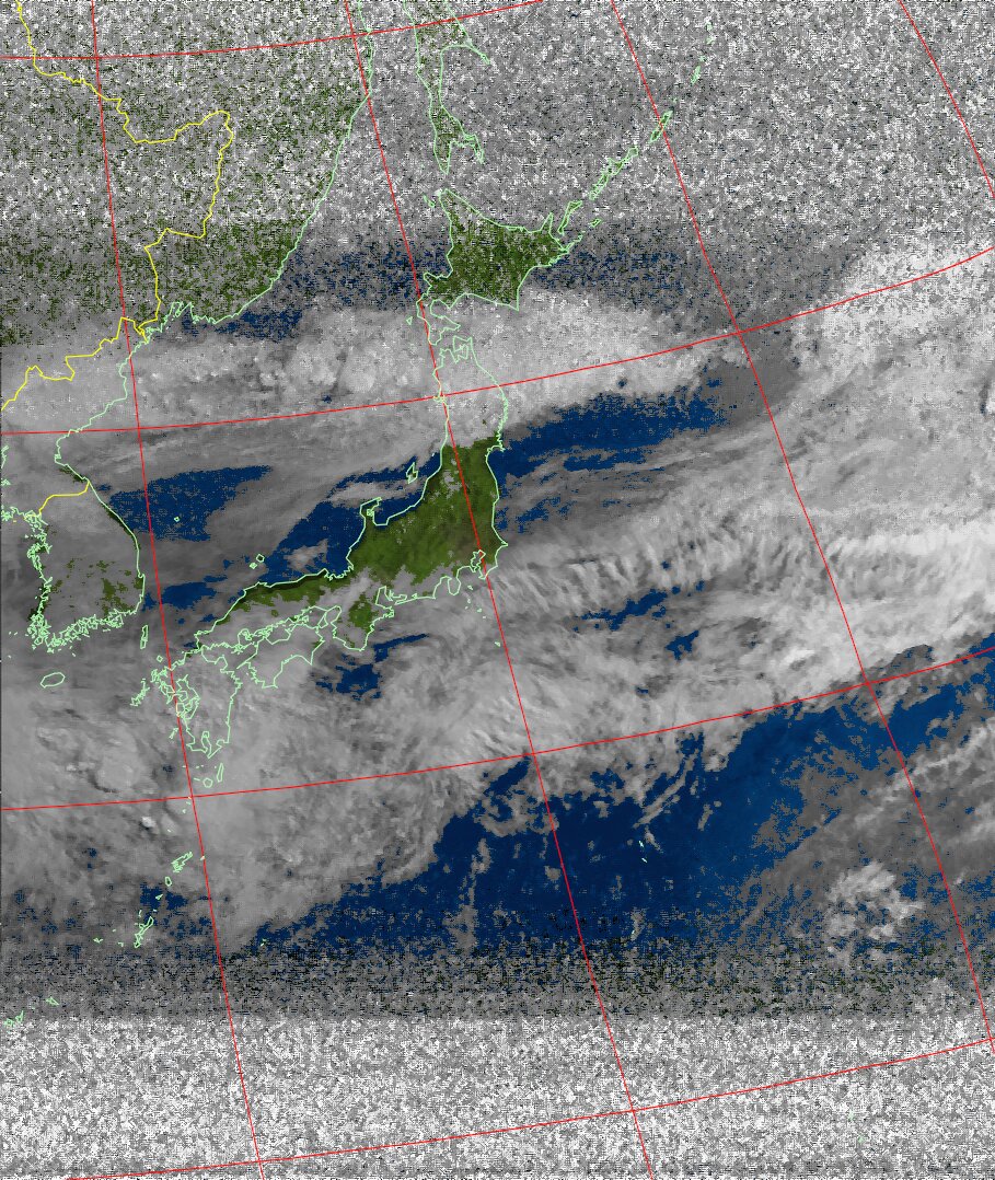 | NOAA19 10:00:58~10:16:39 進行方向(北から南) 最大昇角(73°) 方角(東) |