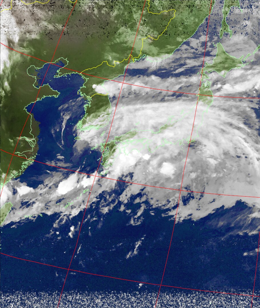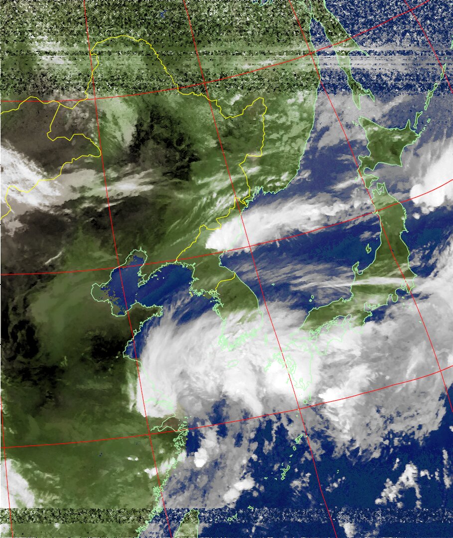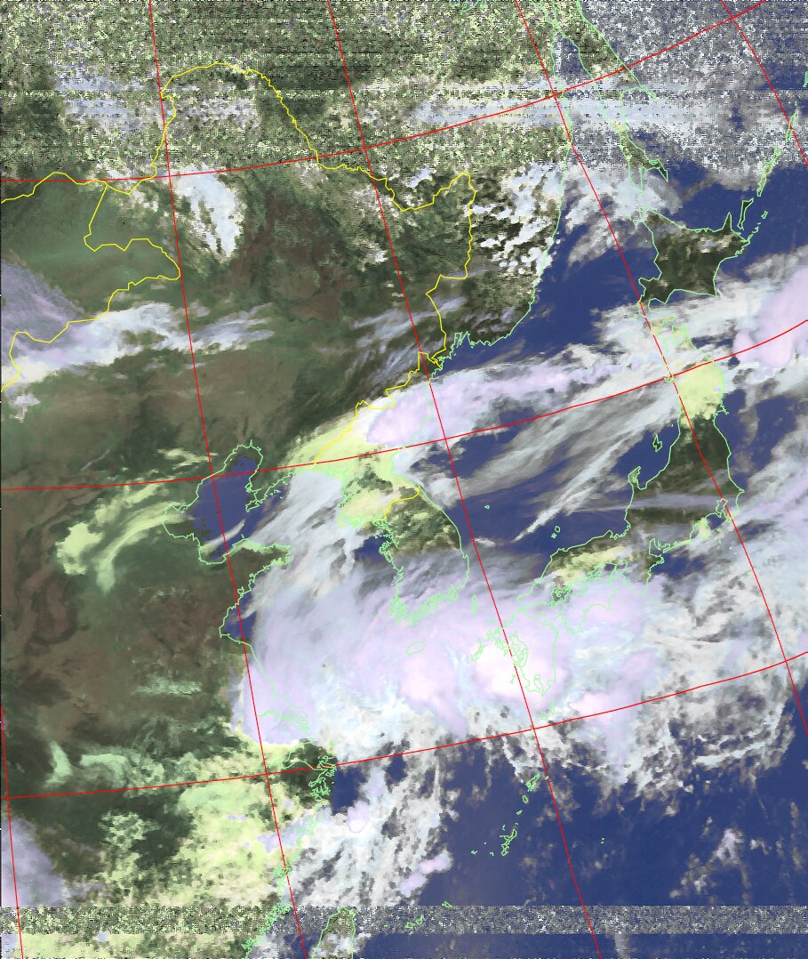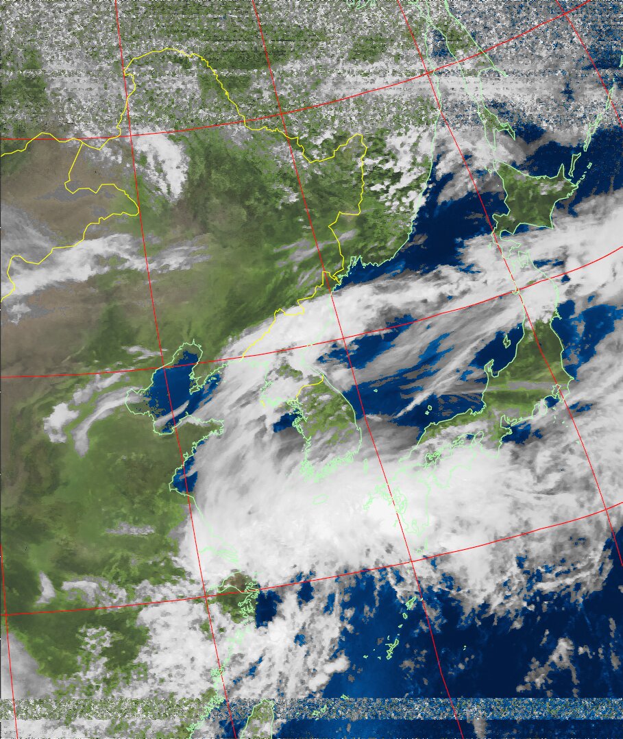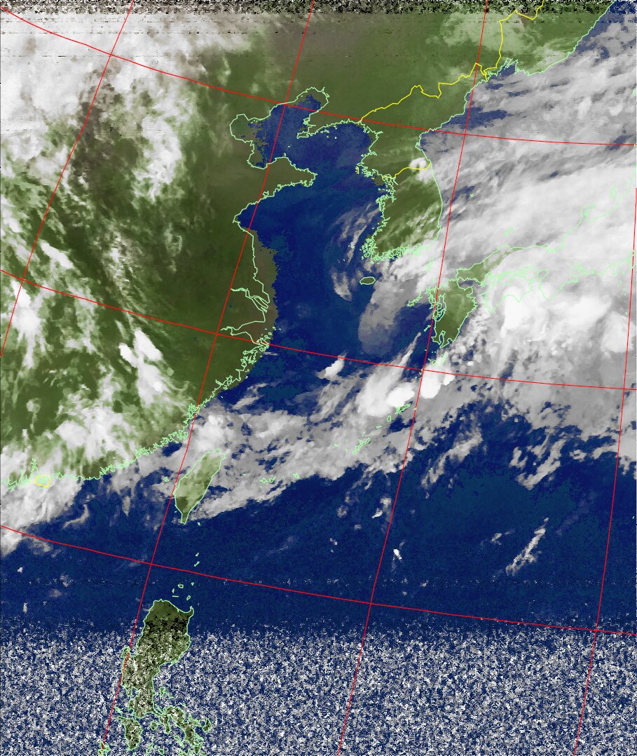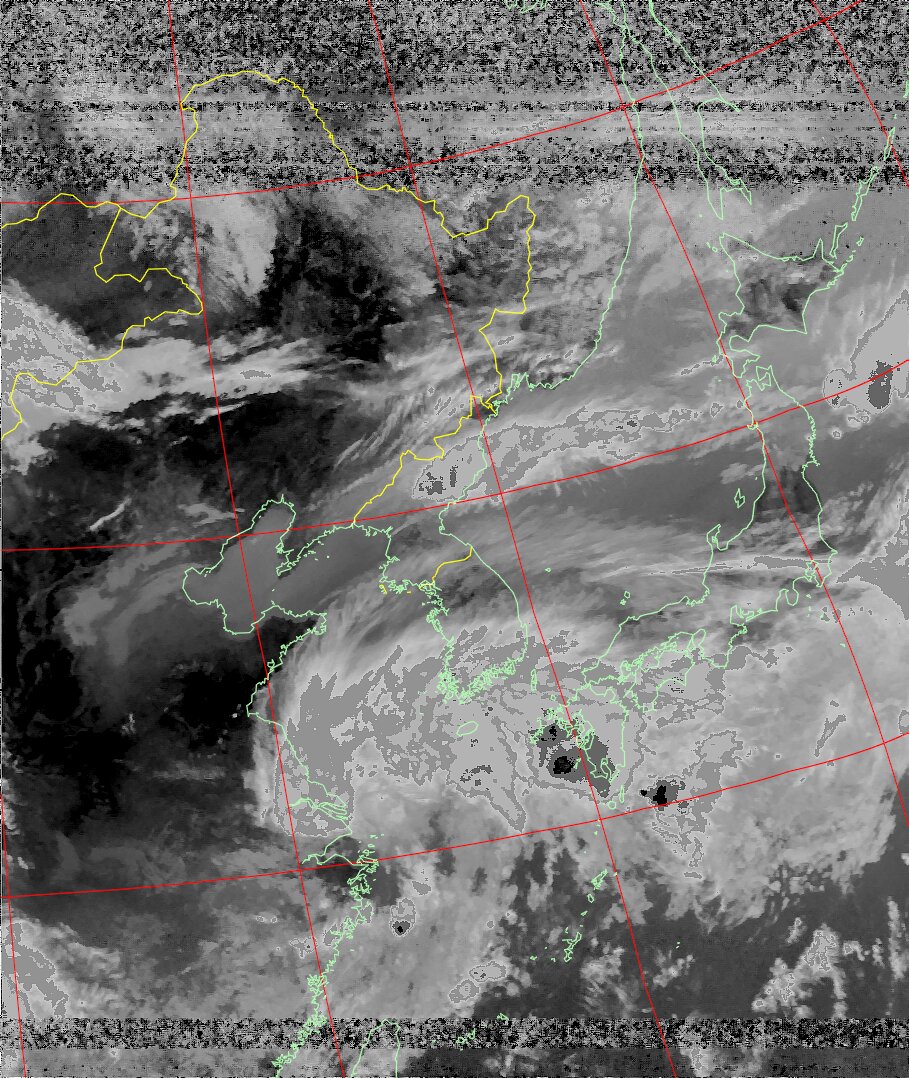 | NOAA19 10:00:58~10:16:39 進行方向(北から南) 最大昇角(73°) 方角(東) |