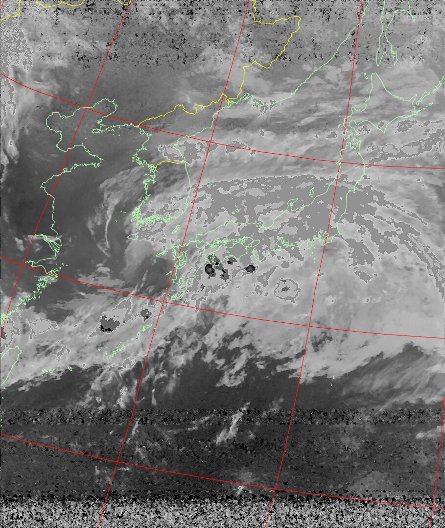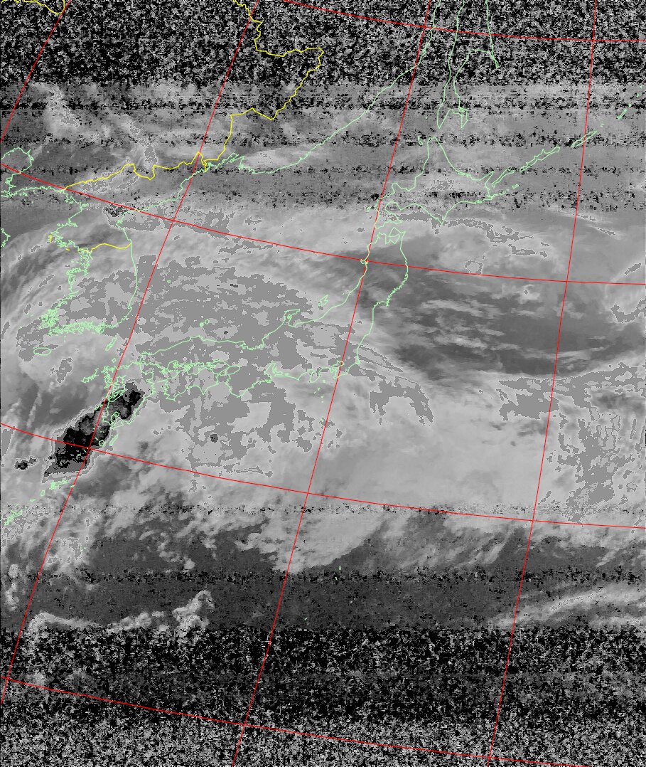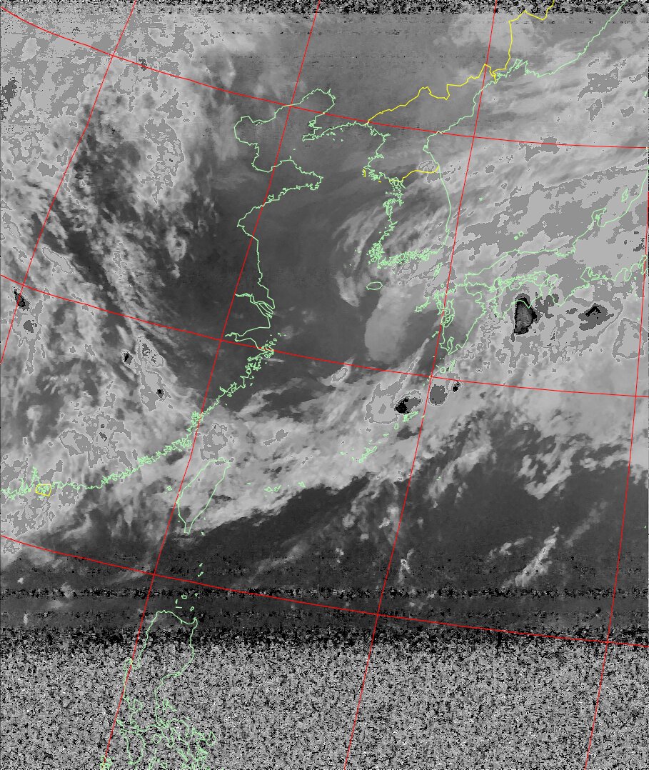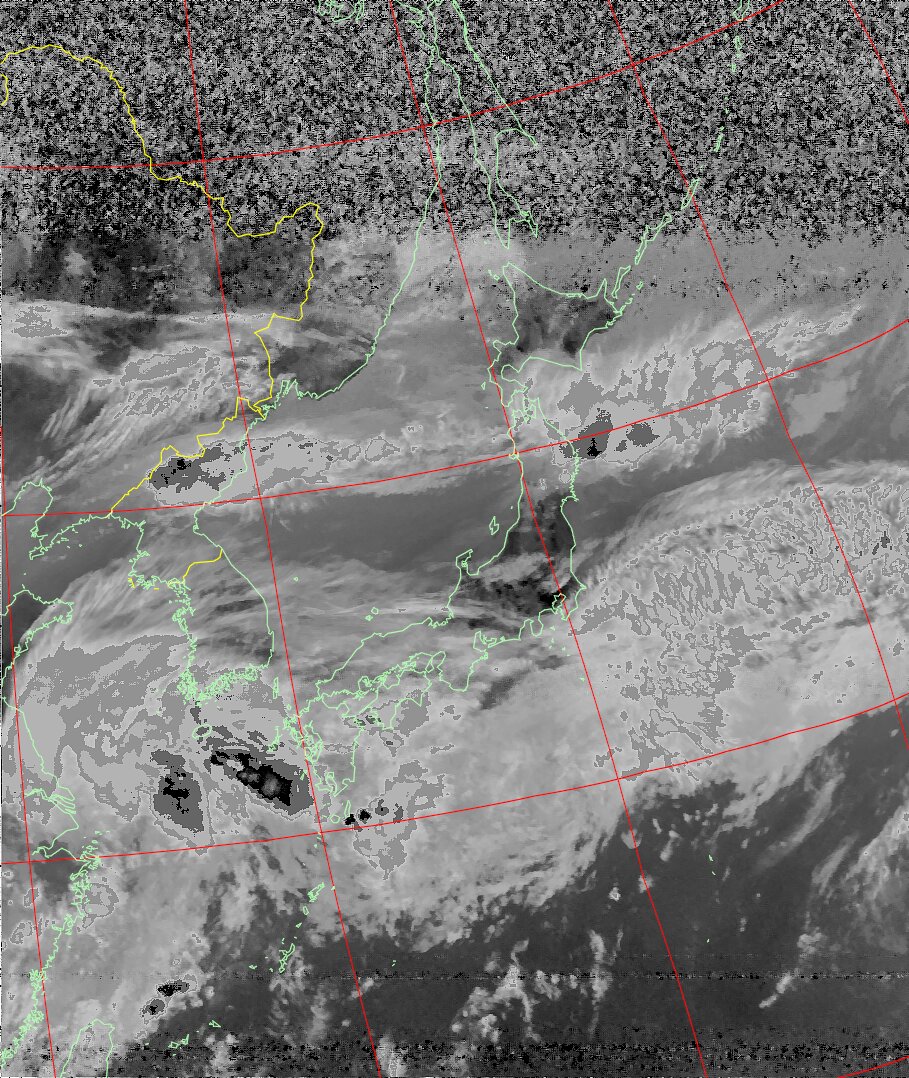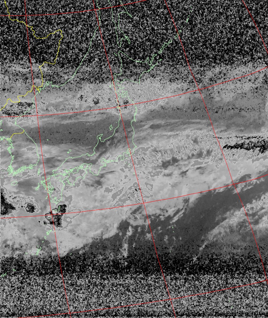 | NOAA15 18:22:18~18:37:07 進行方向(南から北) 最大昇角(51°) 方角(東) |