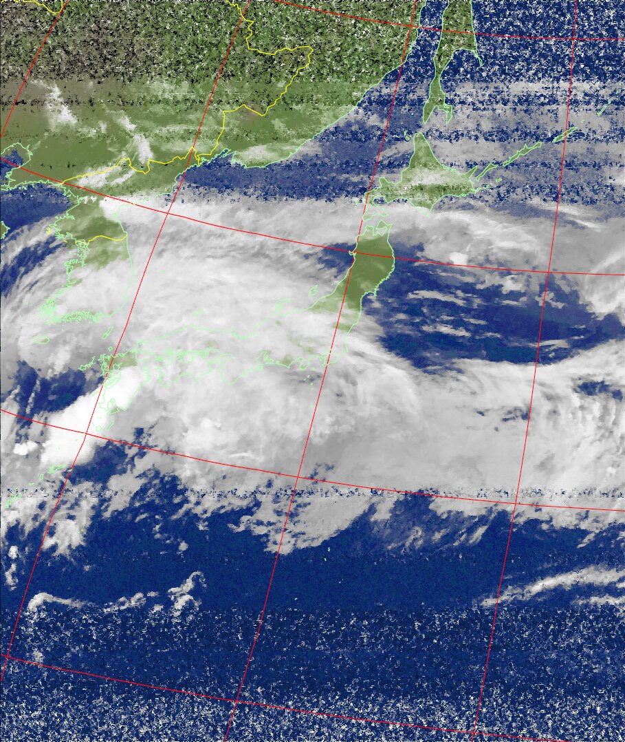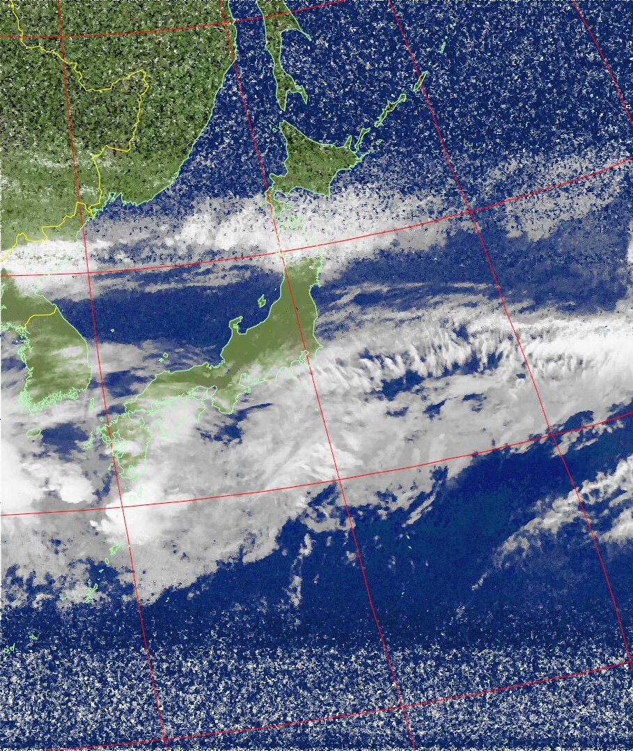 | NOAA18 11:37:53~11:53:08 進行方向(北から南) 最大昇角(49°) 方角(西) |
