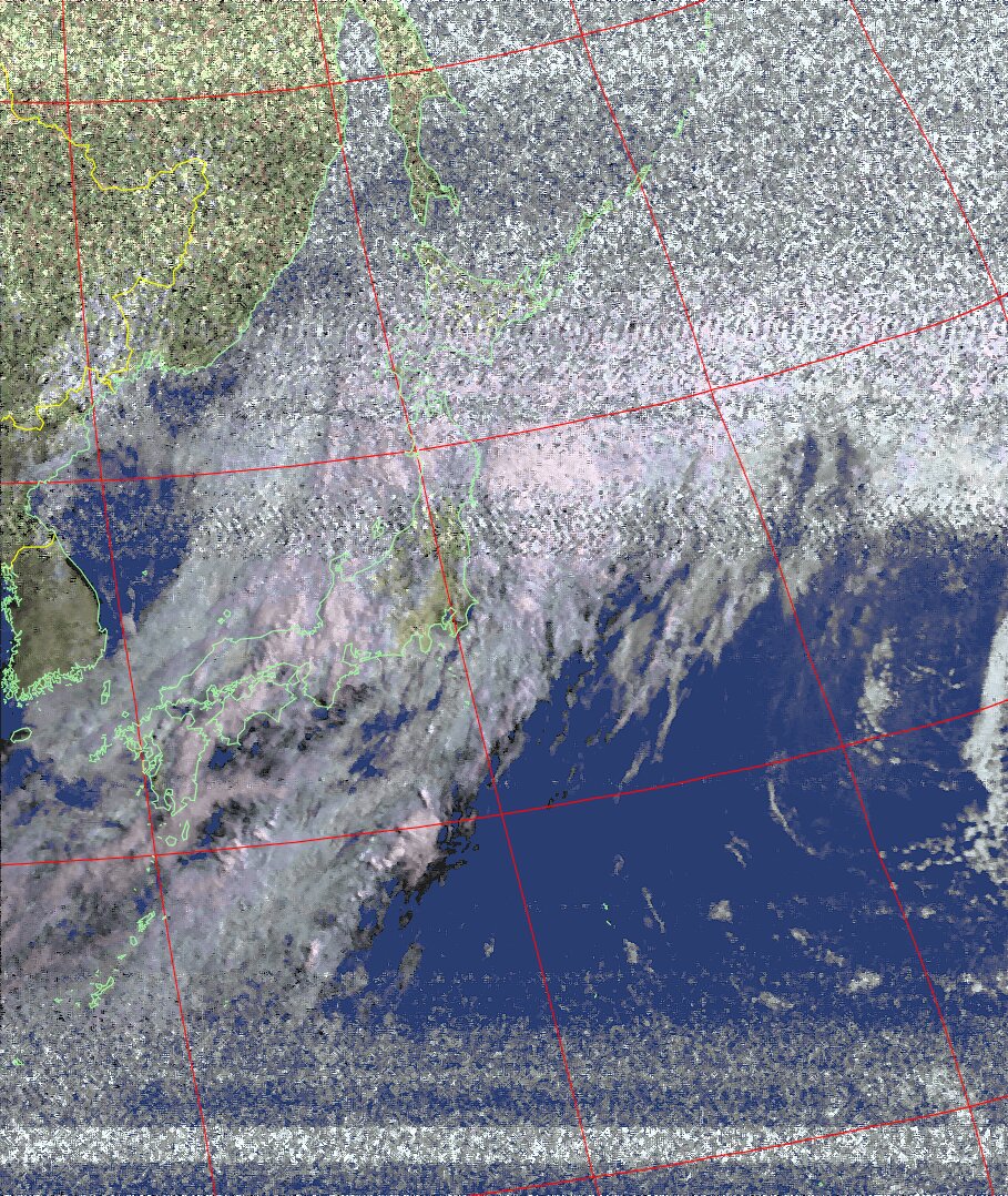 NOAA15 18:17:46~18:32:30 進行方向(南から北) 最大昇角(45°) 方角(東)