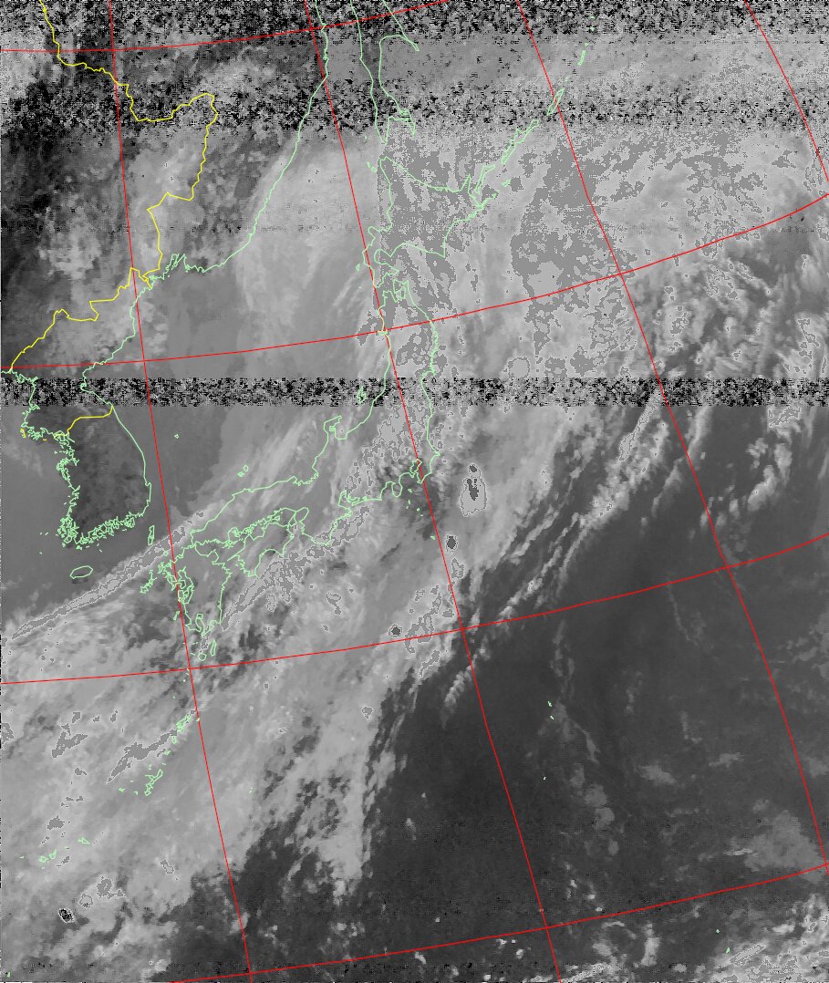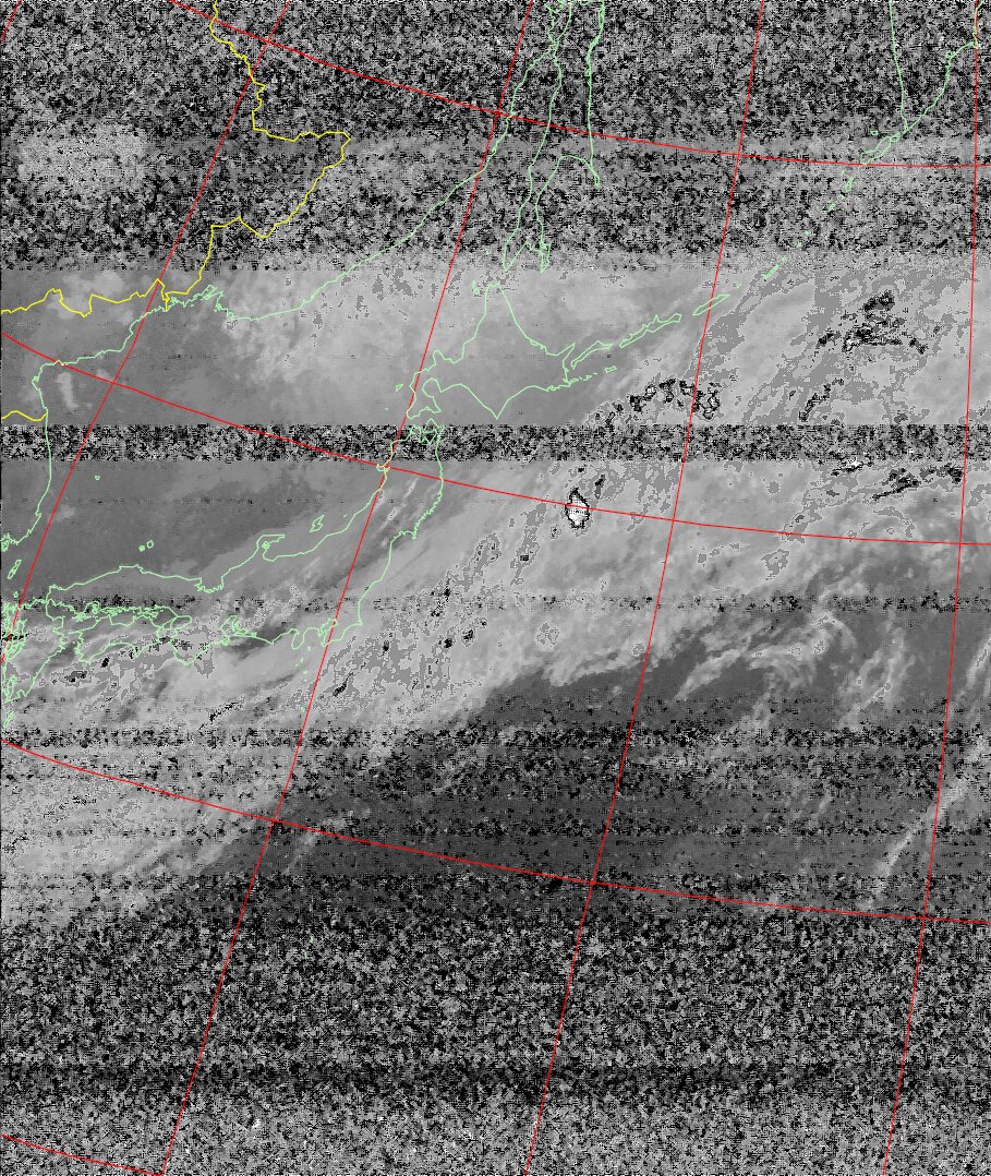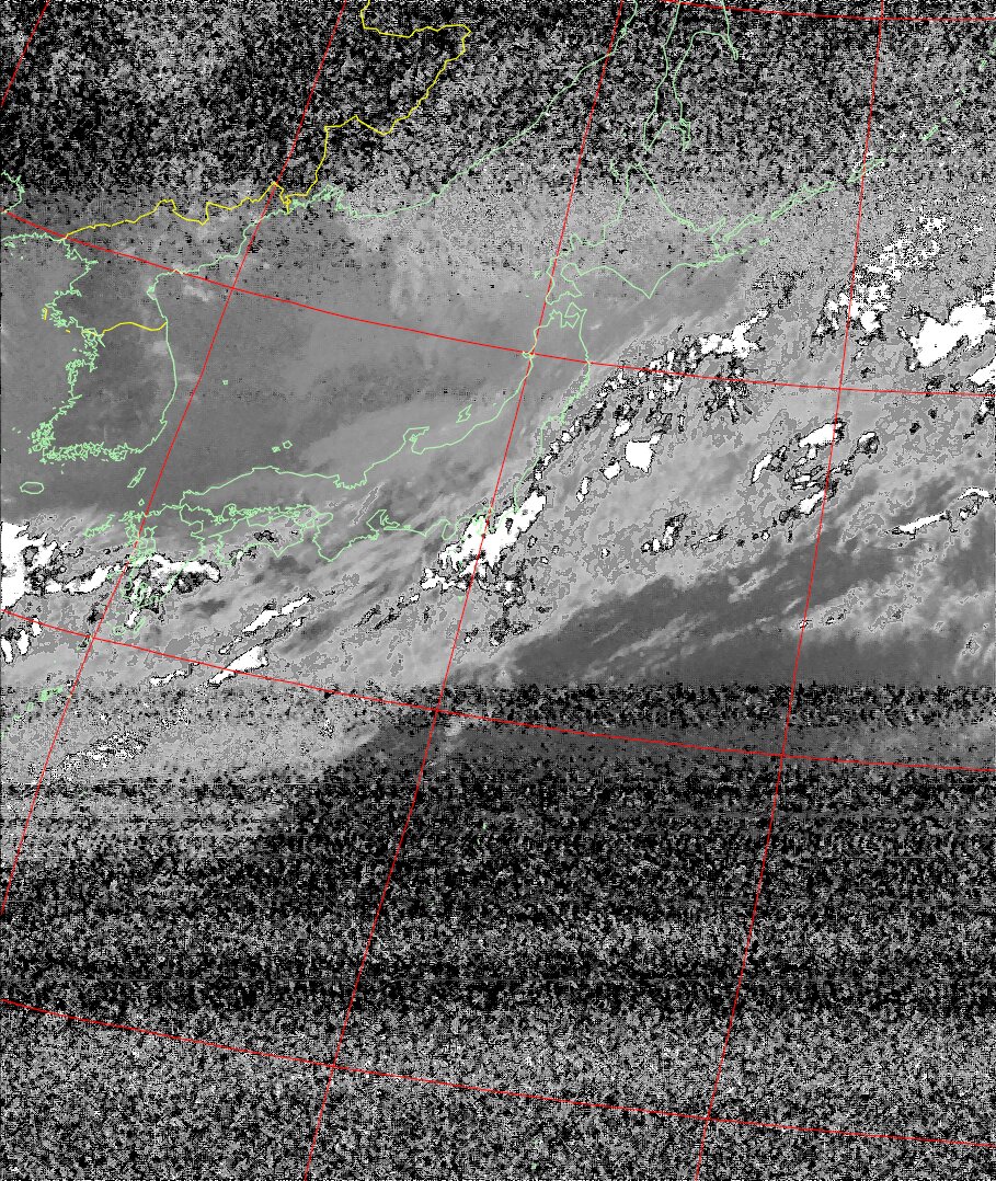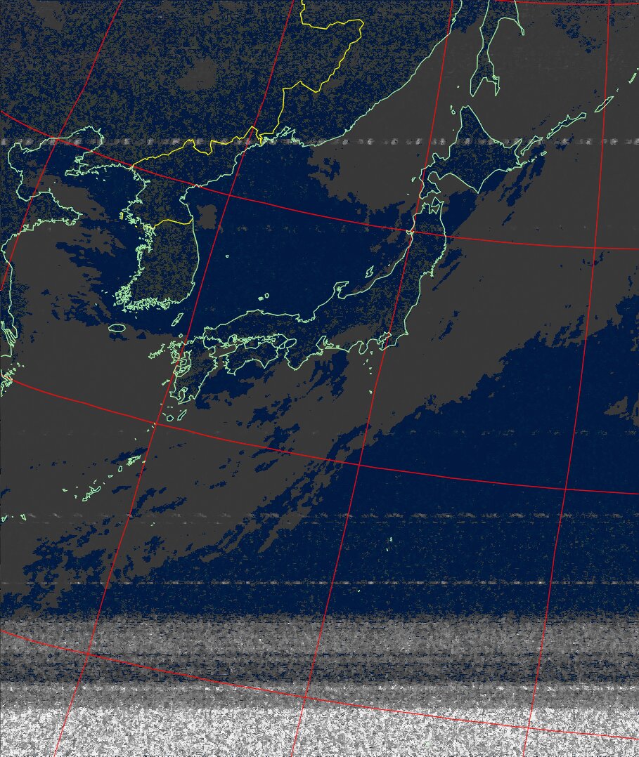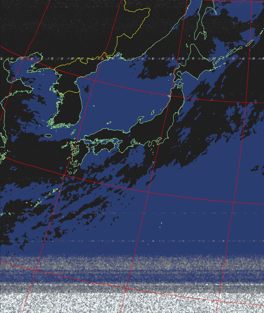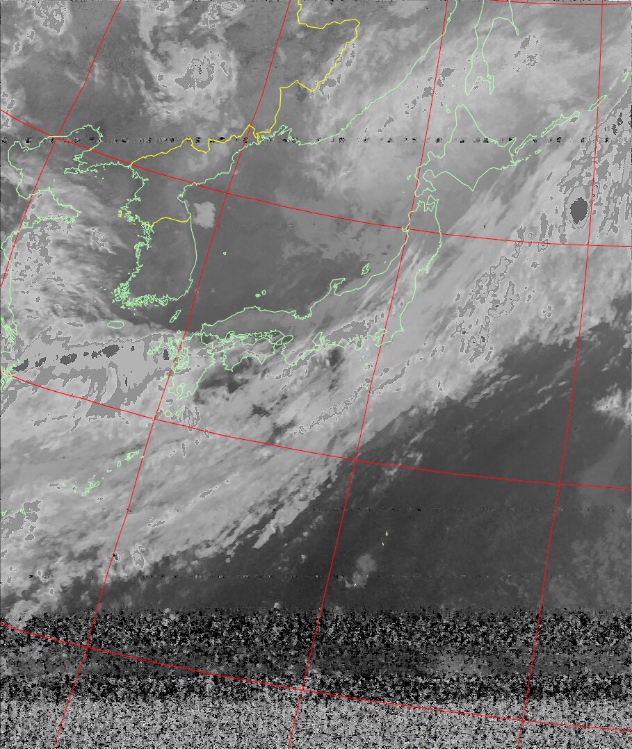 NOAA19 20:33:06~20:47:41 進行方向(南から北) 最大昇角(30°) 方角(東)