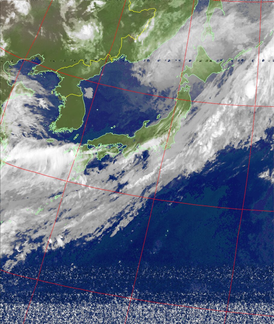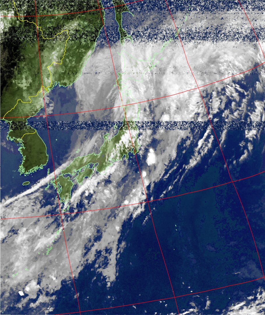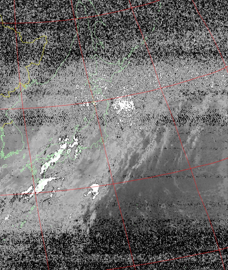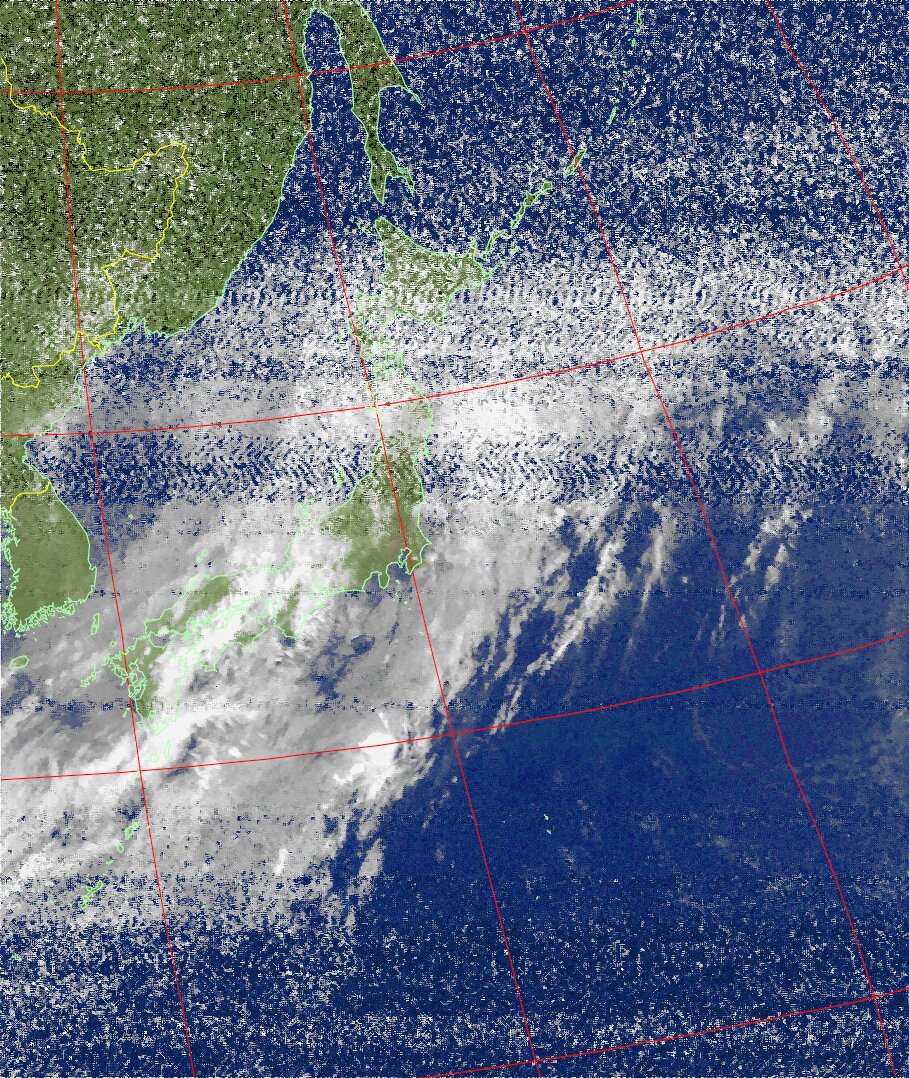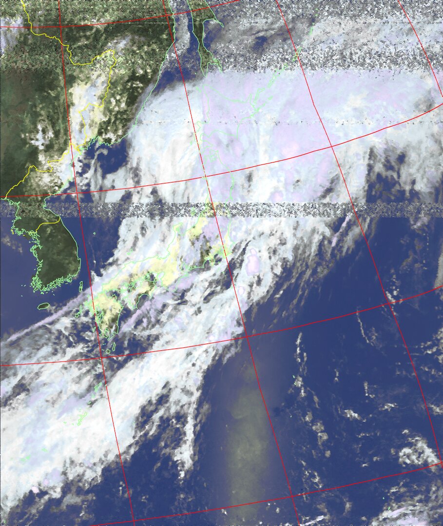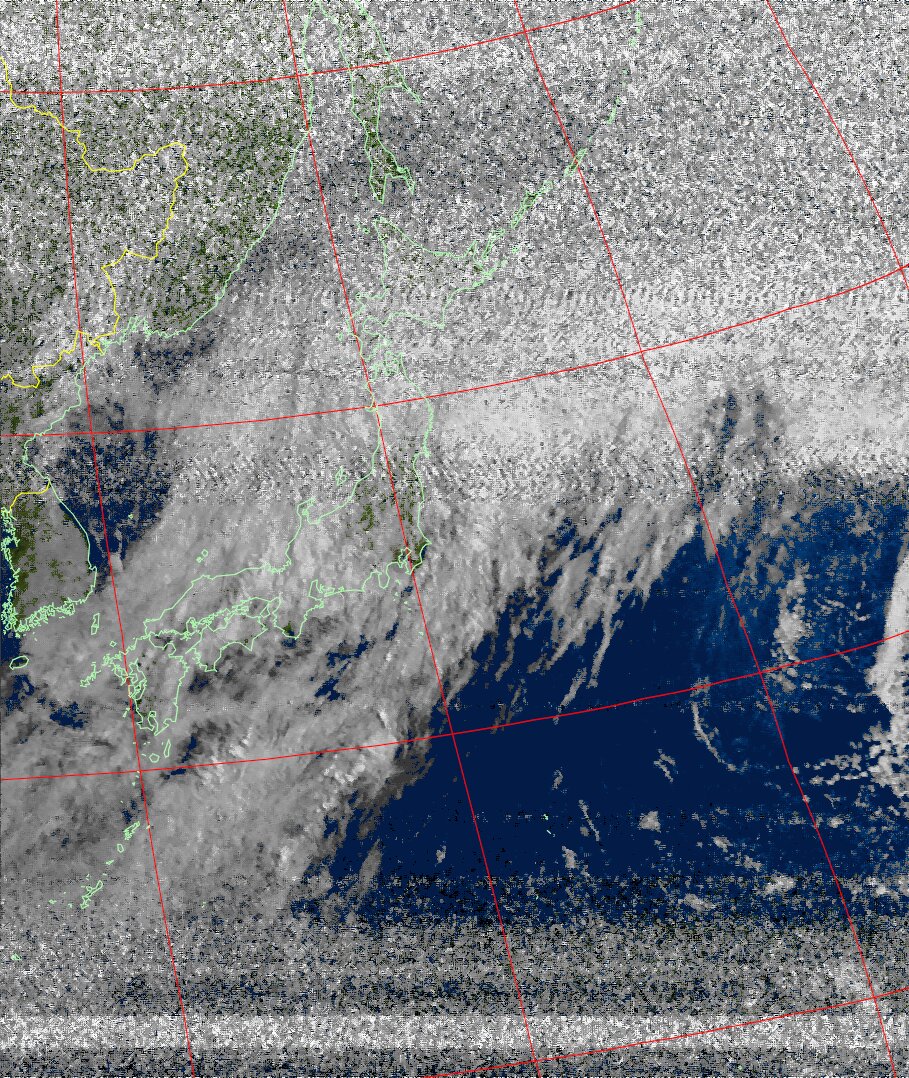 NOAA19 20:33:06~20:47:41 進行方向(南から北) 最大昇角(30°) 方角(東)