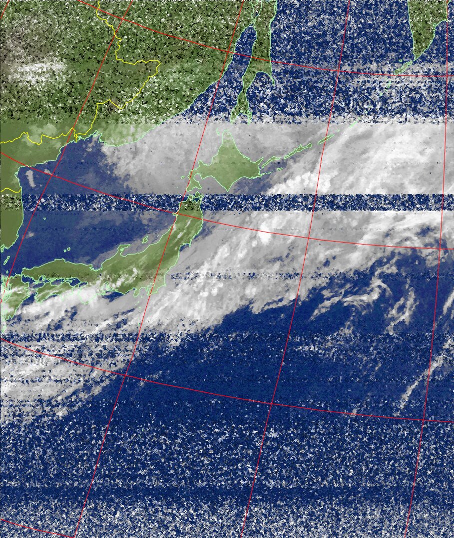 NOAA18 10:46:17~11:01:42 進行方向(北から南) 最大昇角(53°) 方角(東)
