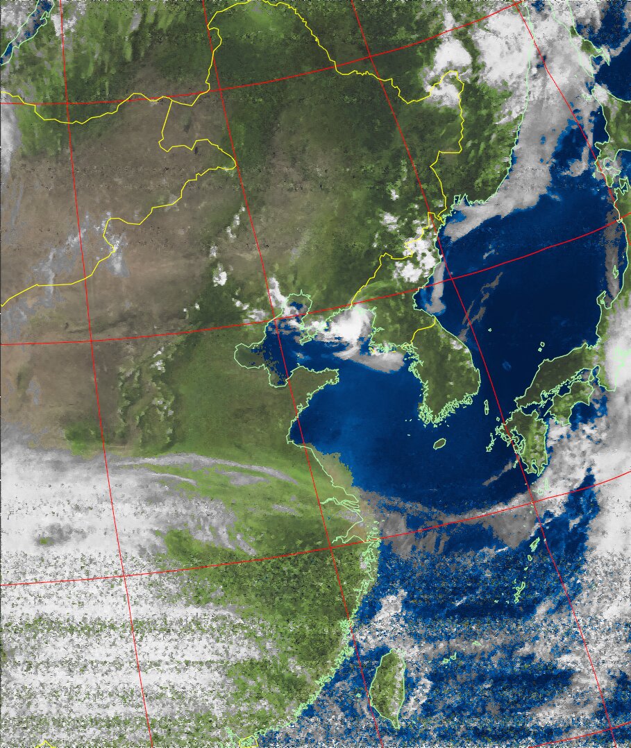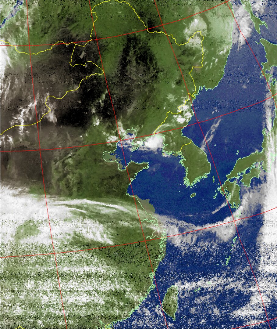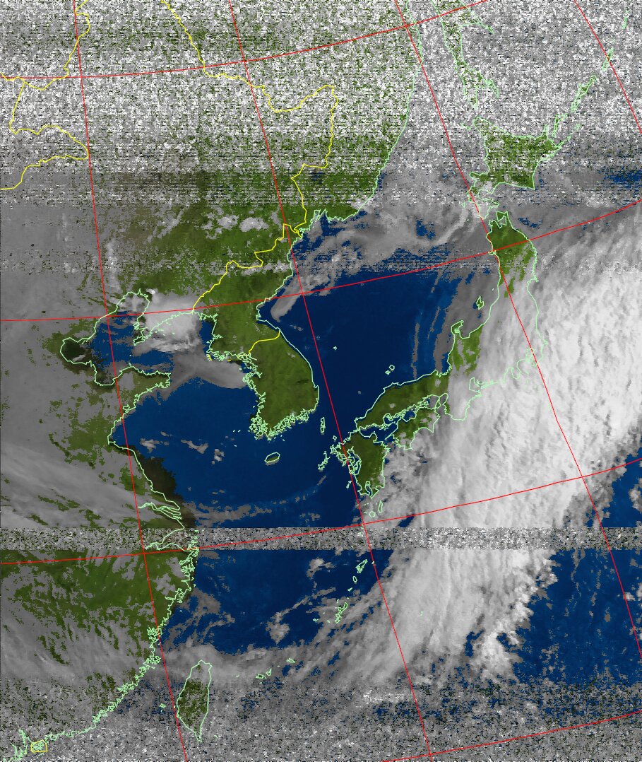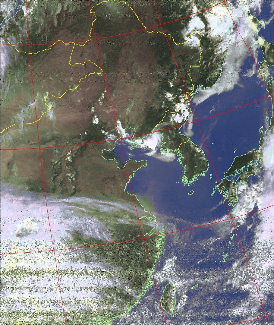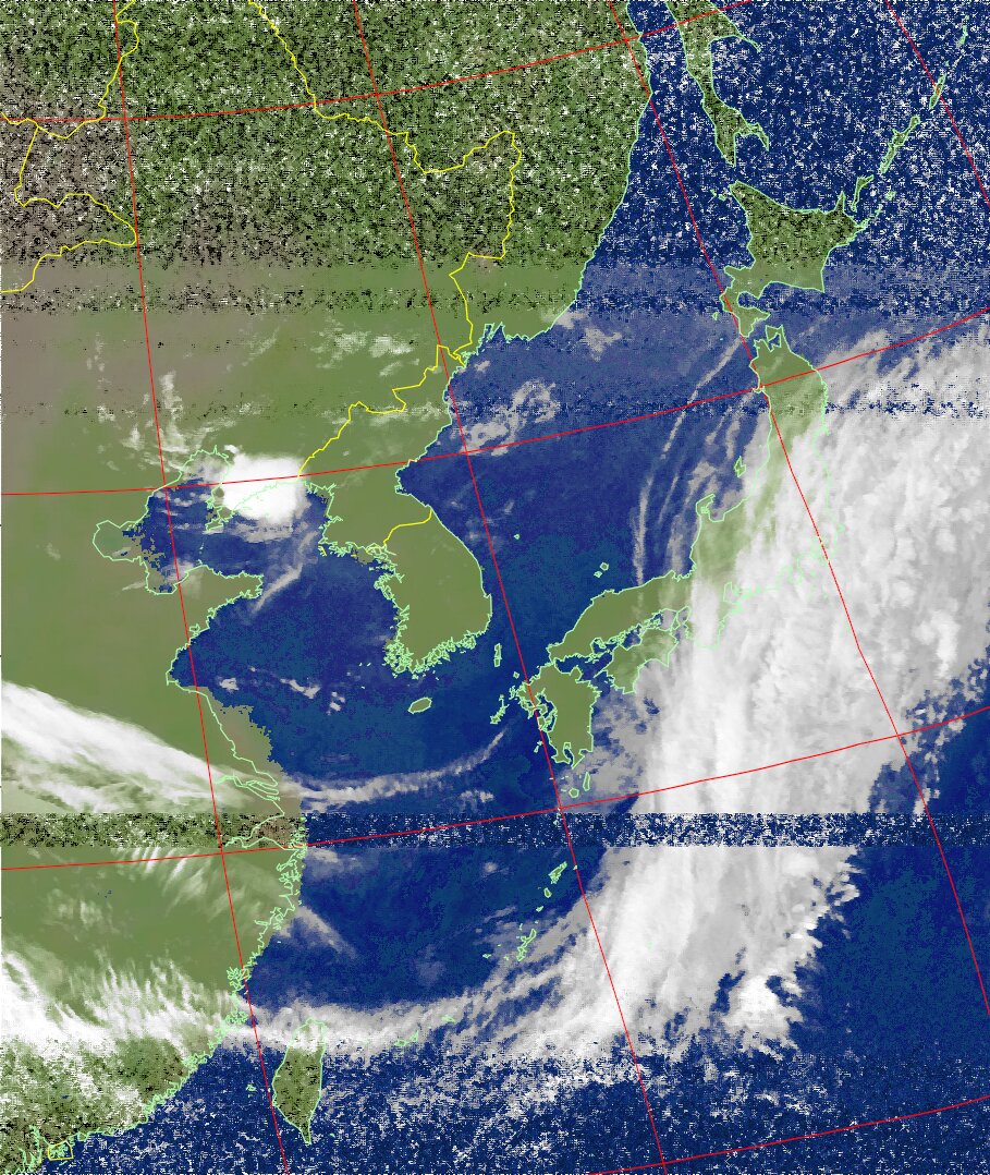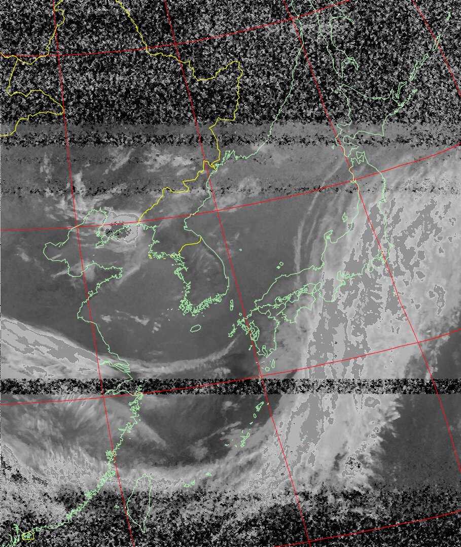 | NOAA19 10:25:39~10:41:15 進行方向(北から南) 最大昇角(65°) 方角(西) |