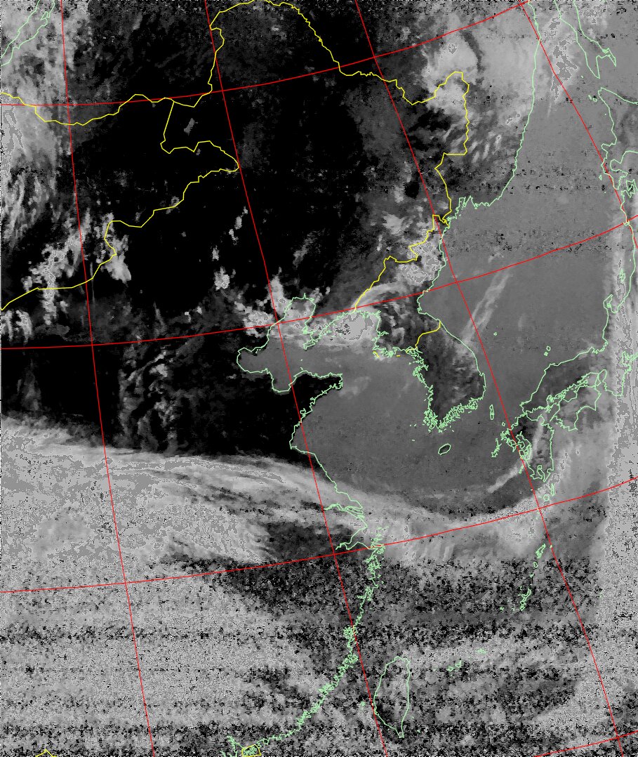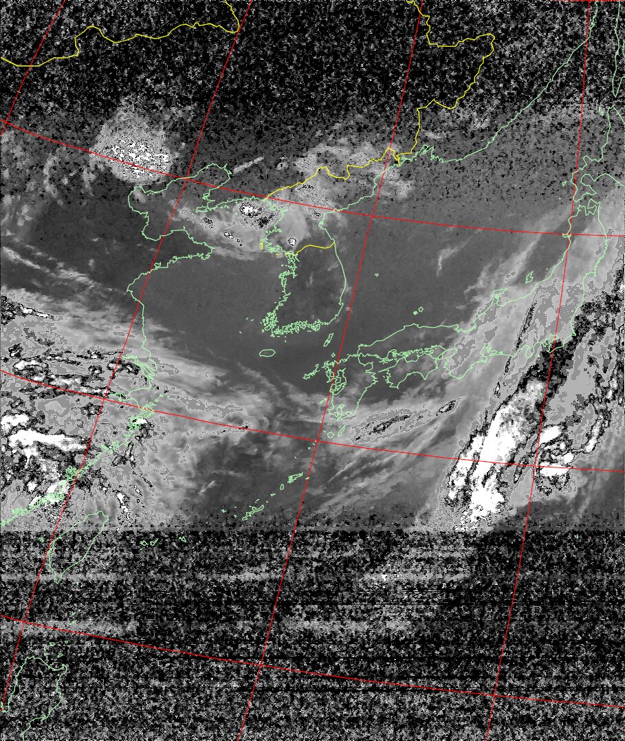 | NOAA15 07:49:25~08:04:32 進行方向(北から南) 最大昇角(62°) 方角(西) |