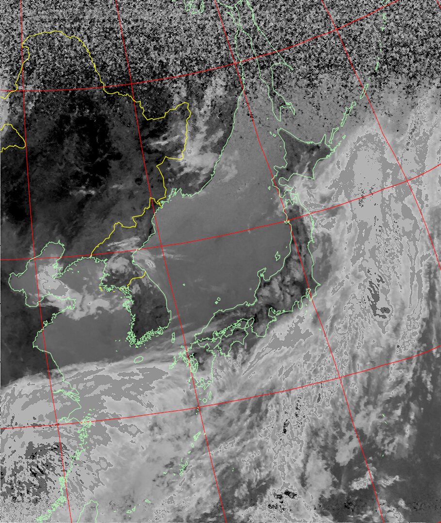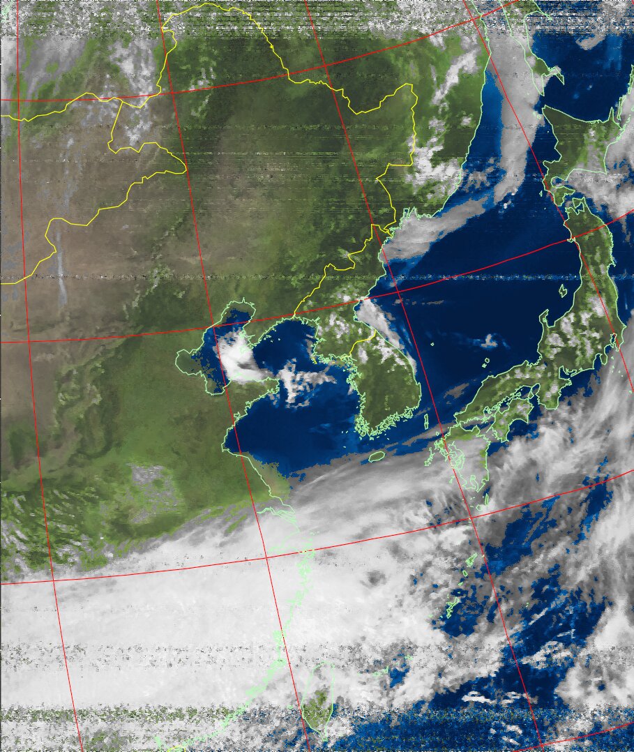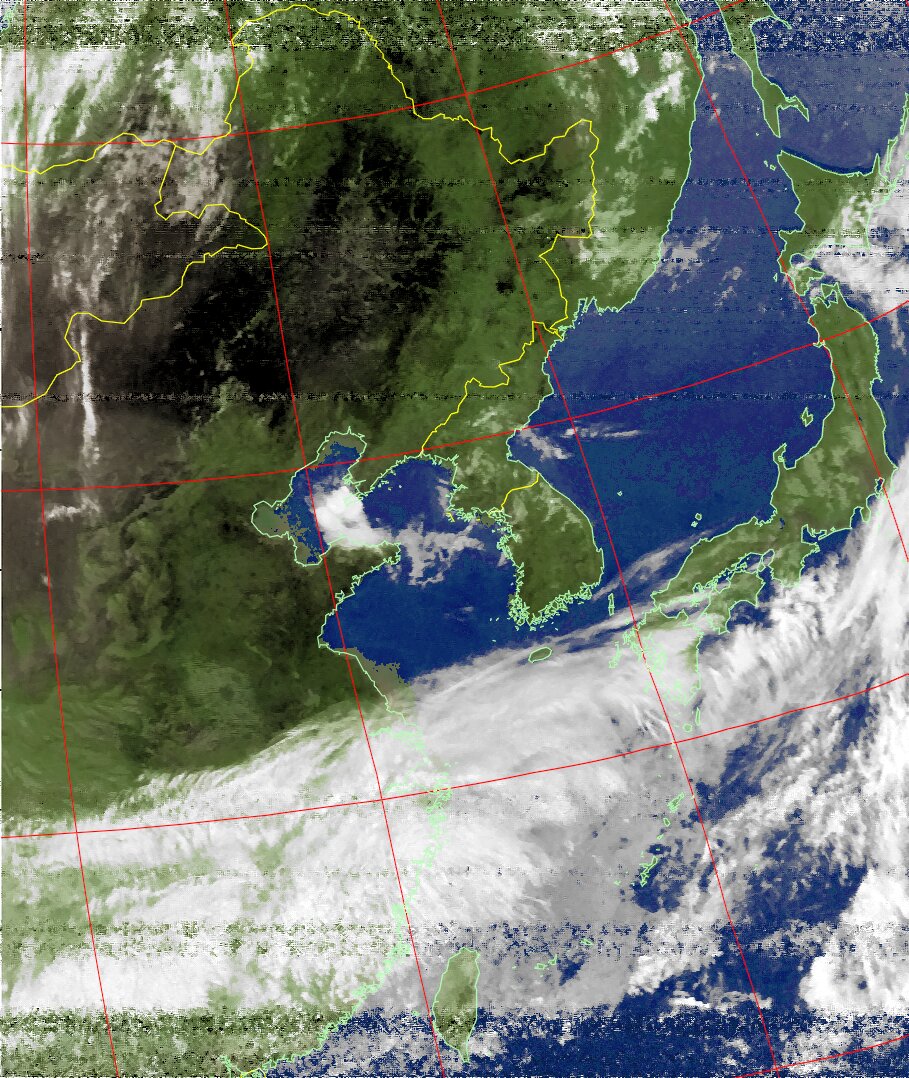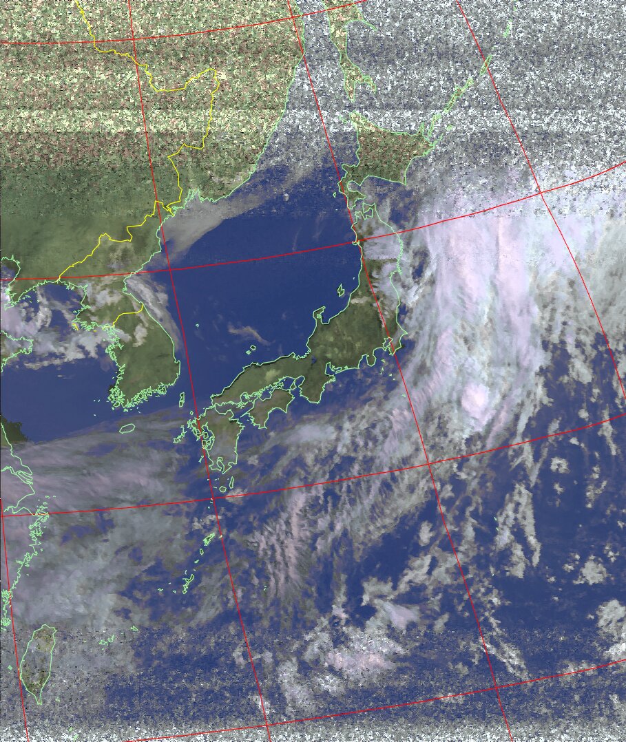 NOAA19 10:12:57~10:28:41 進行方向(北から南) 最大昇角(86°) 方角(西)