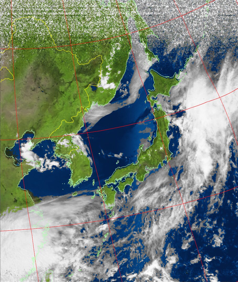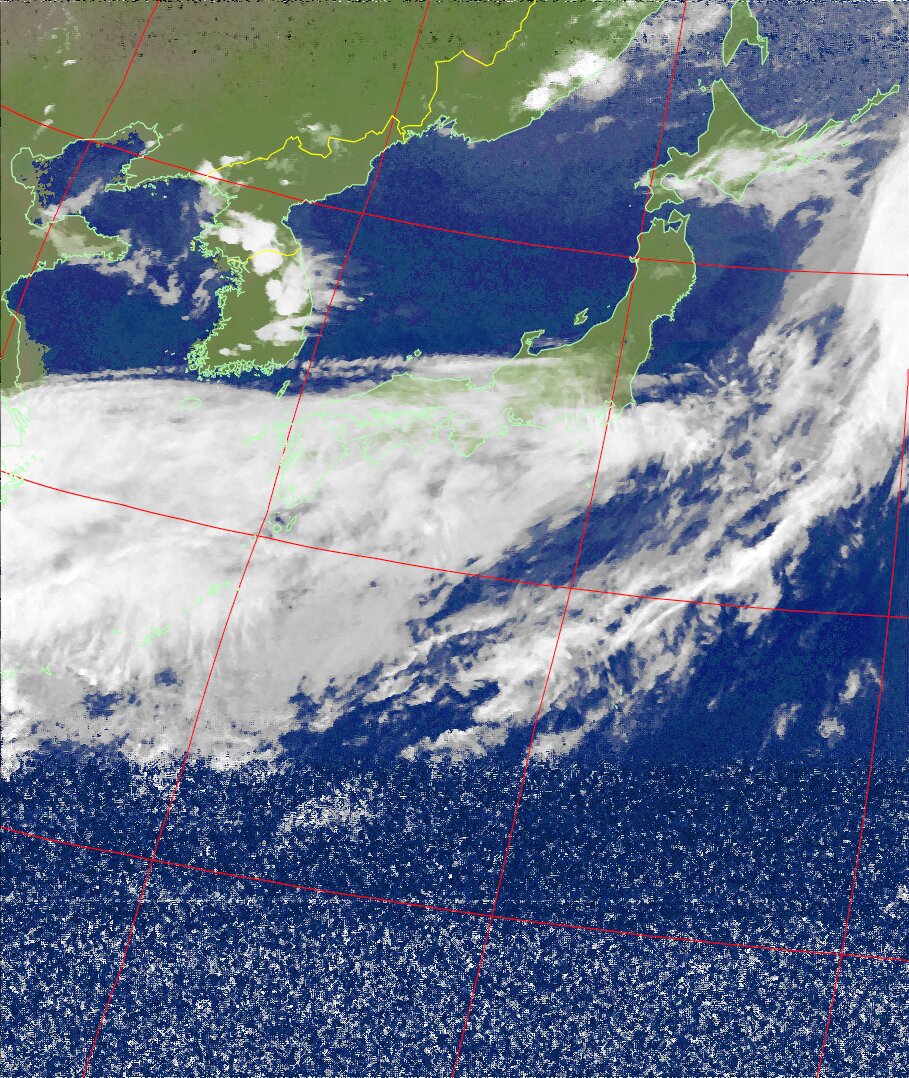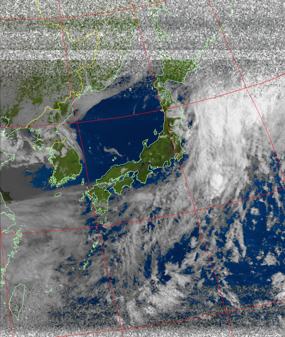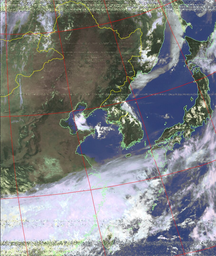 NOAA19 10:12:57~10:28:41 進行方向(北から南) 最大昇角(86°) 方角(西)