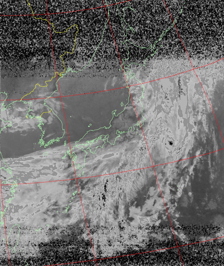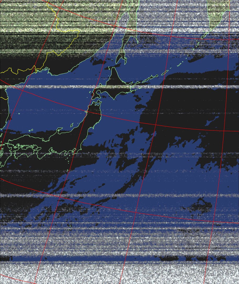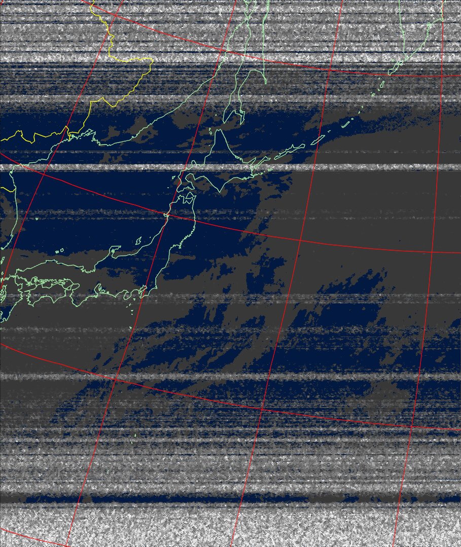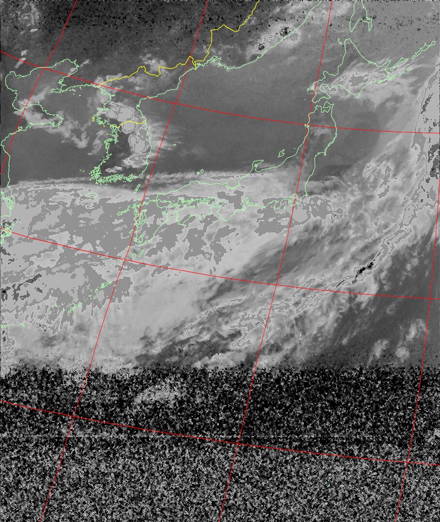 NOAA18 23:10:28~23:25:25 進行方向(南から北) 最大昇角(30°) 方角(西)