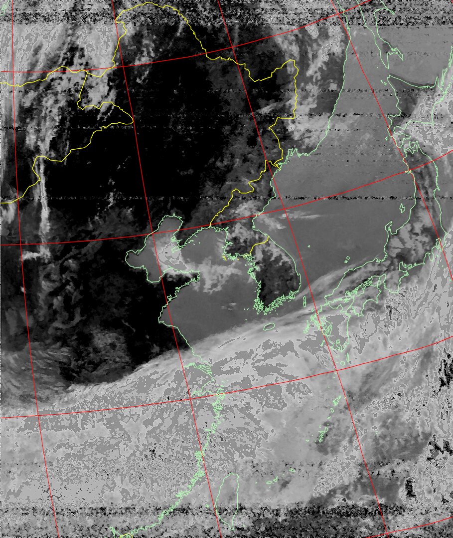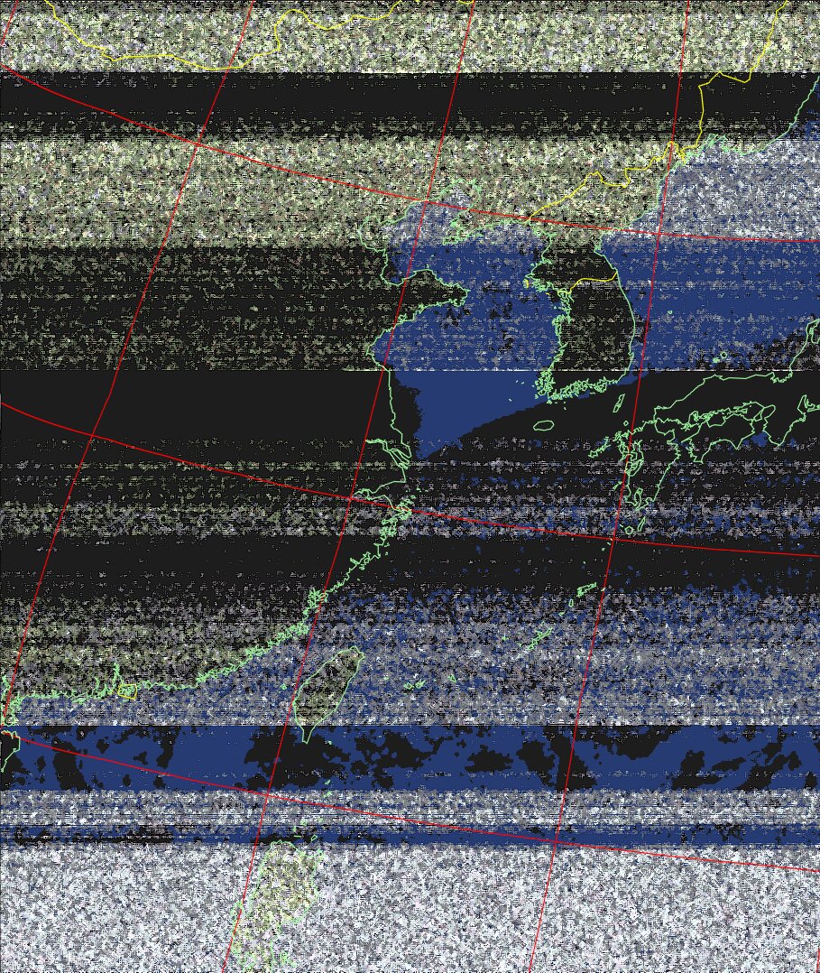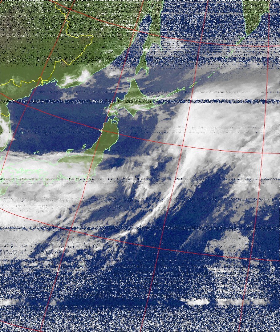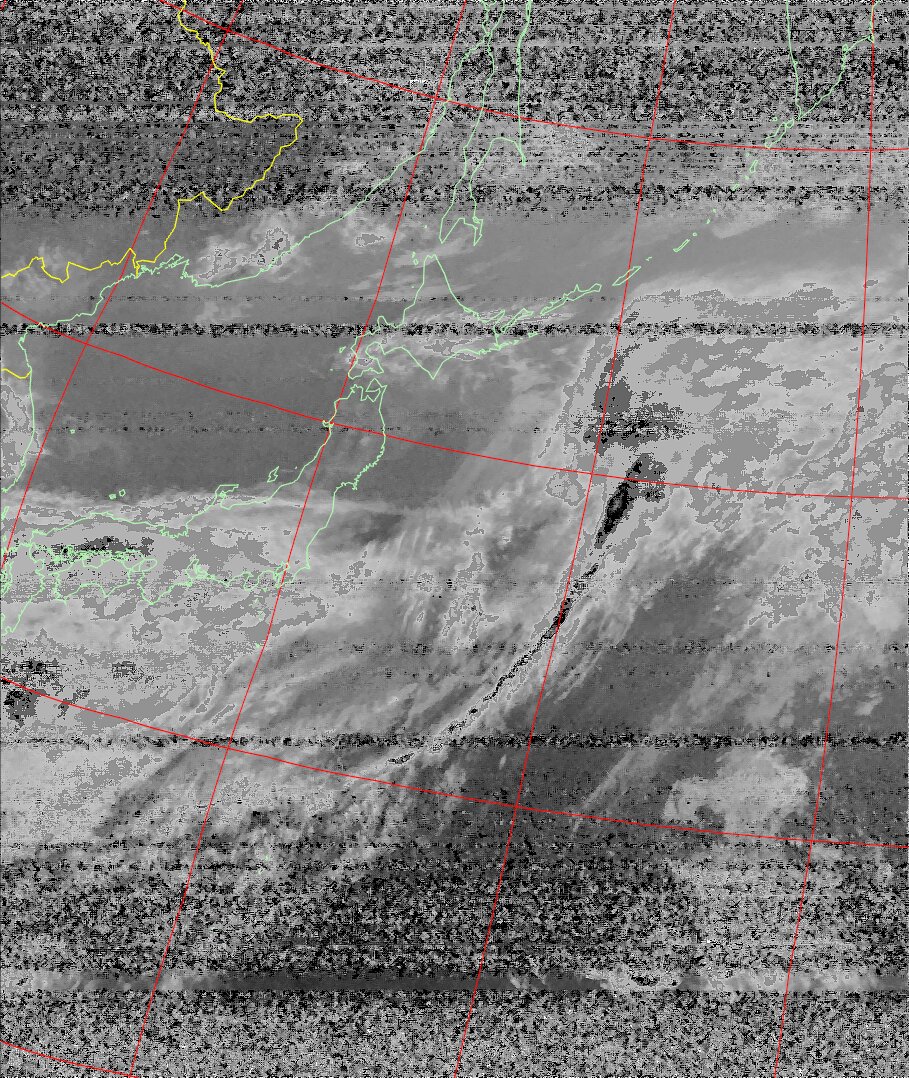 NOAA18 23:10:28~23:25:25 進行方向(南から北) 最大昇角(30°) 方角(西)