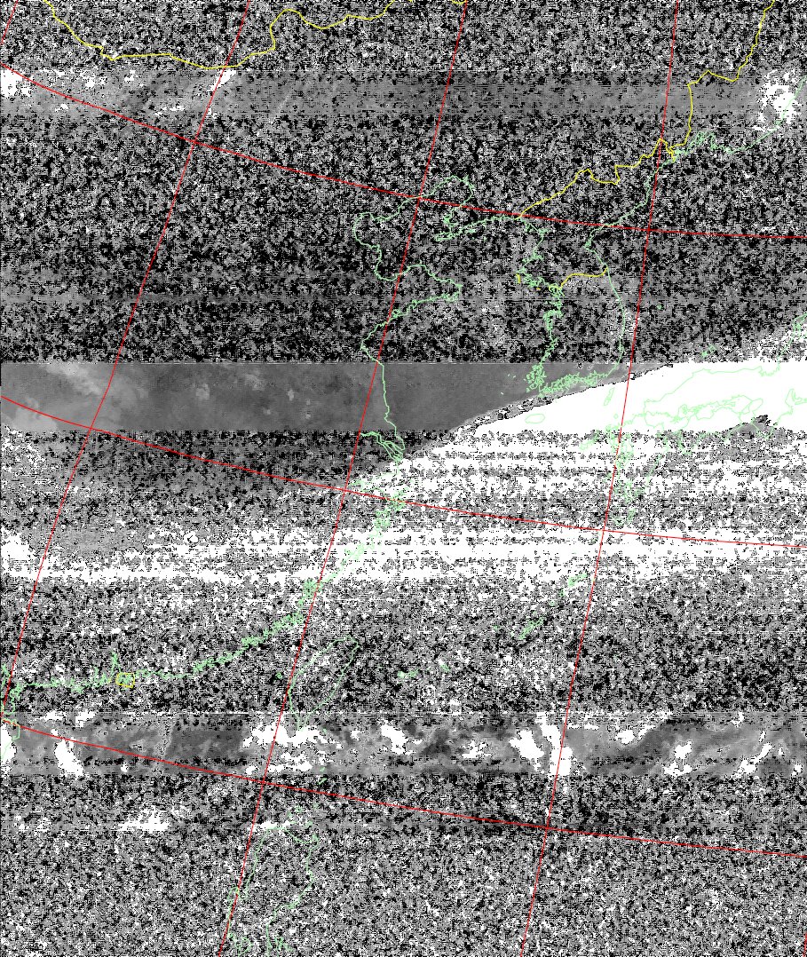 NOAA19 21:35:03~21:50:36 進行方向(南から北) 最大昇角(67°) 方角(西)