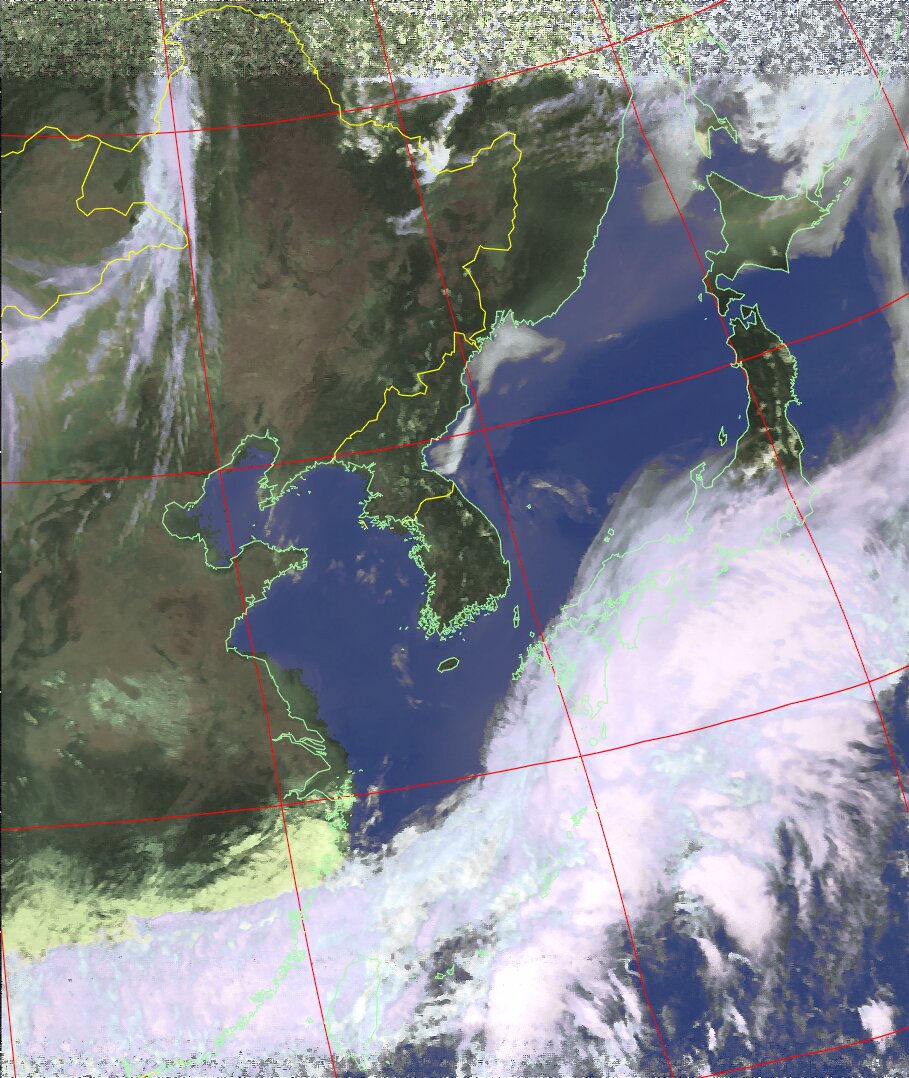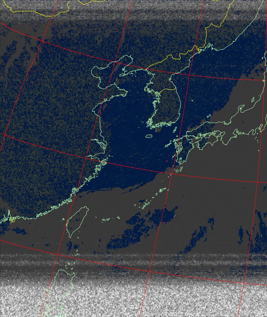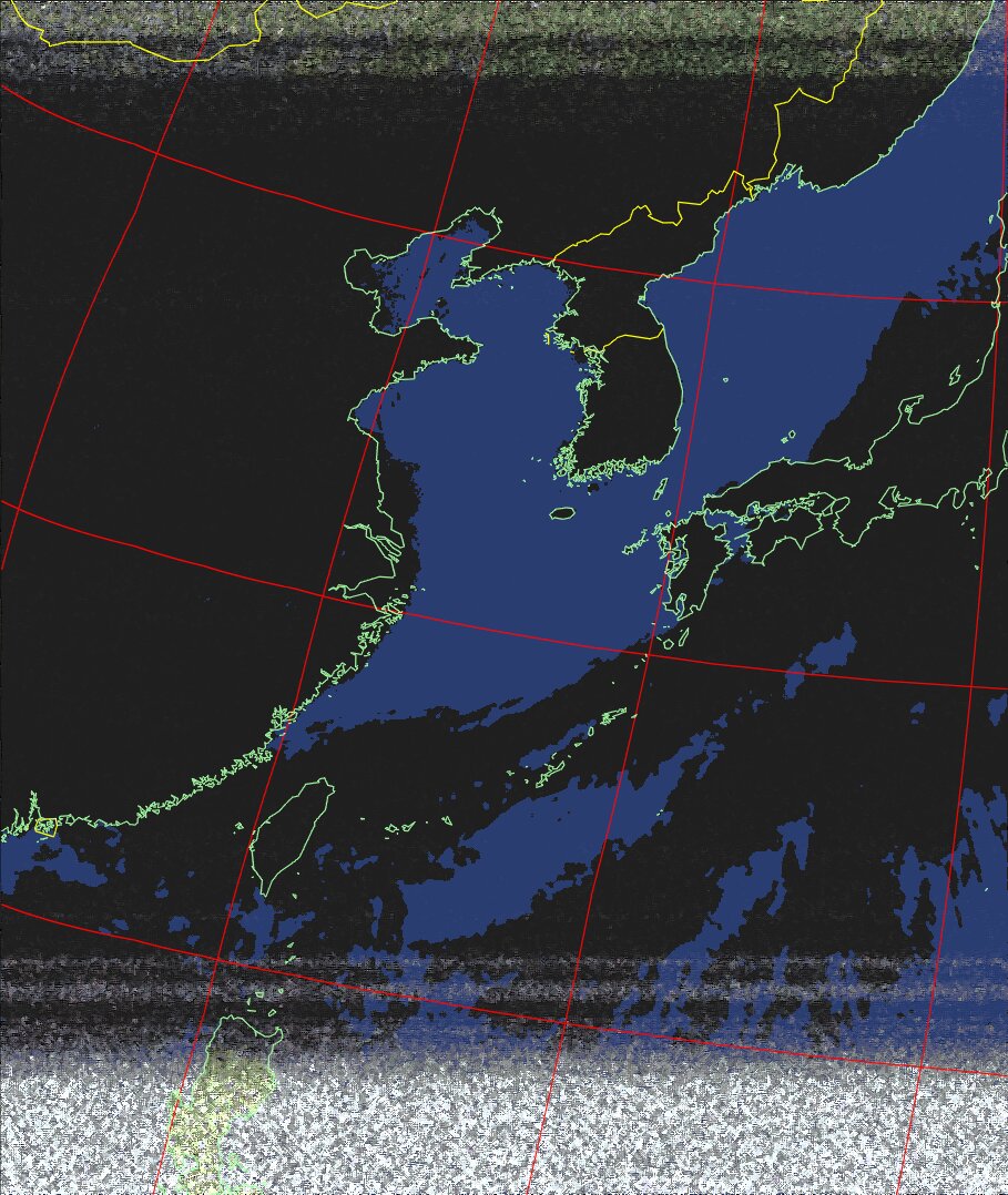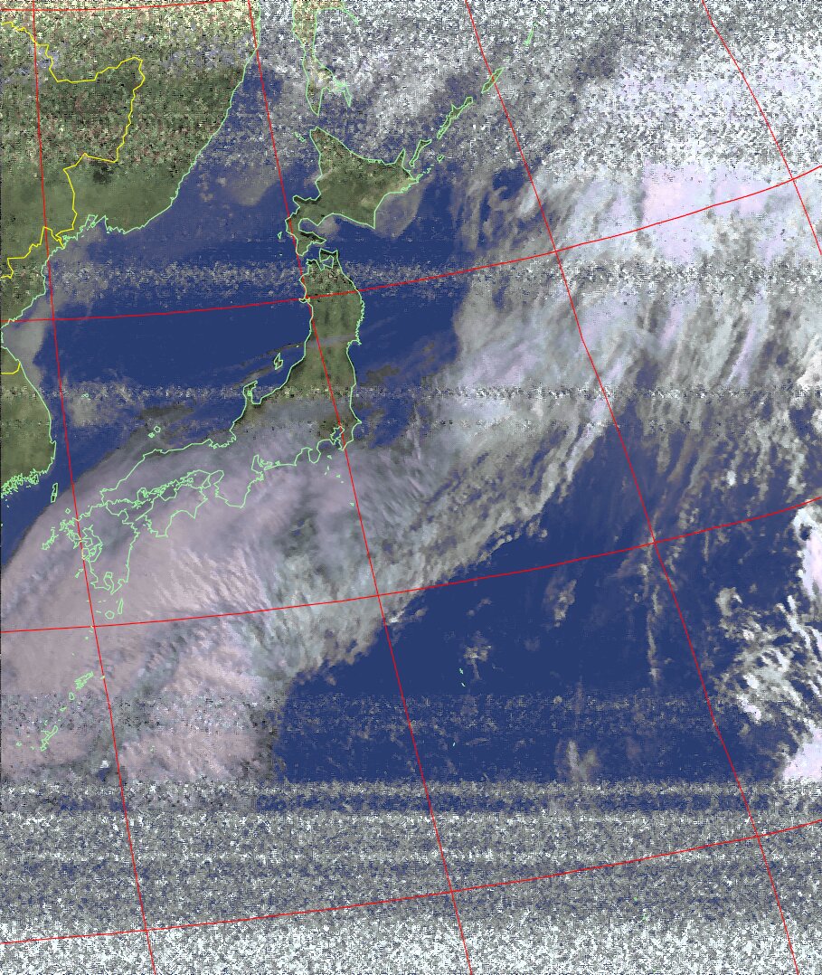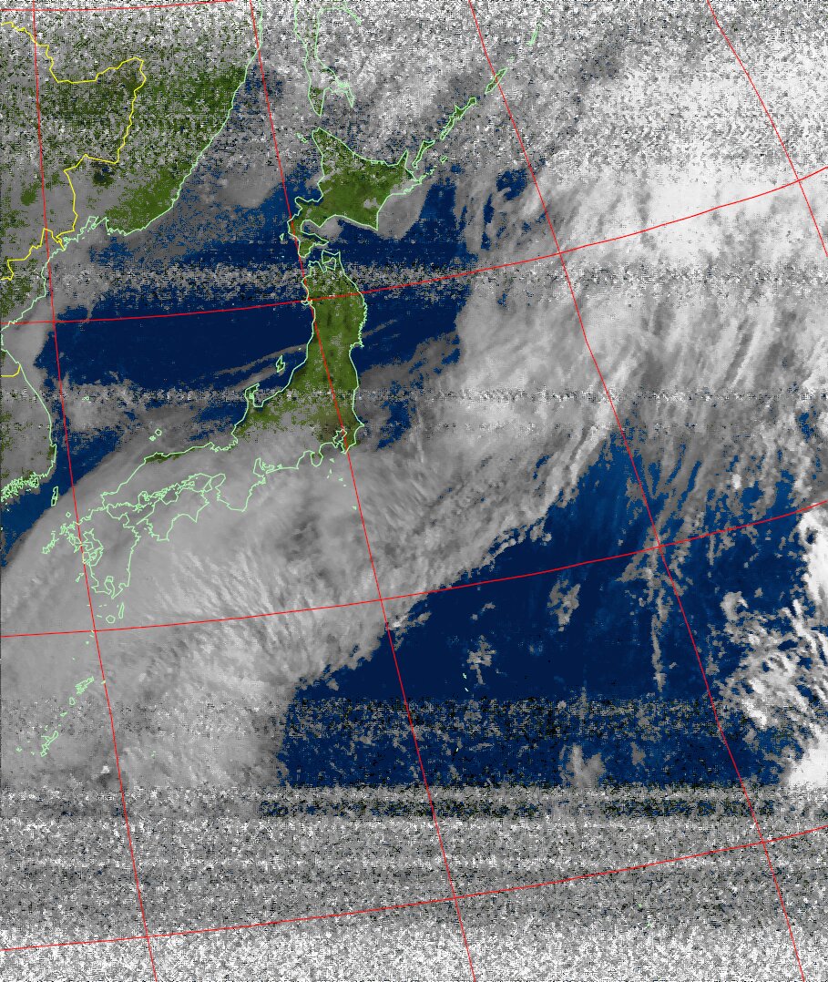 | NOAA19 10:00:18~10:15:54 進行方向(北から南) 最大昇角(71°) 方角(東) |