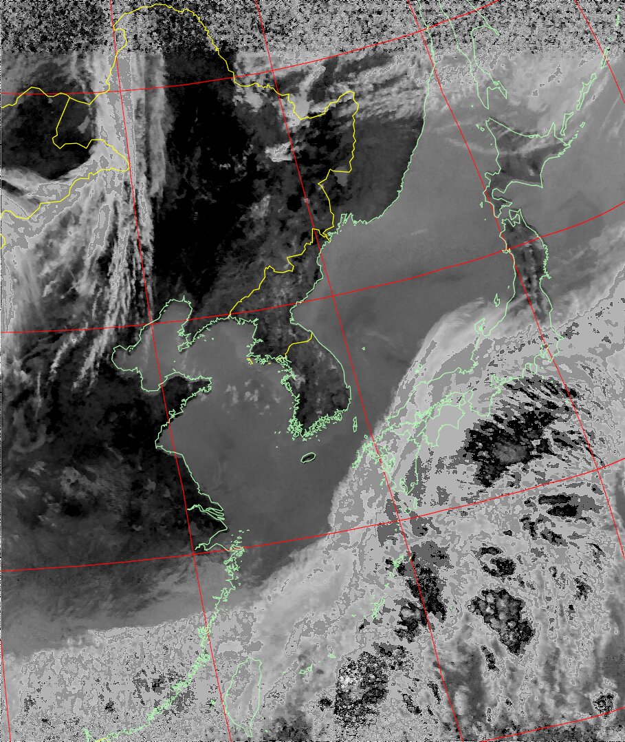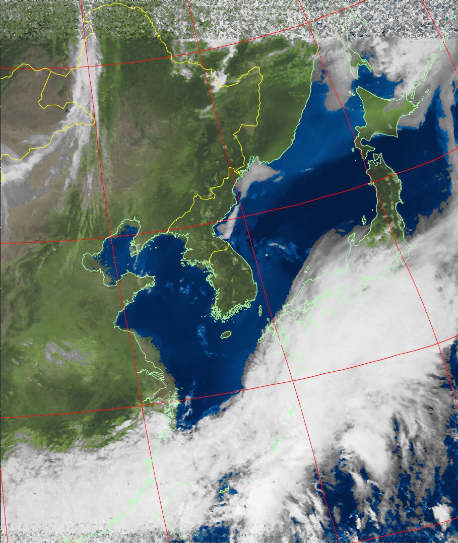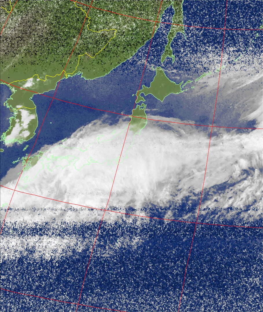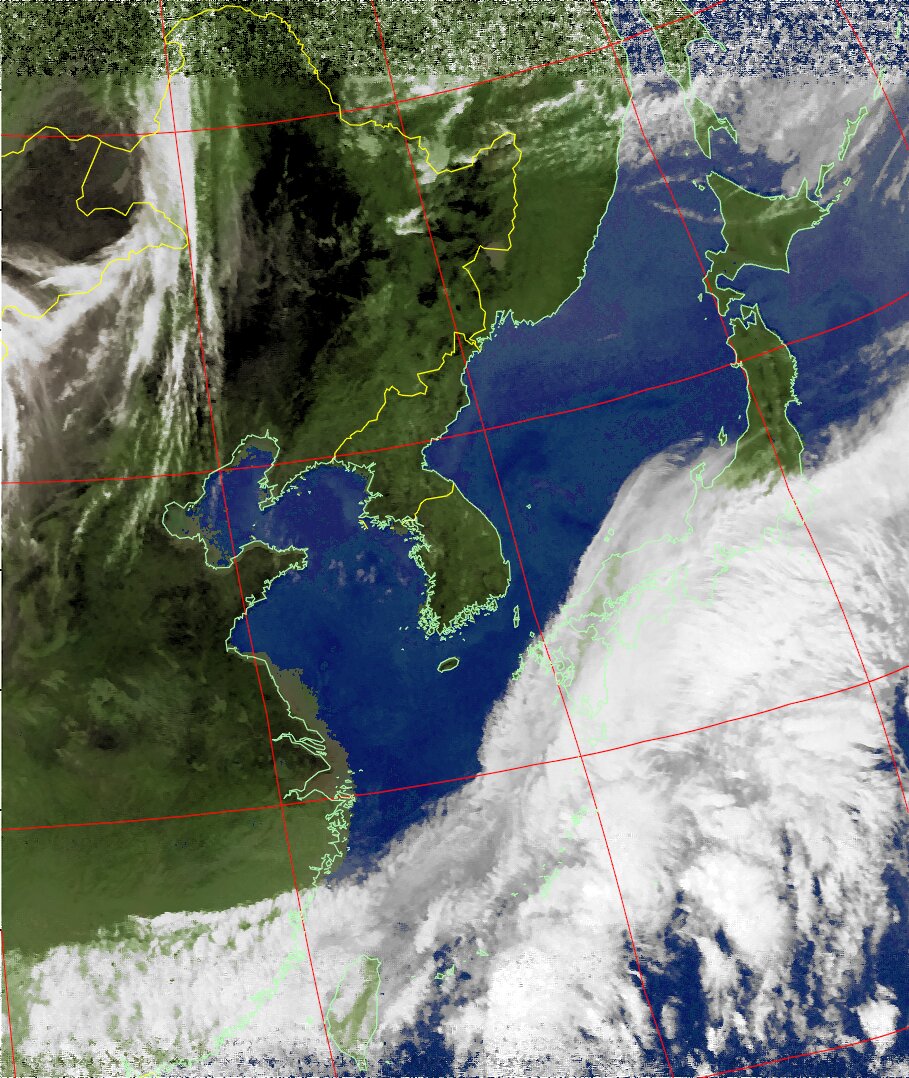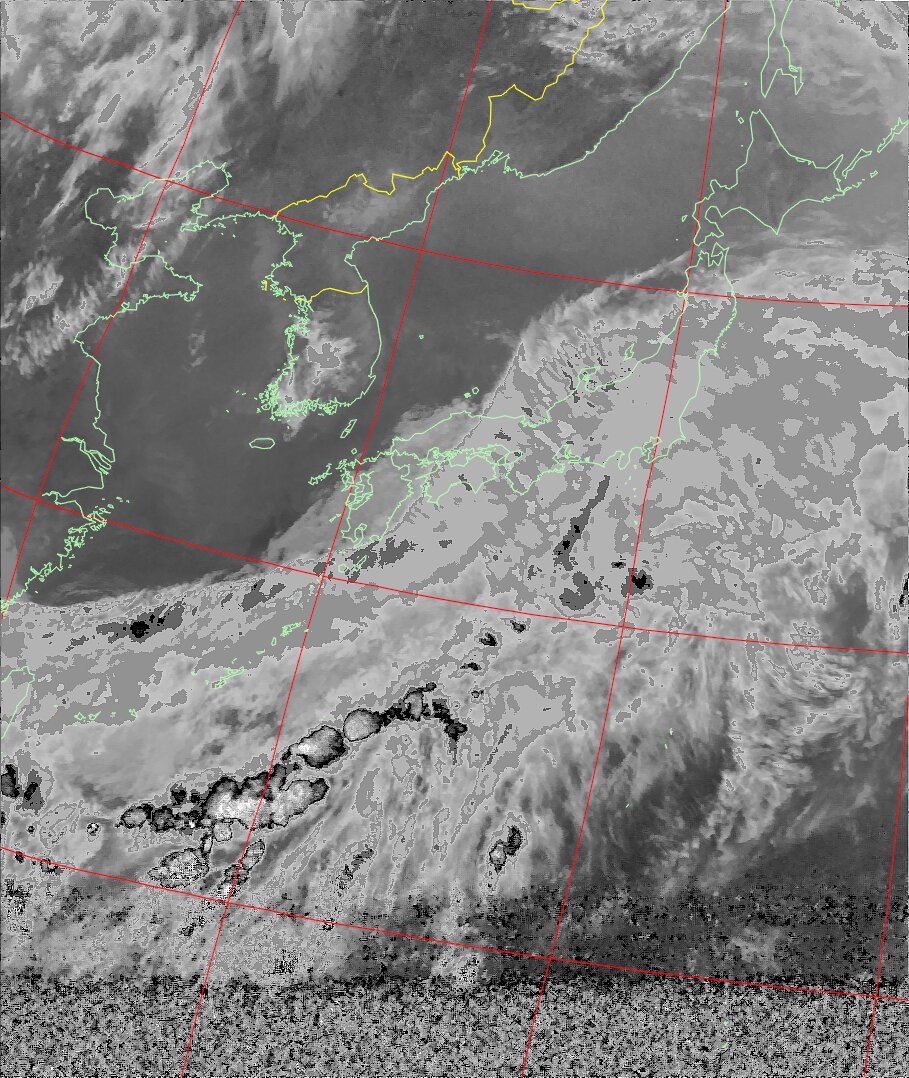 | NOAA19 10:00:18~10:15:54 進行方向(北から南) 最大昇角(71°) 方角(東) |