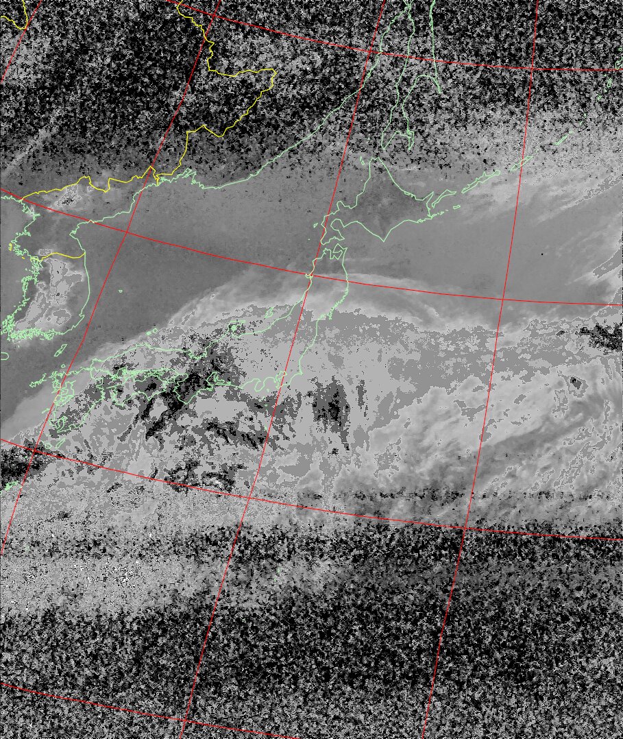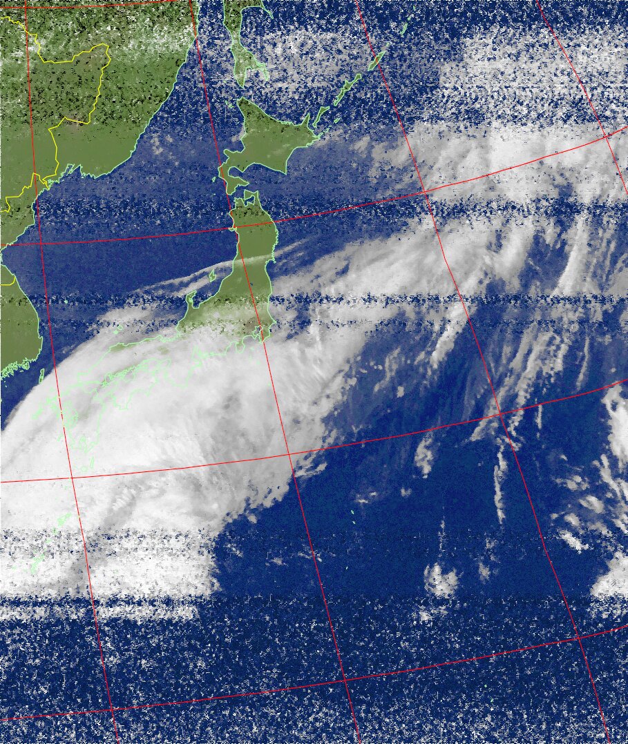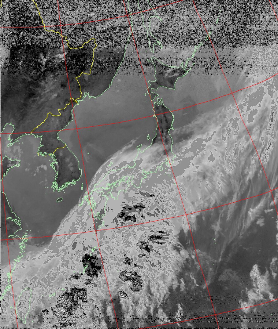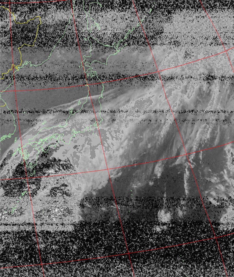 | NOAA18 22:57:18~23:12:48 進行方向(南から北) 最大昇角(41°) 方角(西) |