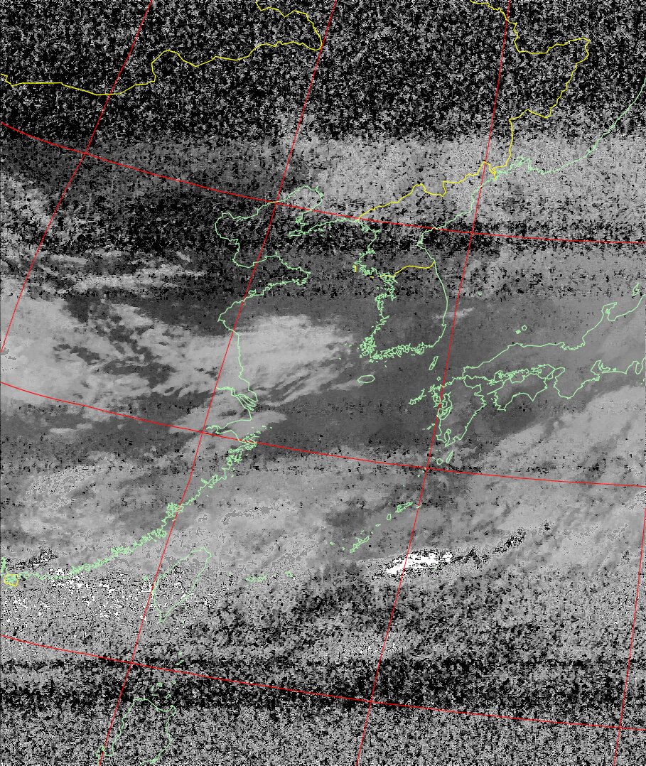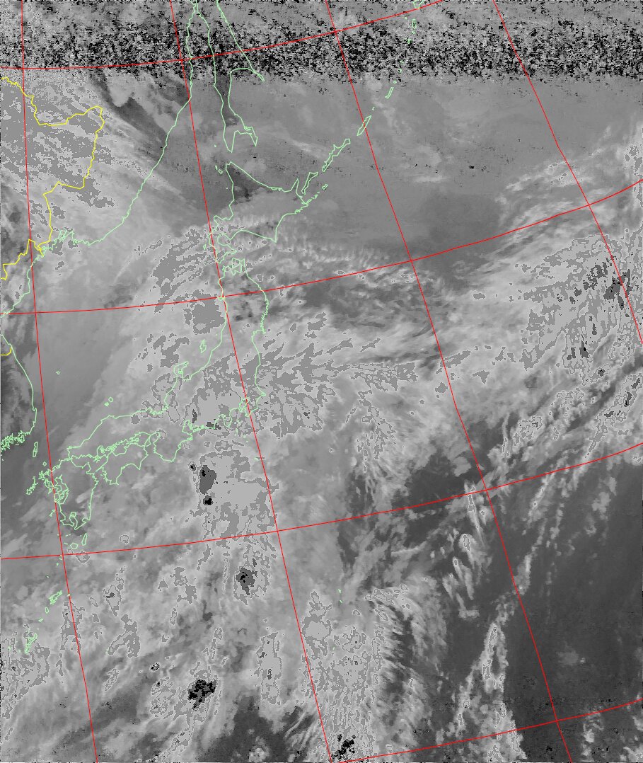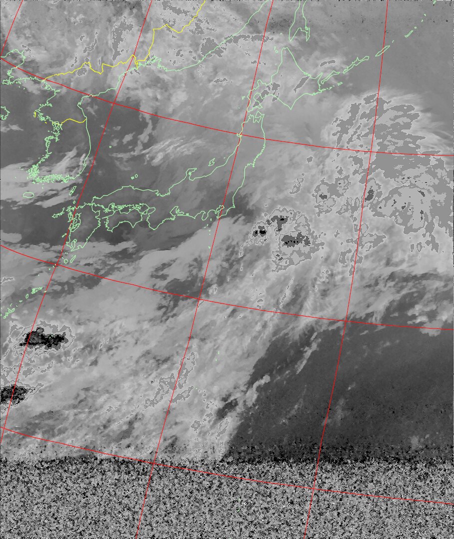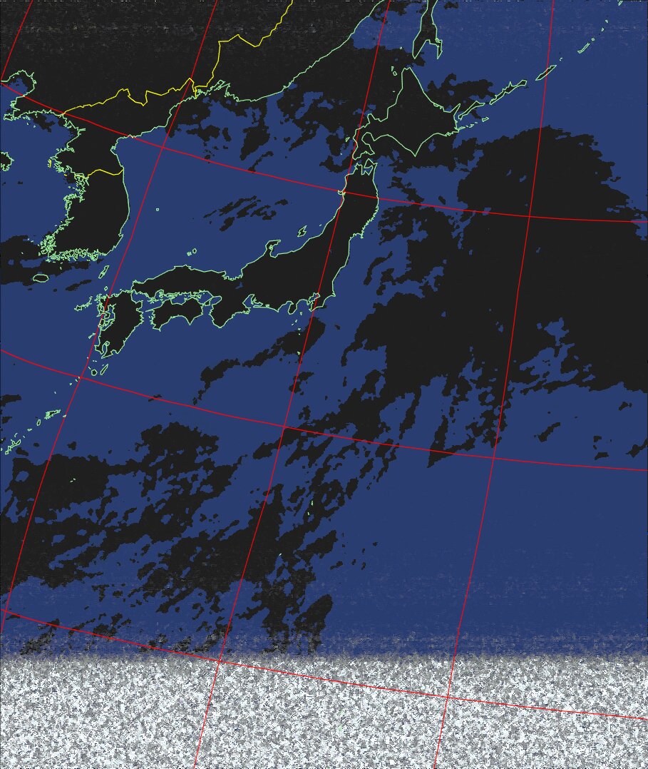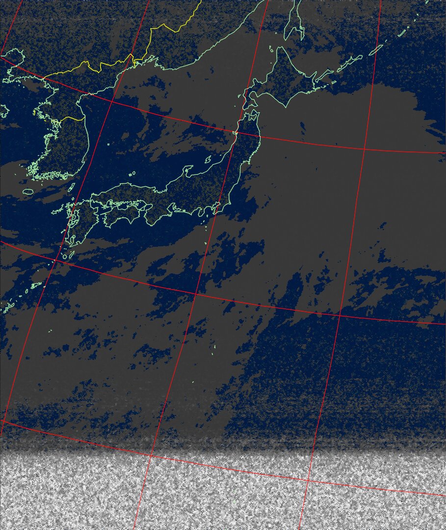 | NOAA18 10:30:58~10:46:01 進行方向(北から南) 最大昇角(37°) 方角(東) |