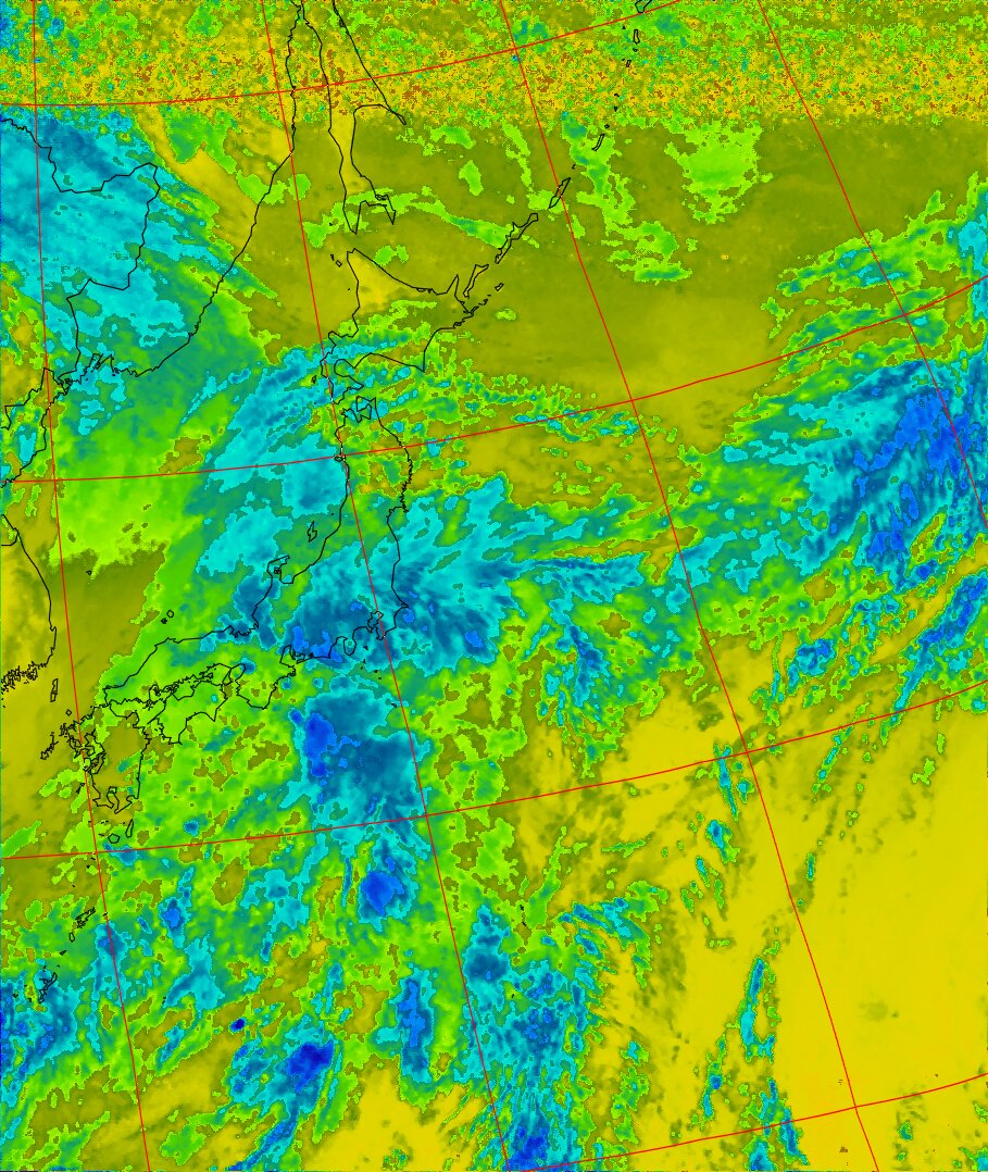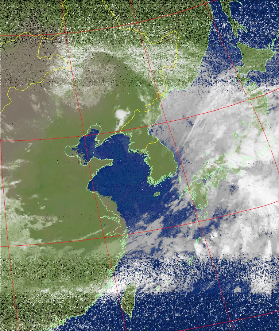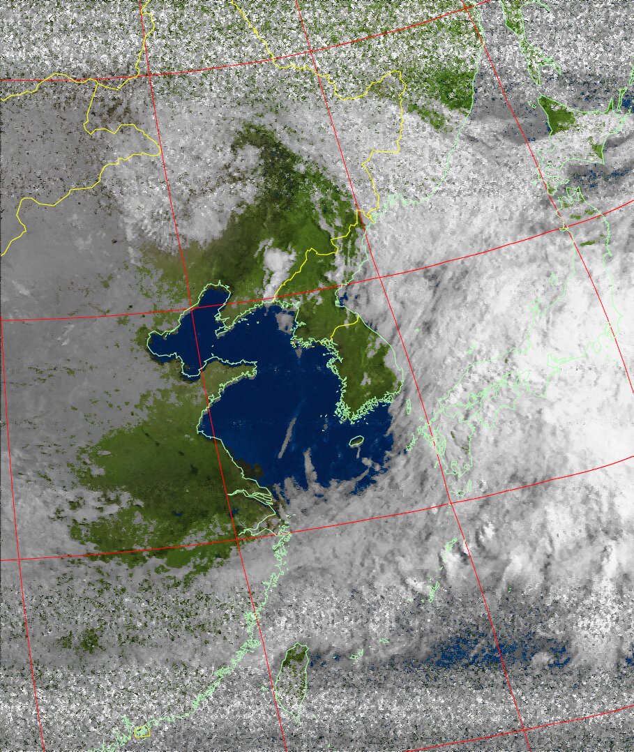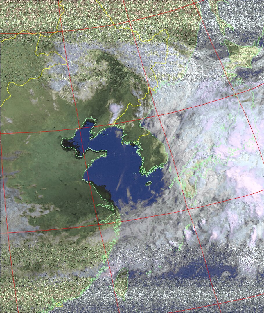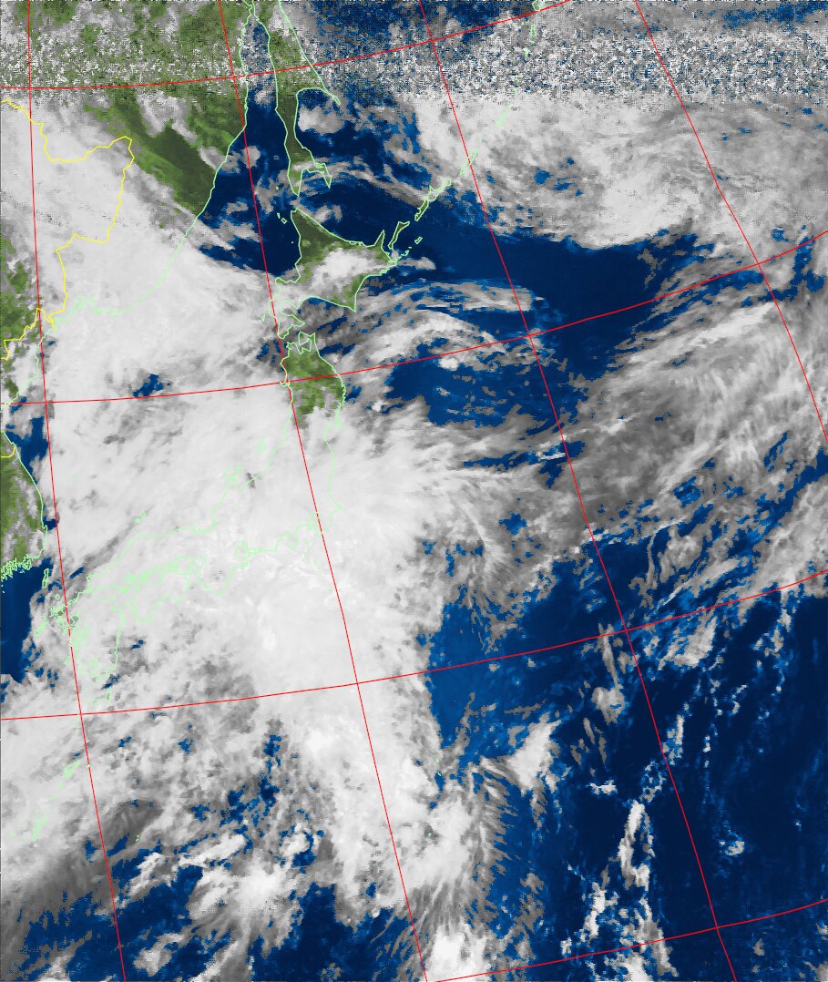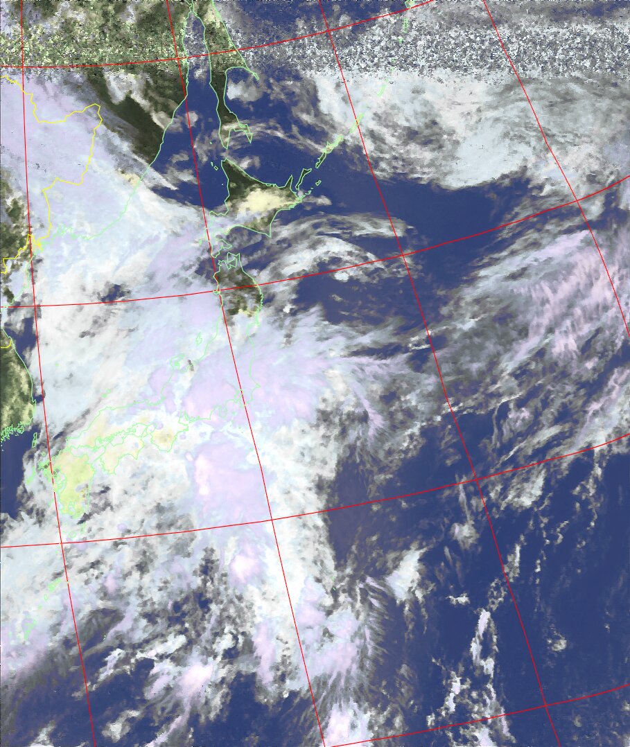 | NOAA18 10:30:58~10:46:01 進行方向(北から南) 最大昇角(37°) 方角(東) |