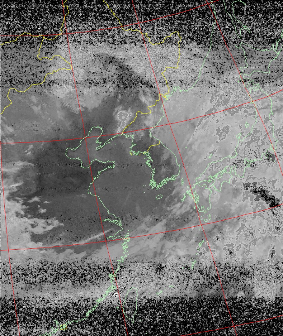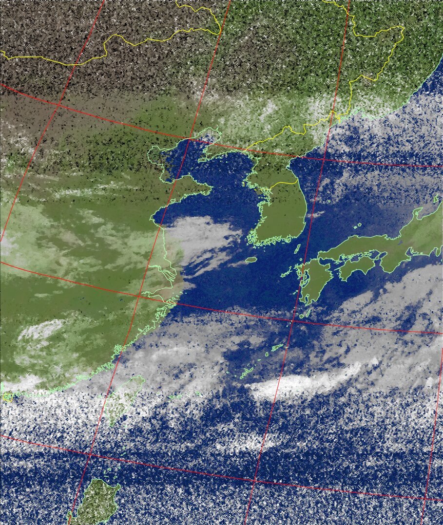 | NOAA19 10:37:41~10:53:07 進行方向(北から南) 最大昇角(51°) 方角(西) |