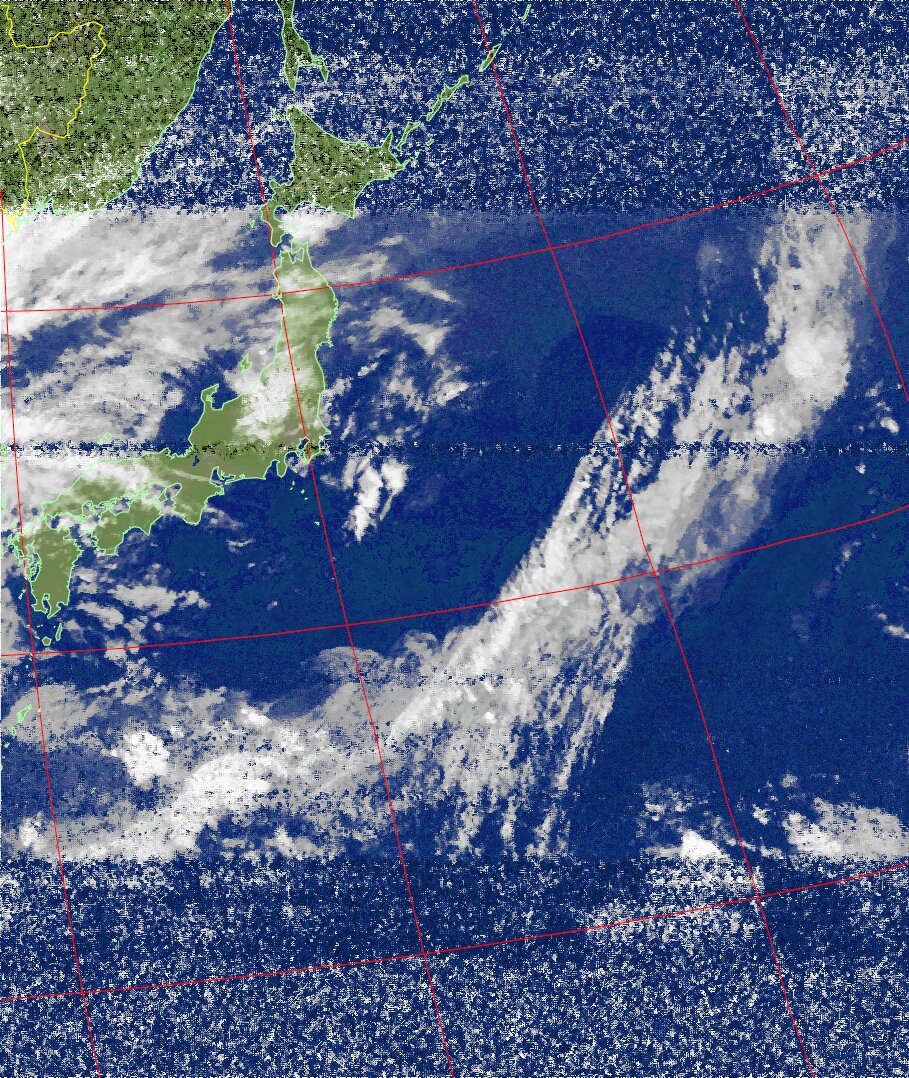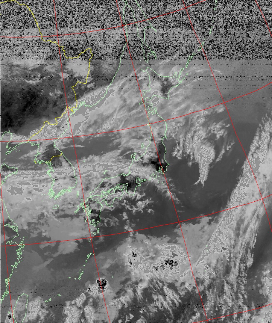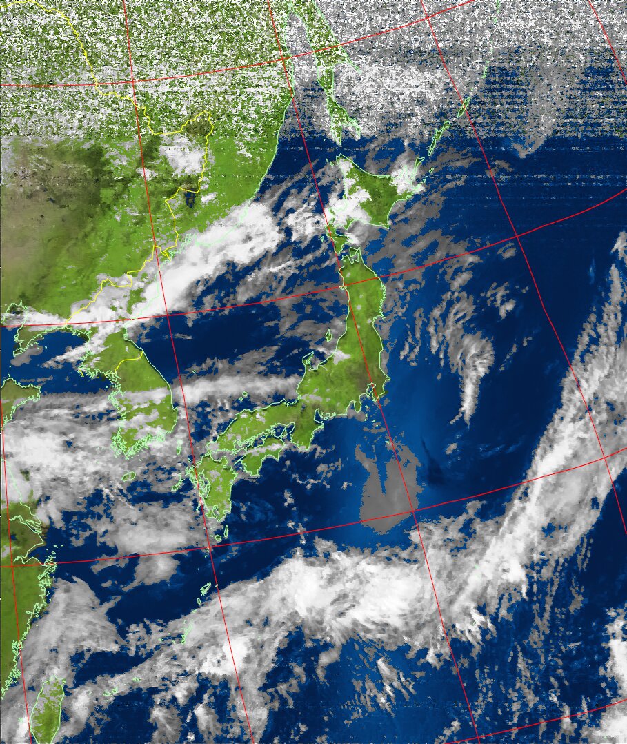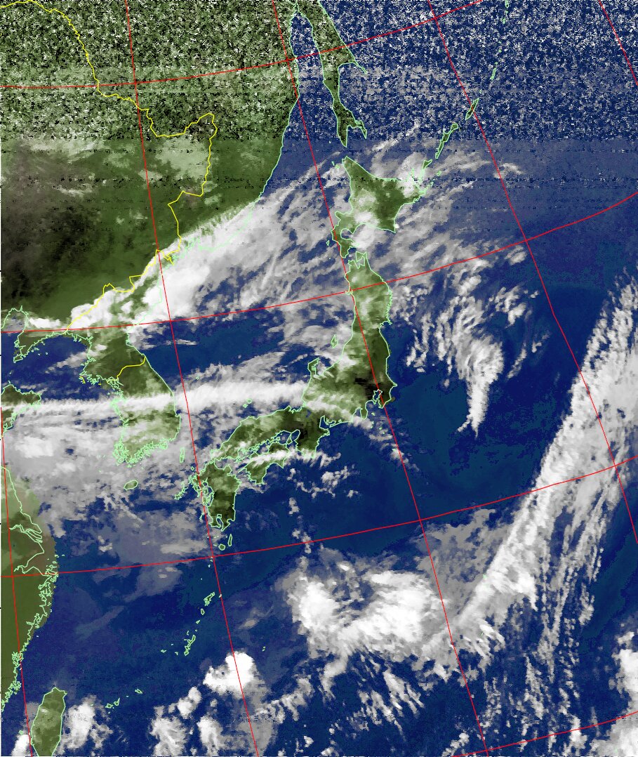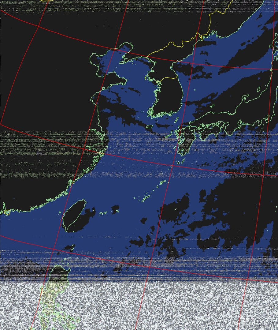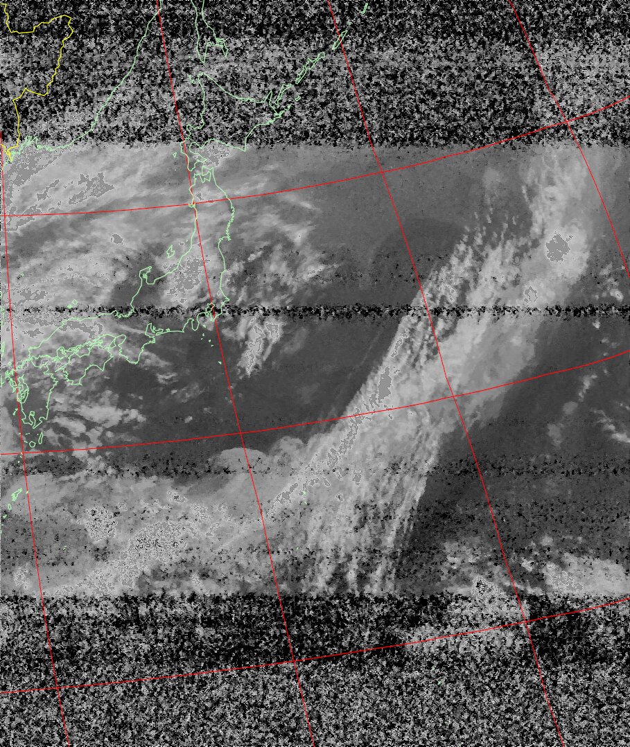 | NOAA19 09:59:36~10:15:21 進行方向(北から南) 最大昇角(69°) 方角(東) |