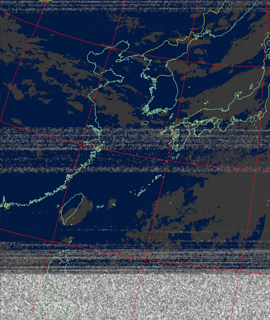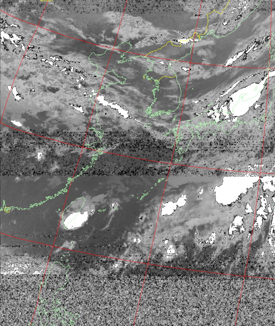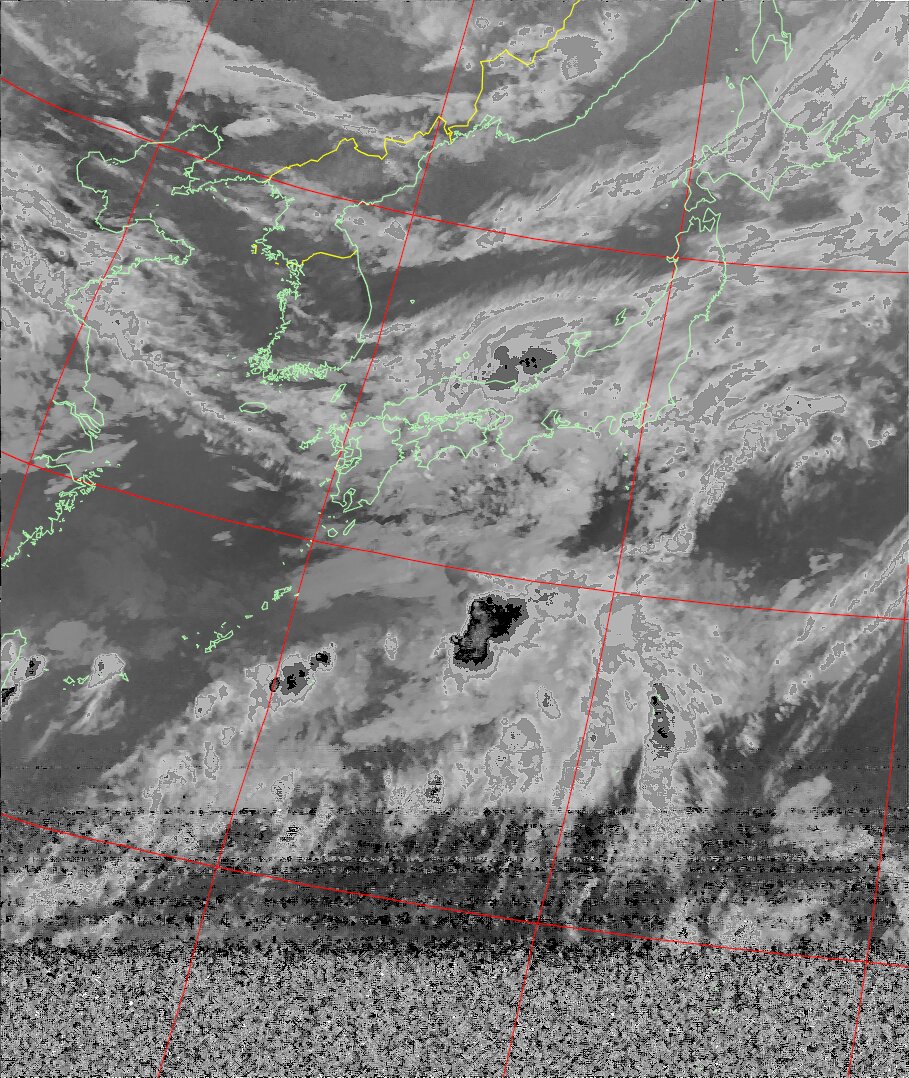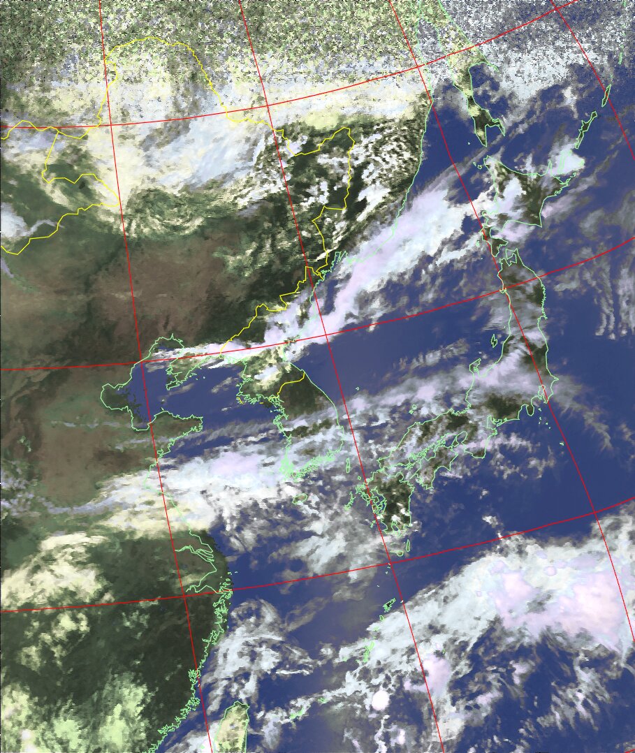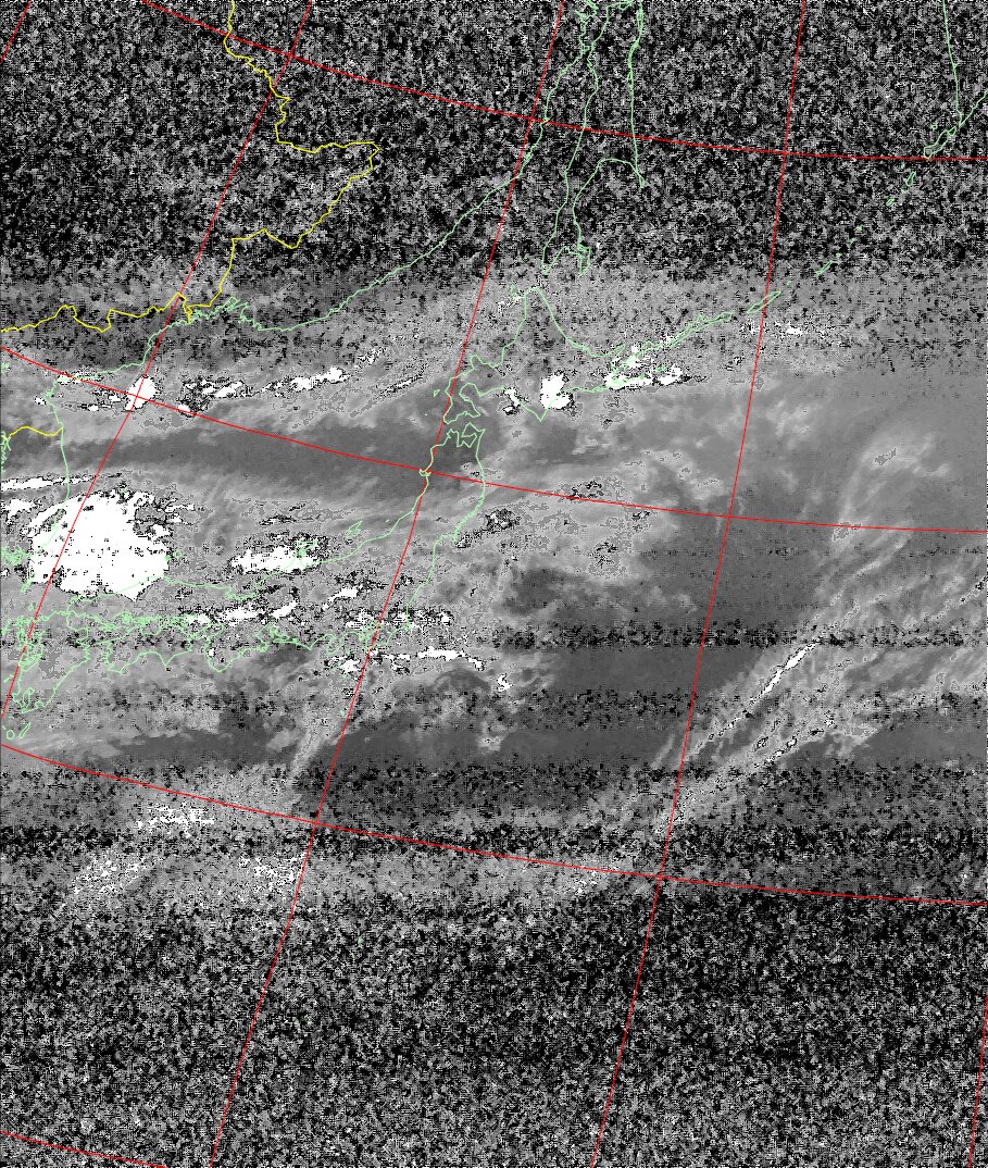 | NOAA19 09:59:36~10:15:21 進行方向(北から南) 最大昇角(69°) 方角(東) |