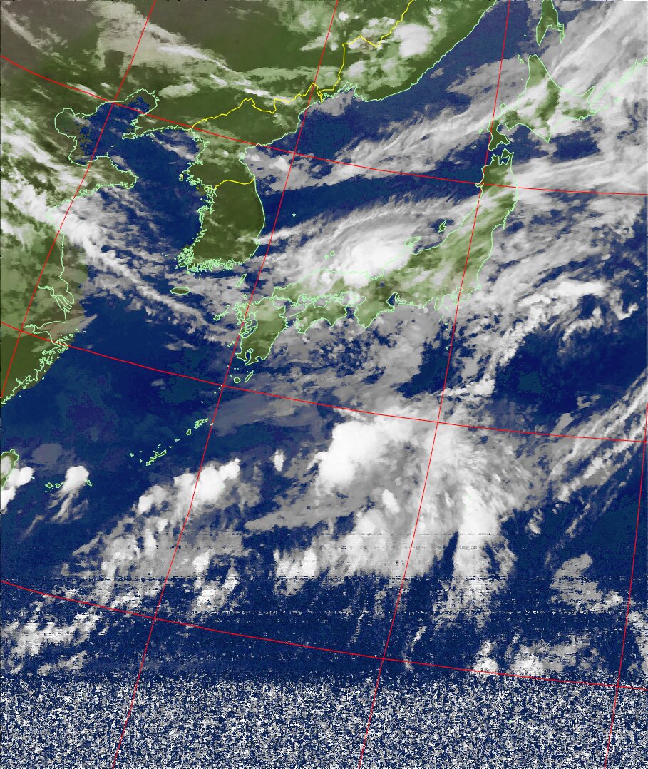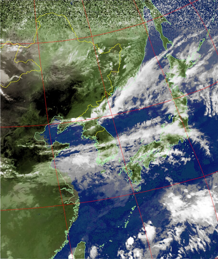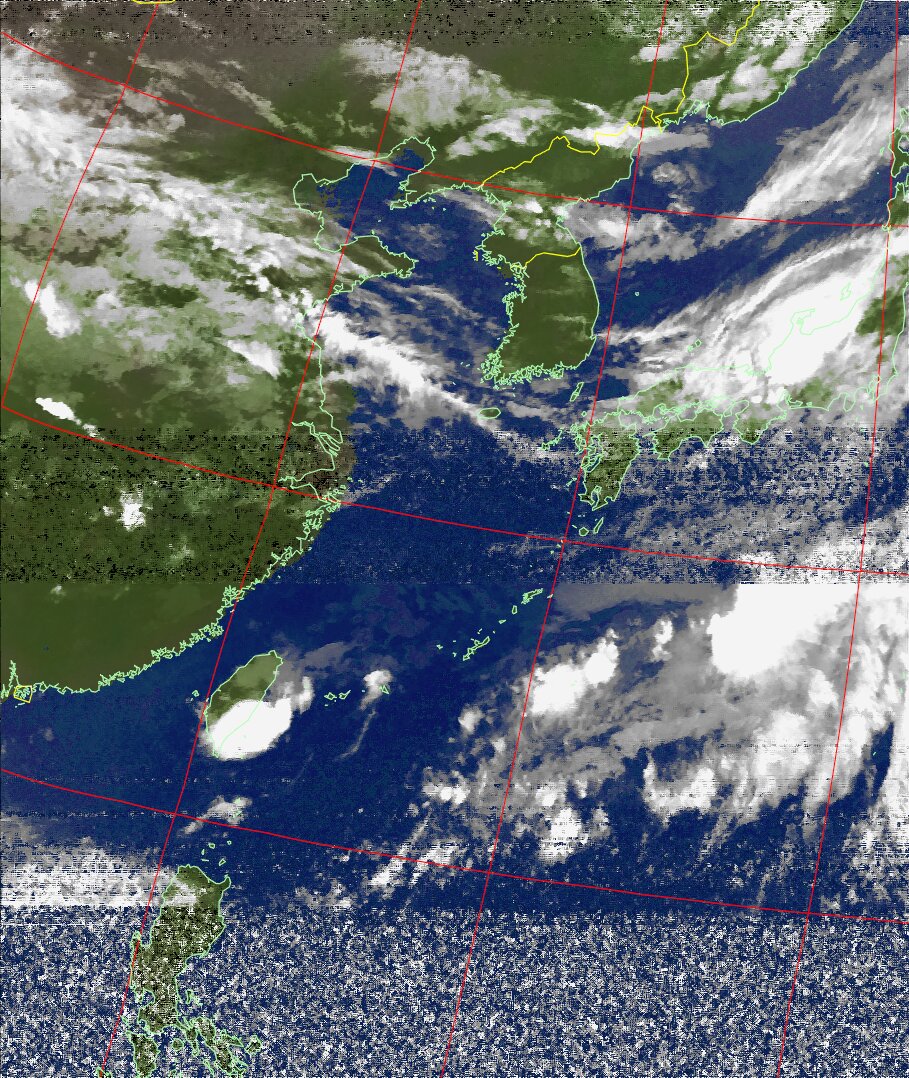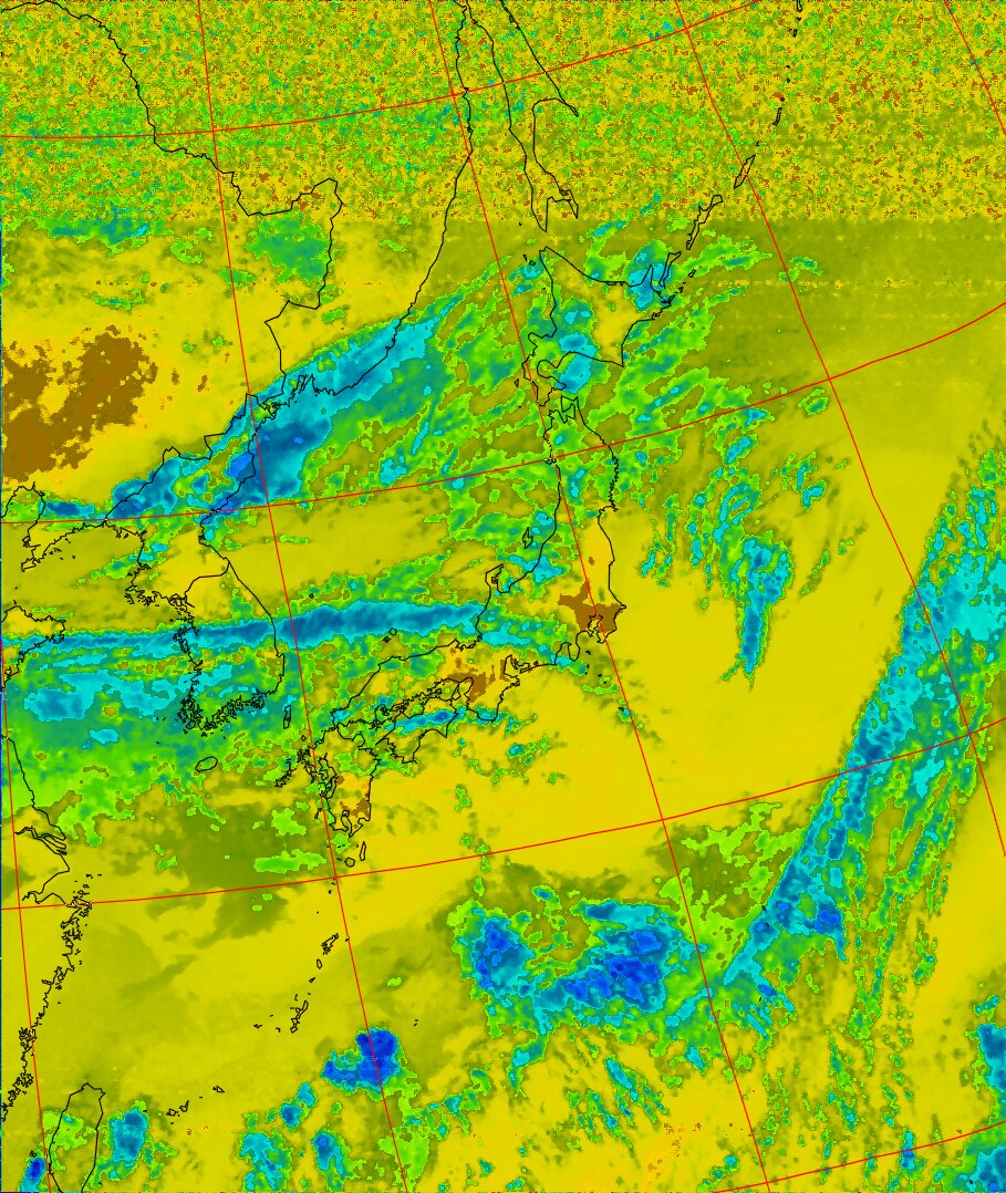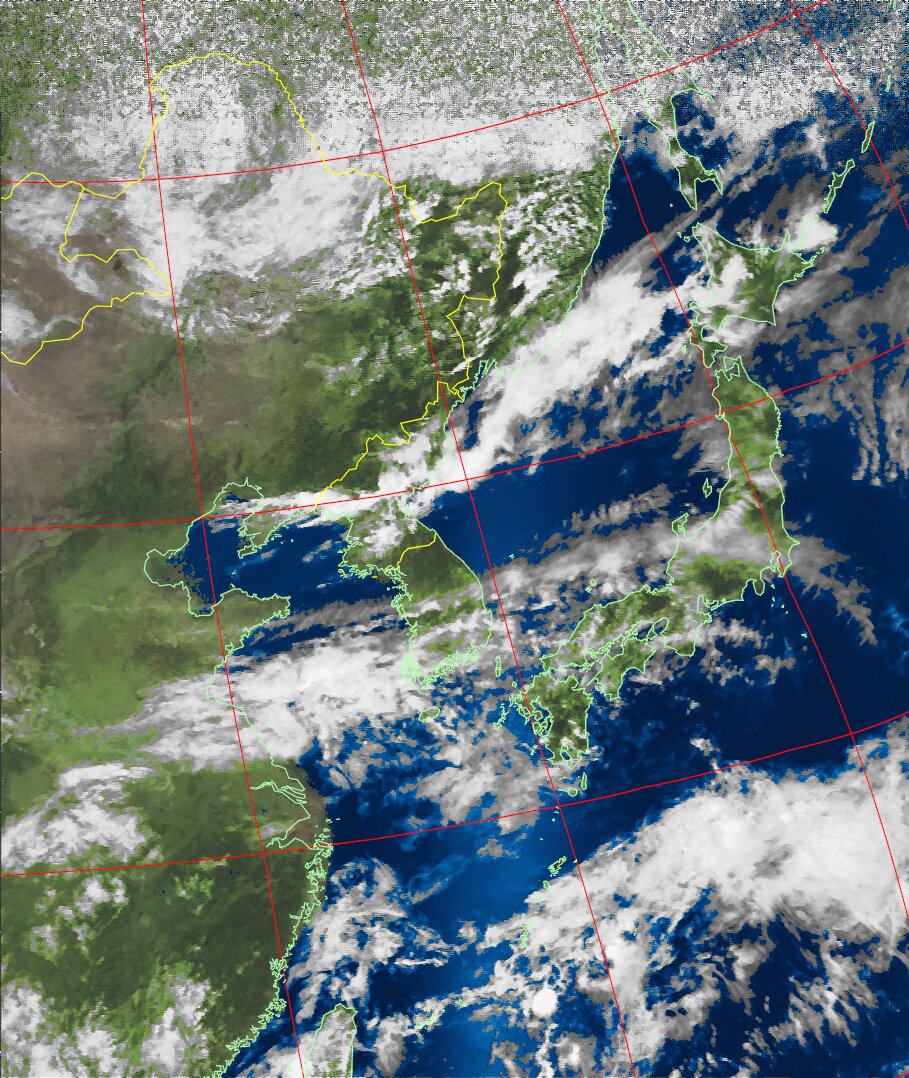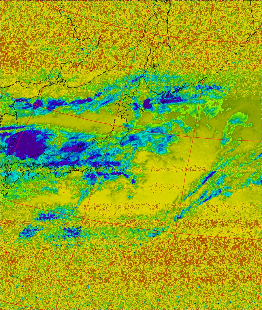 | NOAA19 09:59:36~10:15:21 進行方向(北から南) 最大昇角(69°) 方角(東) |