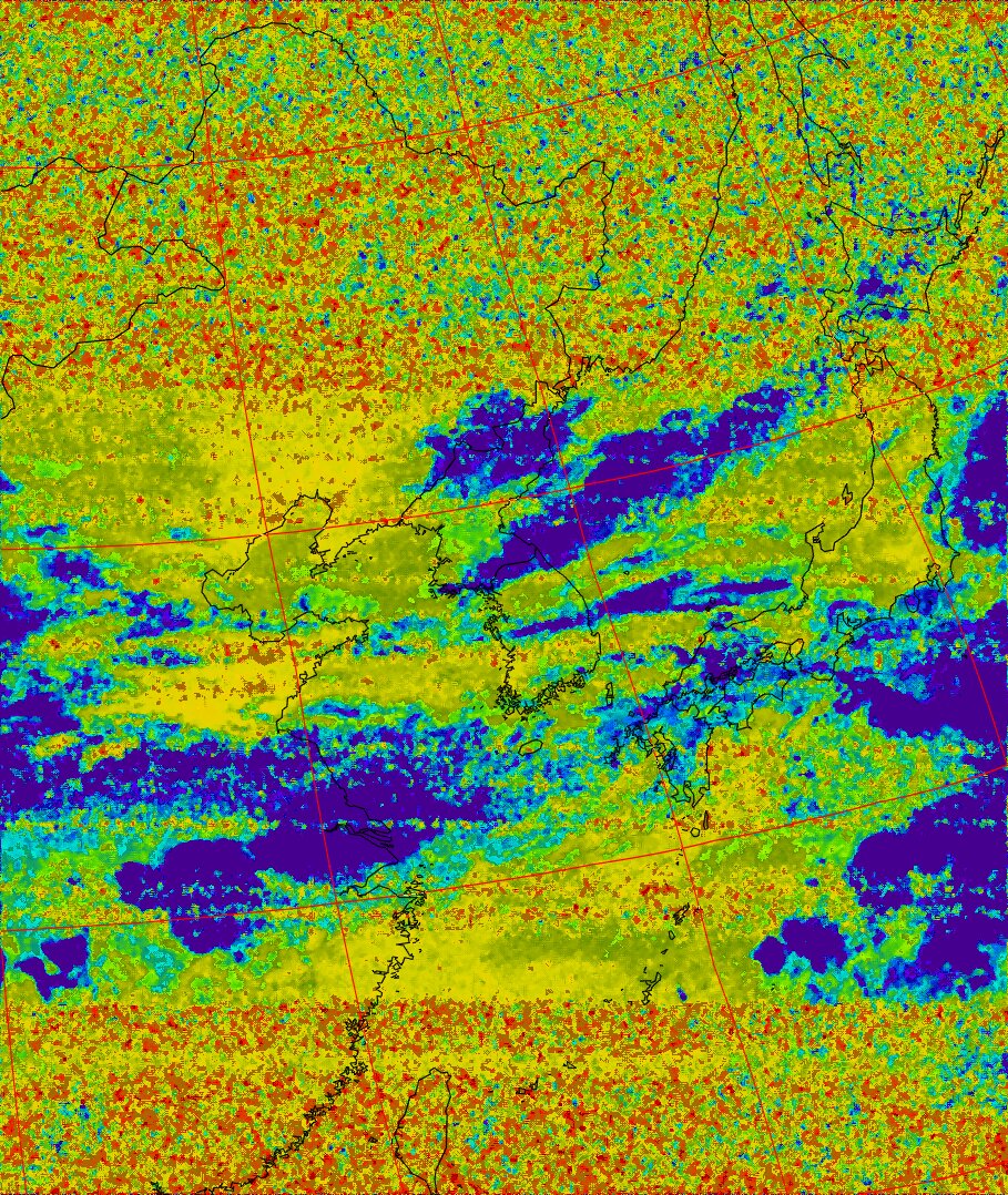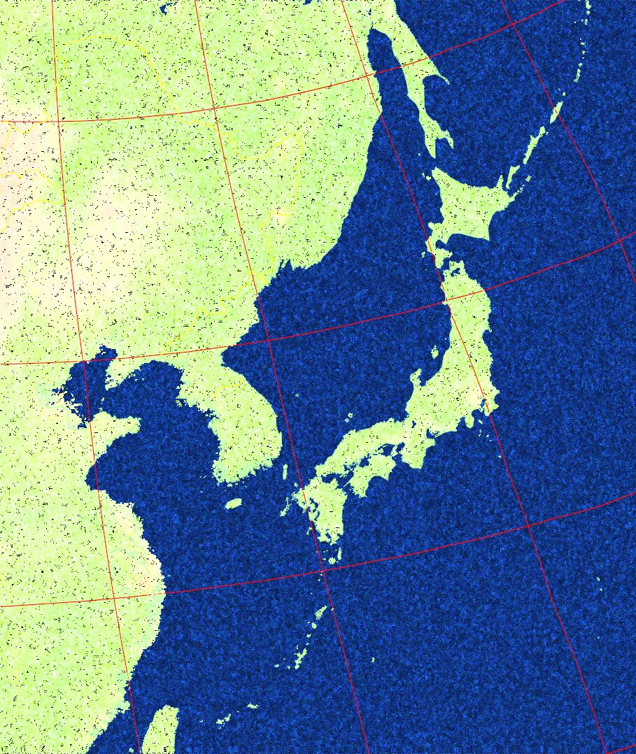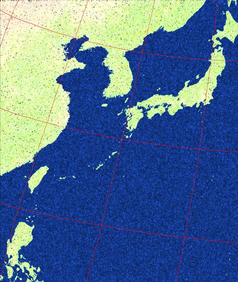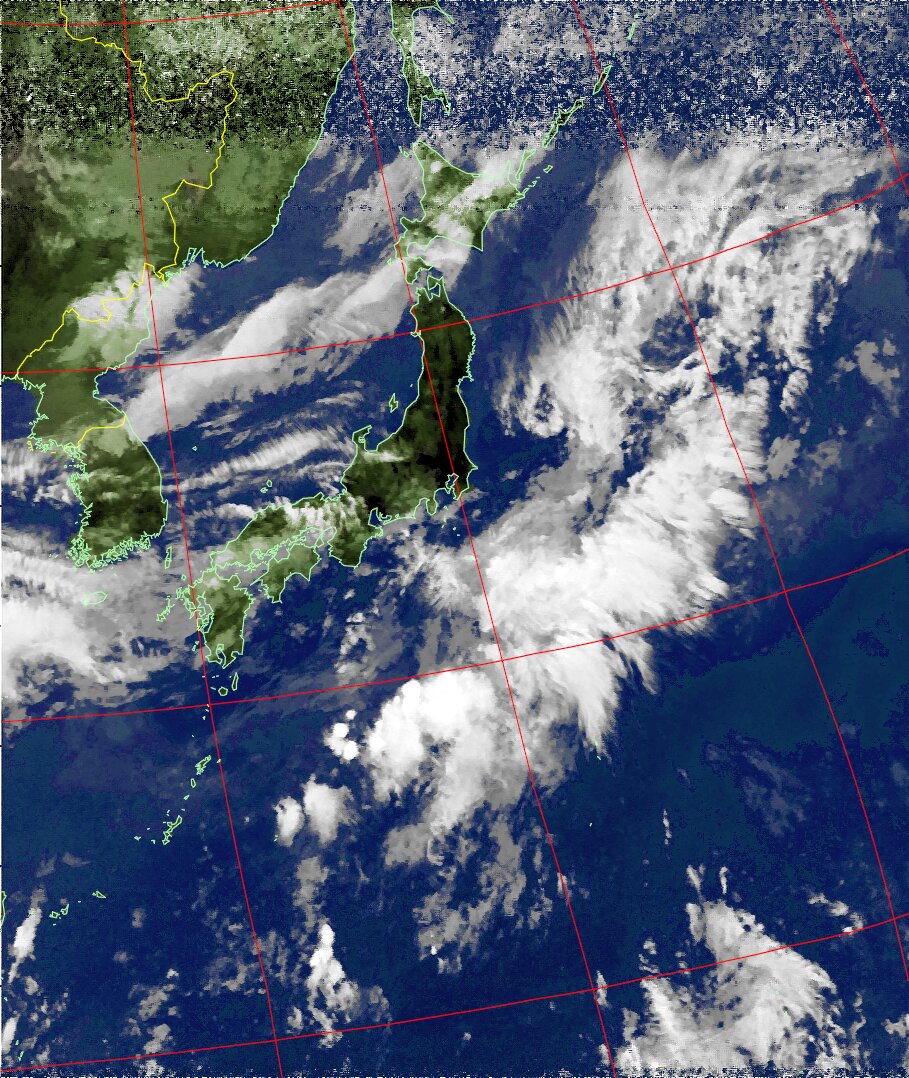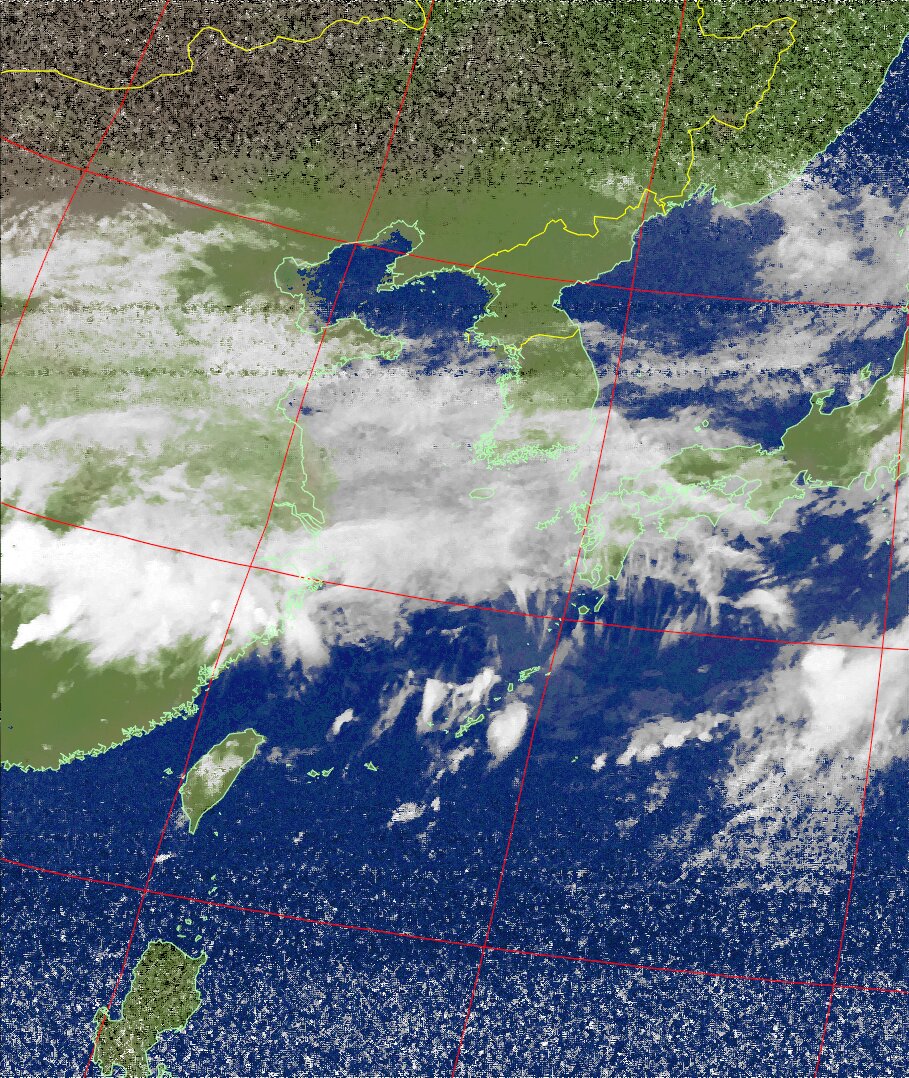 | NOAA19 09:47:00~10:02:36 進行方向(北から南) 最大昇角(53°) 方角(東) |