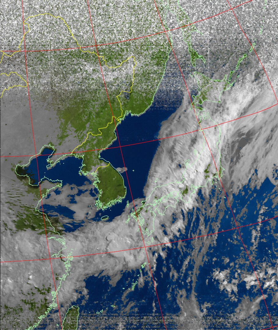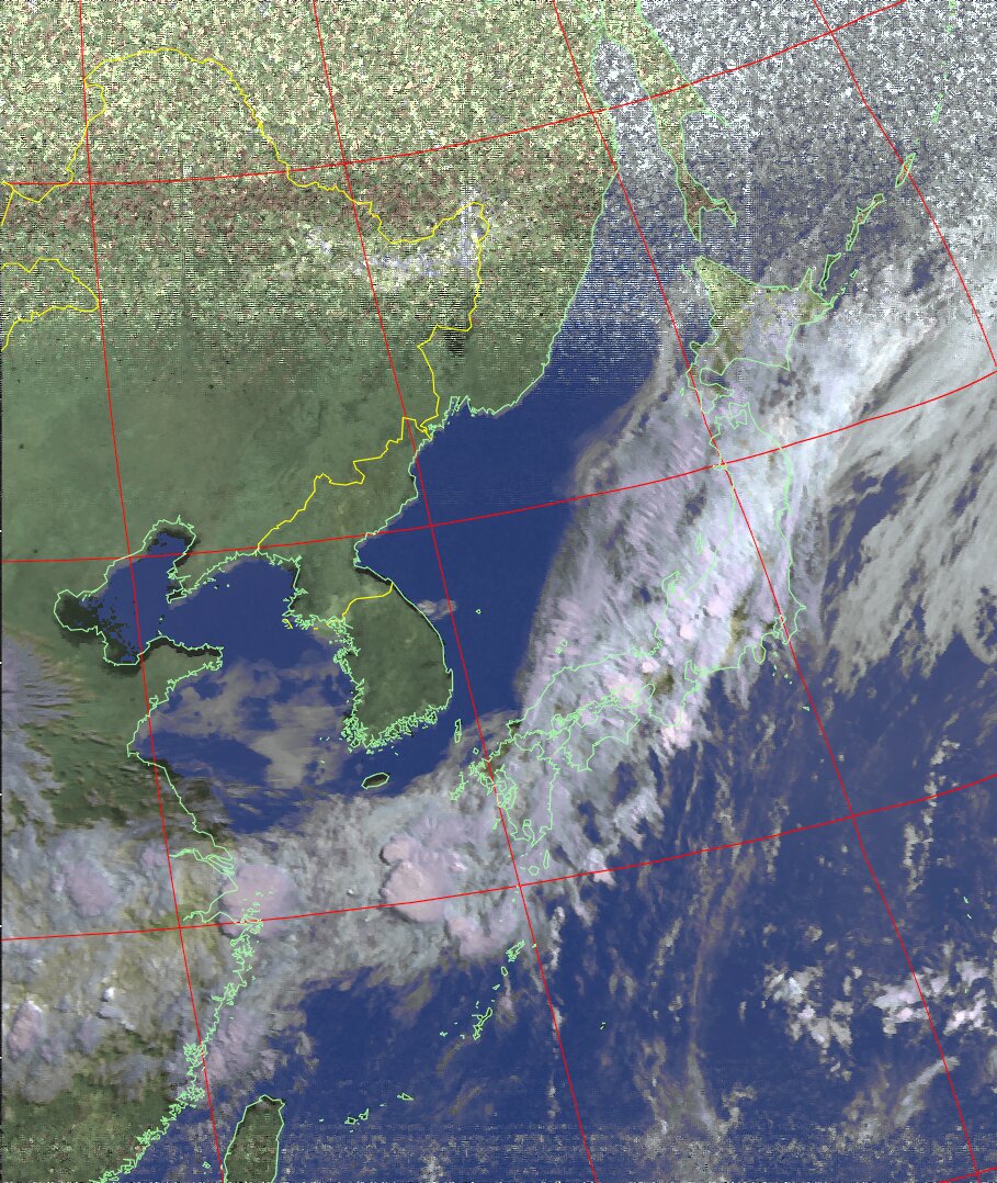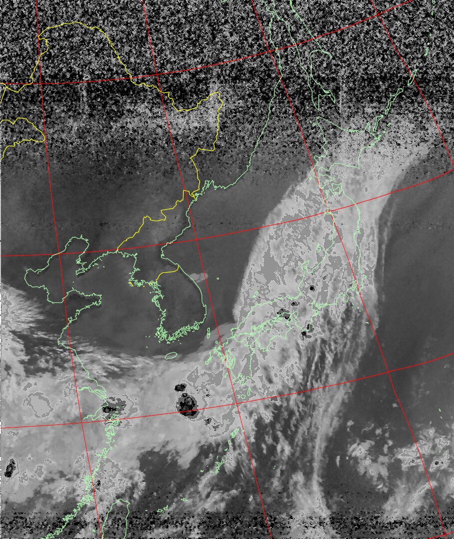 NOAA19 09:45:32~10:01:08 進行方向(北から南) 最大昇角(50°) 方角(東)