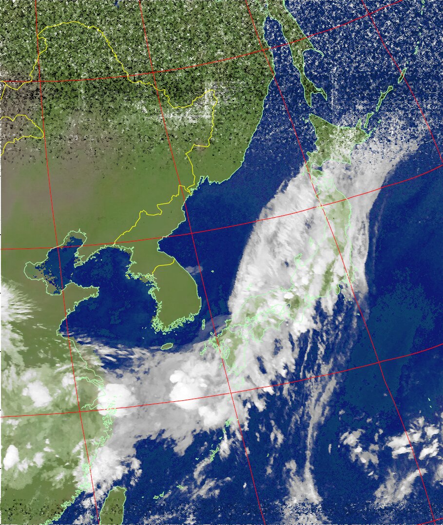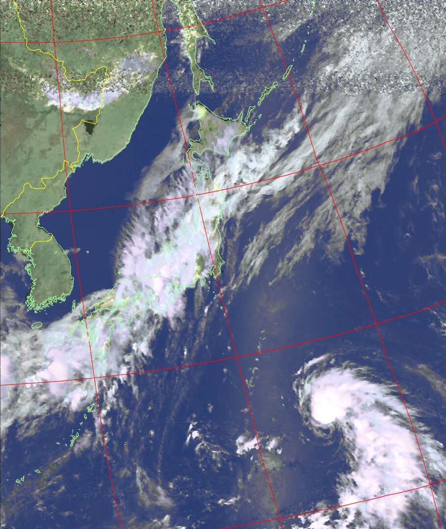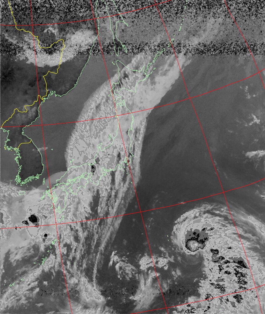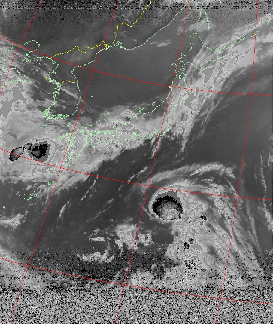 NOAA19 09:45:32~10:01:08 進行方向(北から南) 最大昇角(50°) 方角(東)