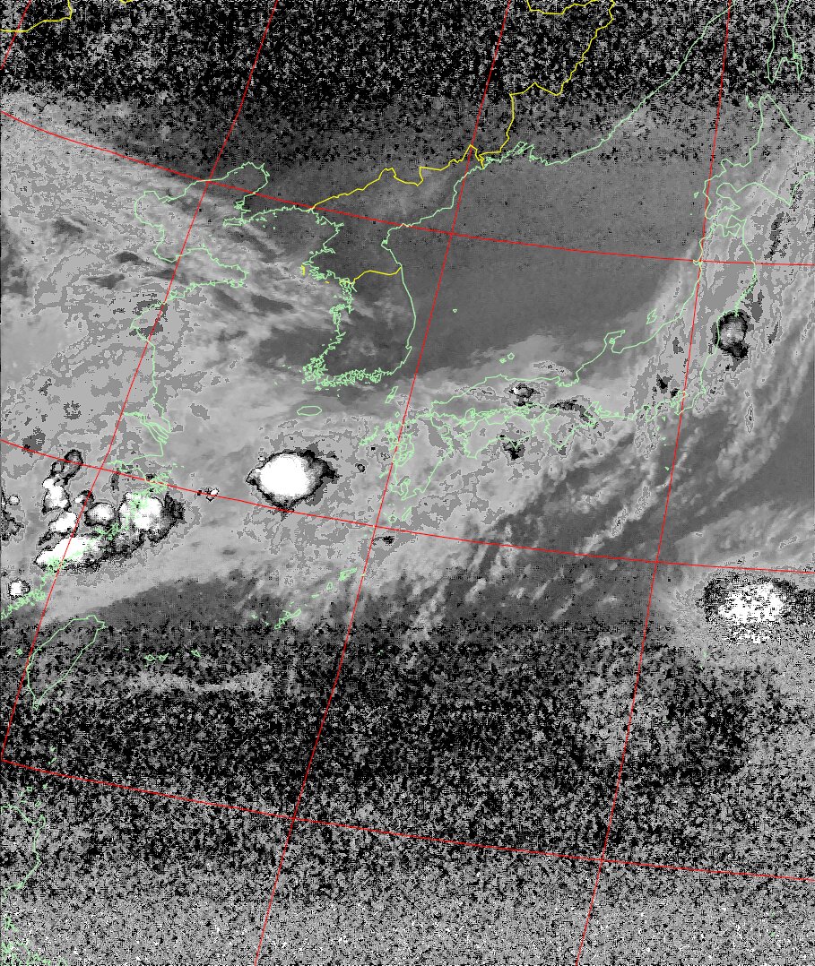 NOAA19 21:07:35~21:23:07 進行方向(南から北) 最大昇角(63°) 方角(東)