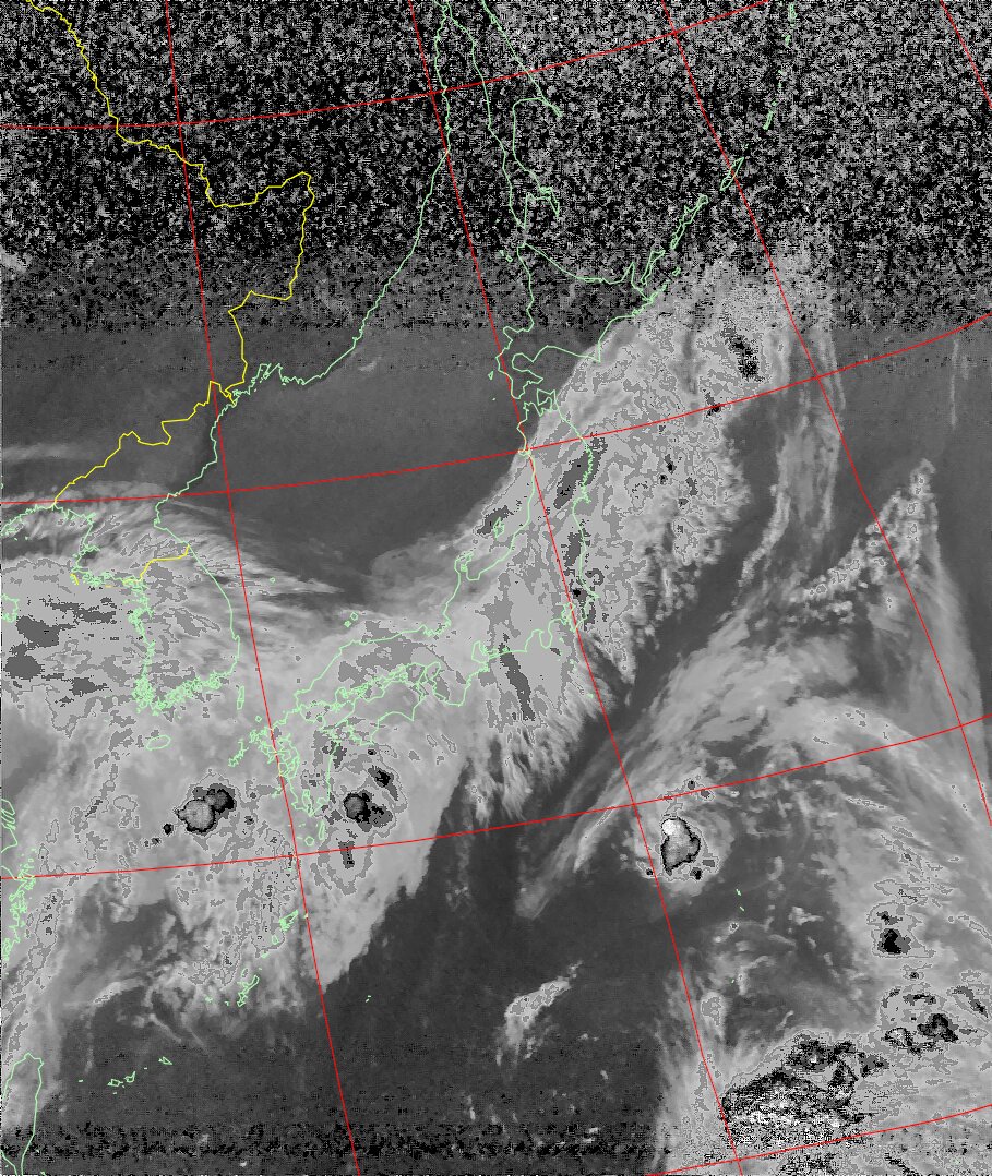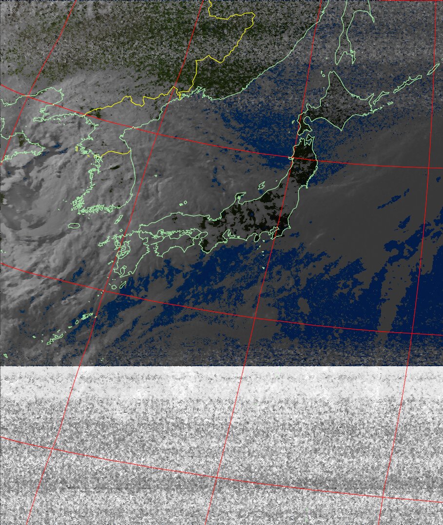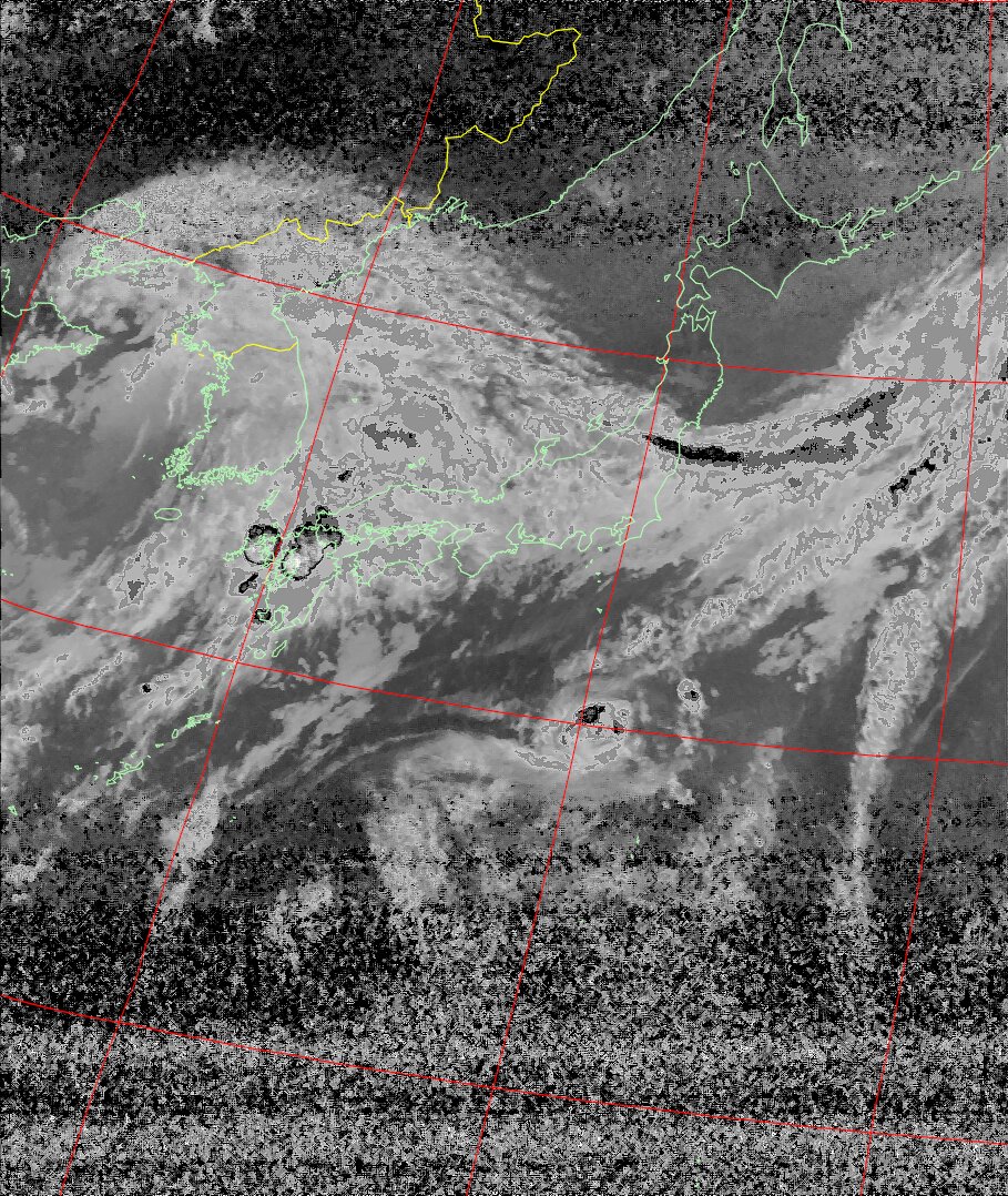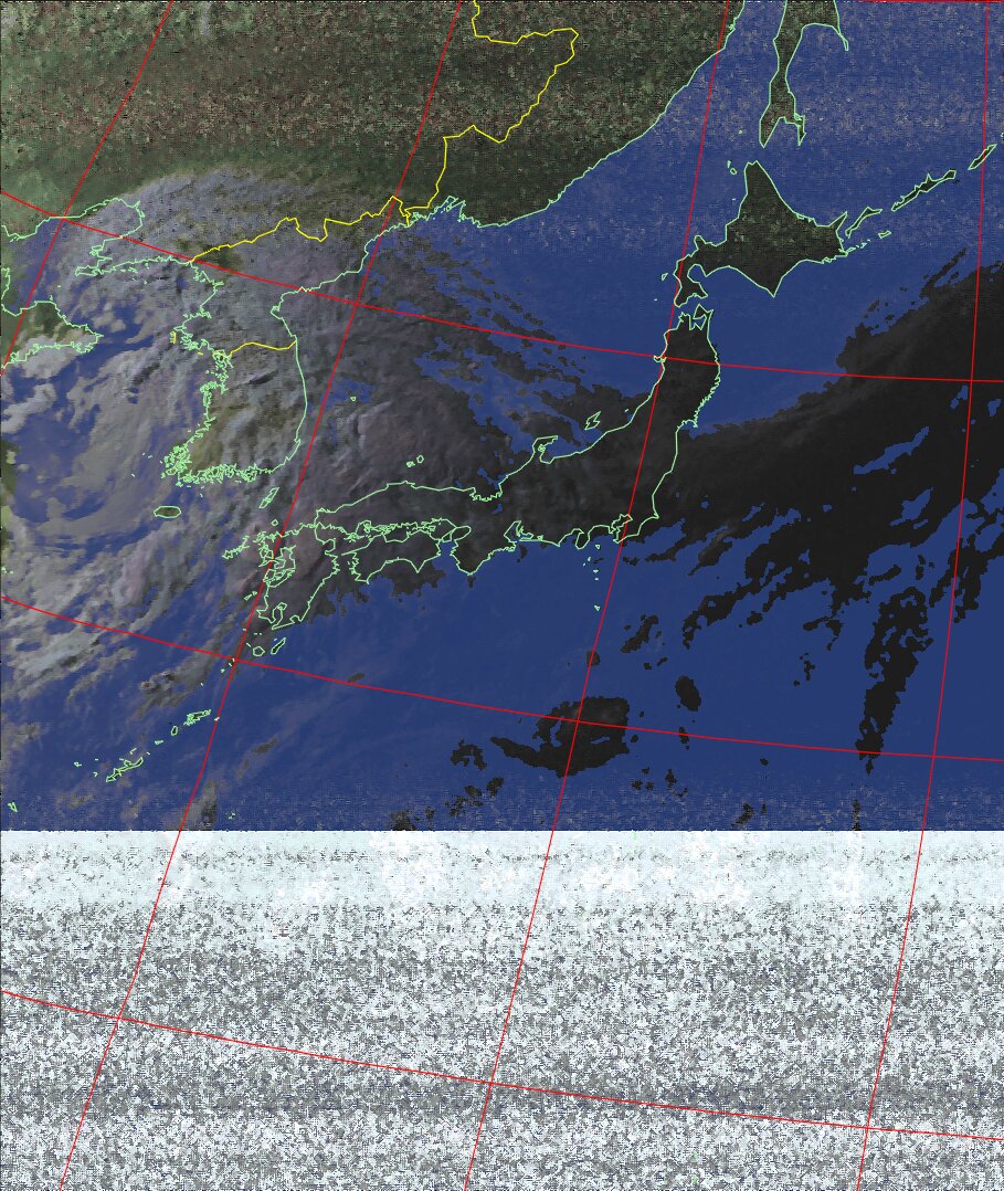 NOAA19 09:32:59~09:48:15 進行方向(北から南) 最大昇角(37°) 方角(東)