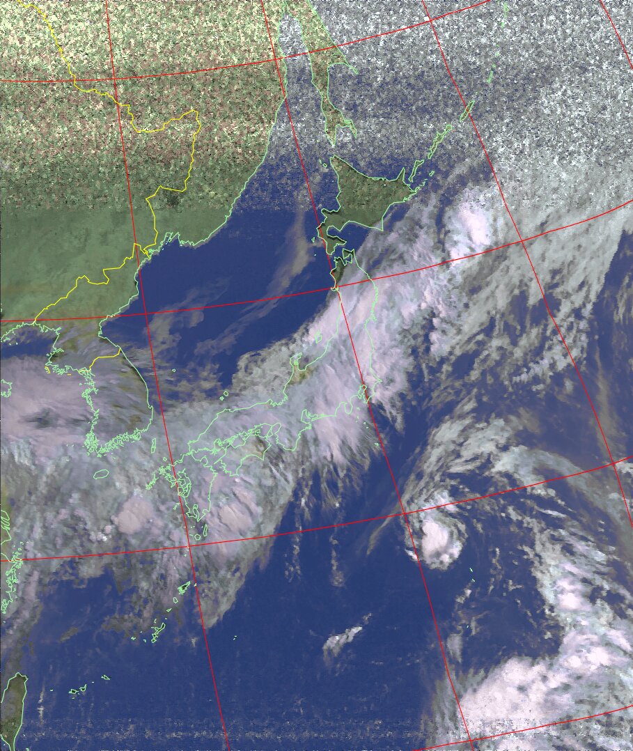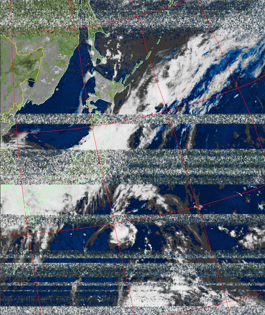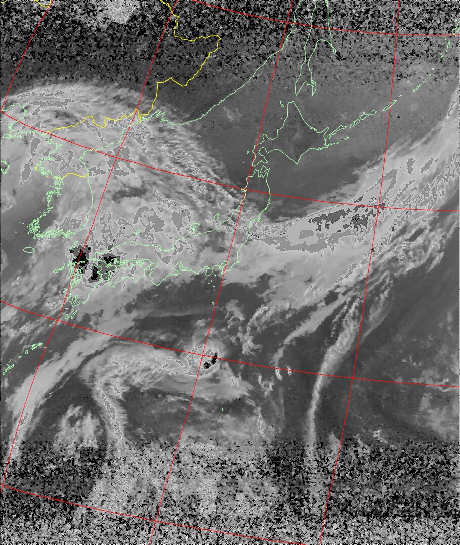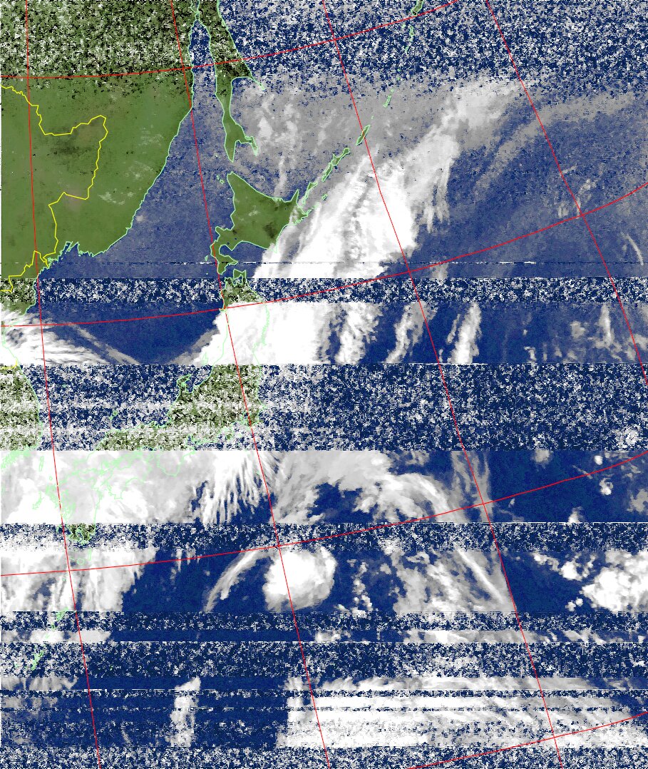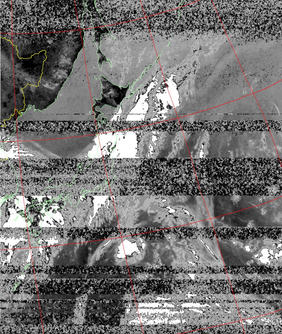 NOAA19 09:32:59~09:48:15 進行方向(北から南) 最大昇角(37°) 方角(東)