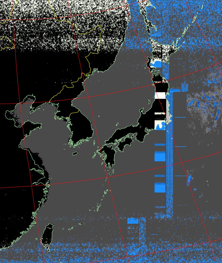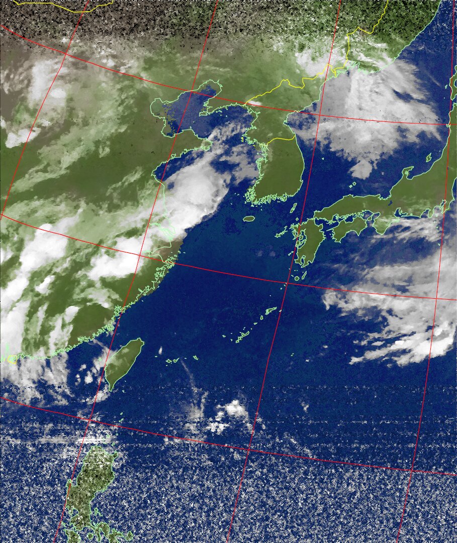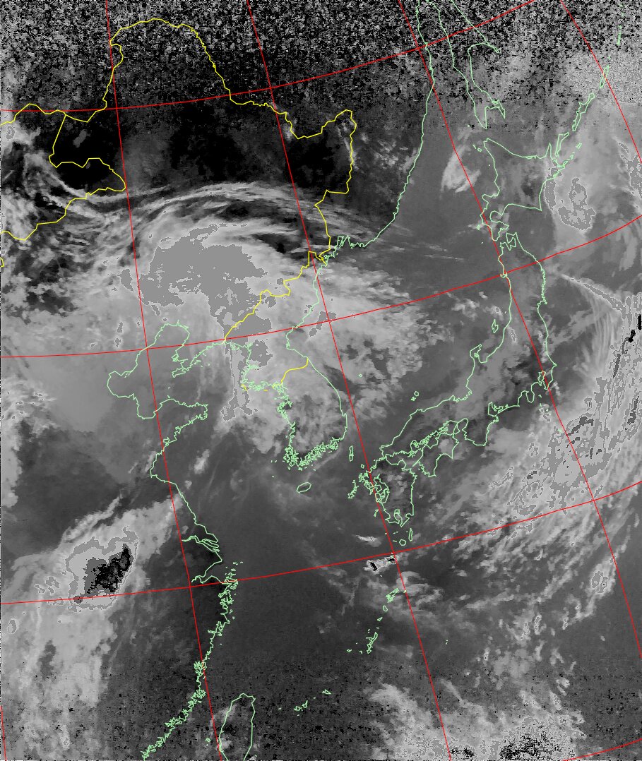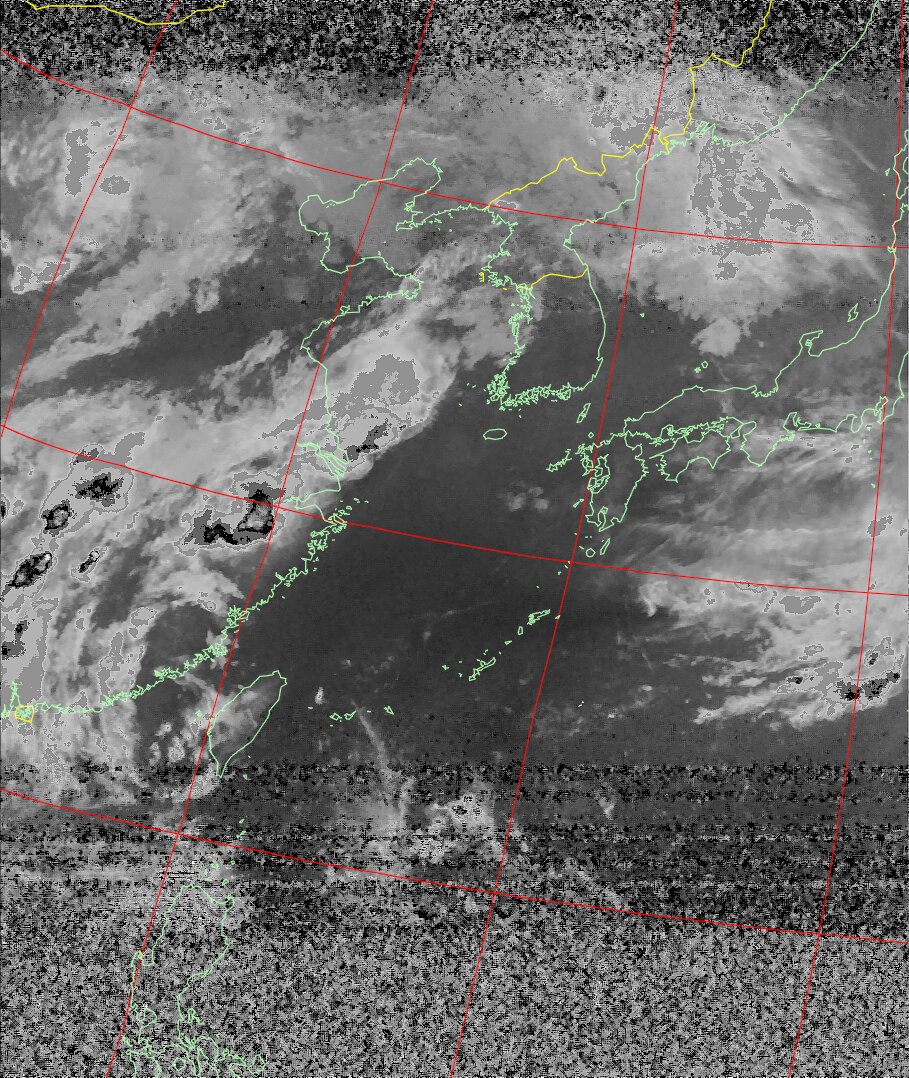 NOAA19 10:35:27~10:51:01 進行方向(北から南) 最大昇角(55°) 方角(西)