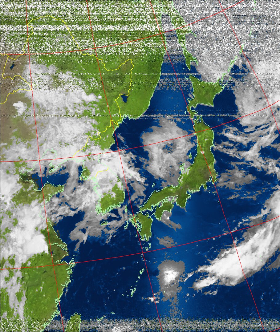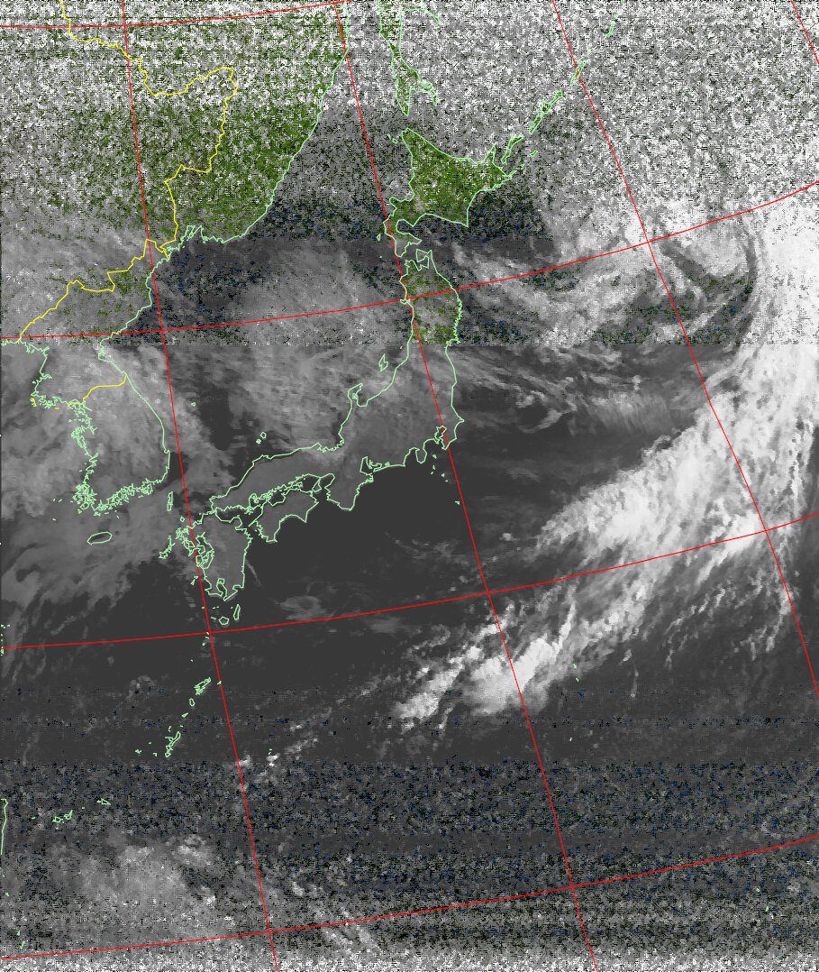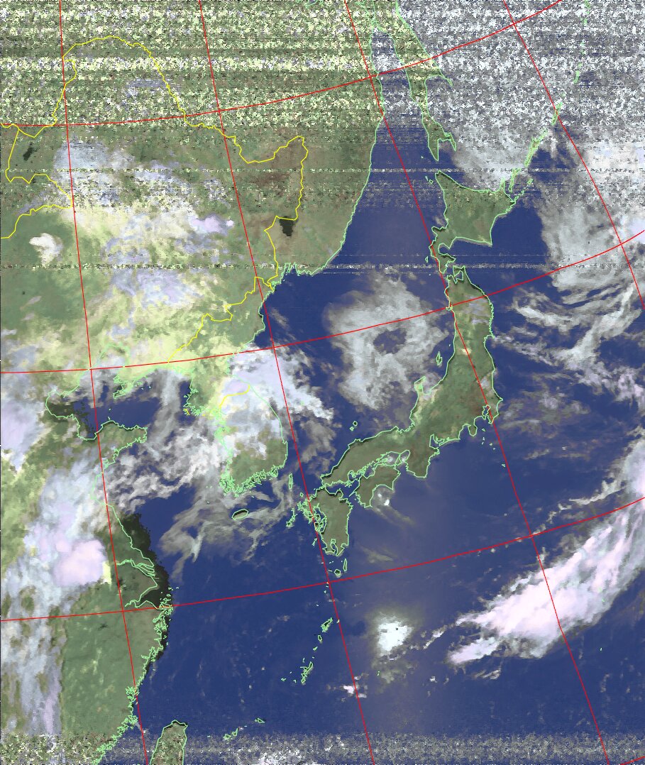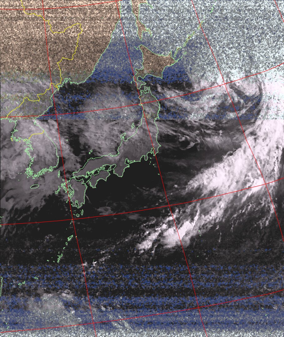 NOAA19 10:22:43~10:38:28 進行方向(北から南) 最大昇角(72°) 方角(西)