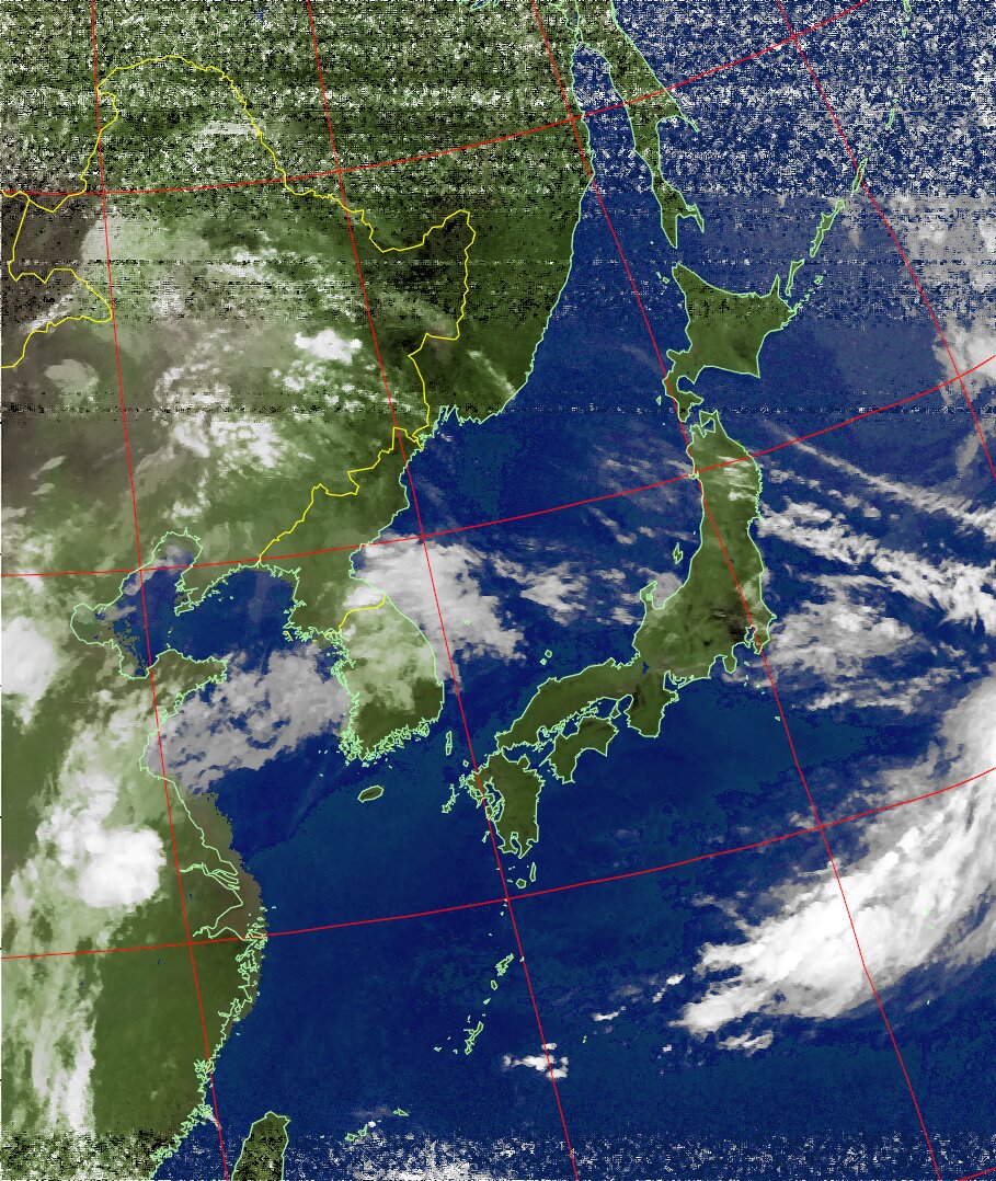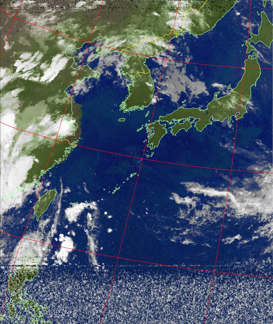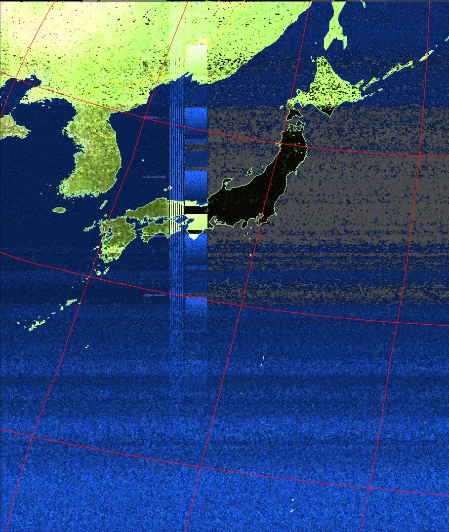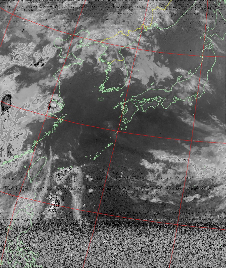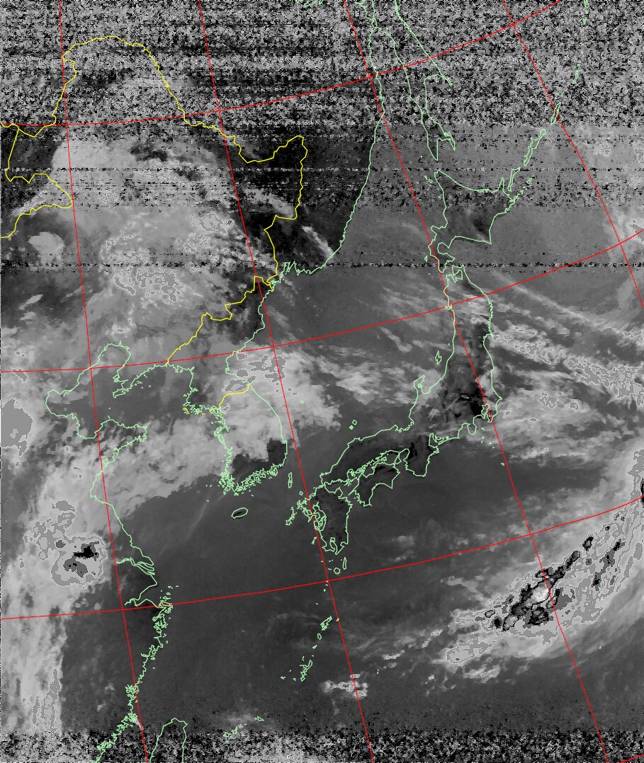 NOAA19 10:22:43~10:38:28 進行方向(北から南) 最大昇角(72°) 方角(西)