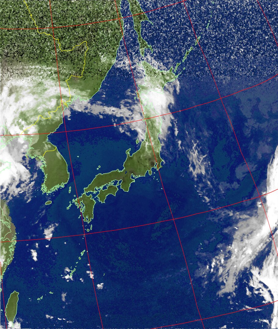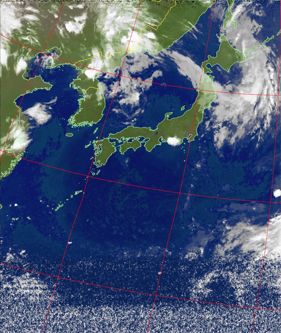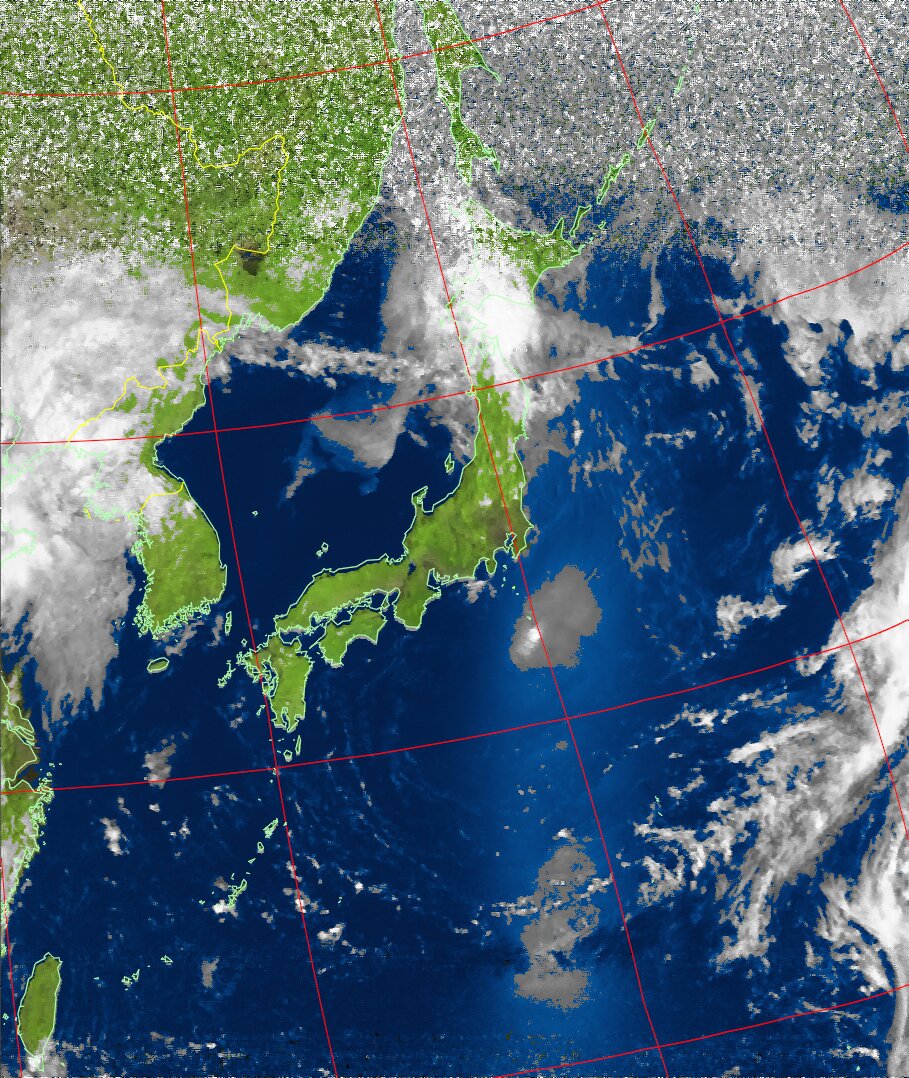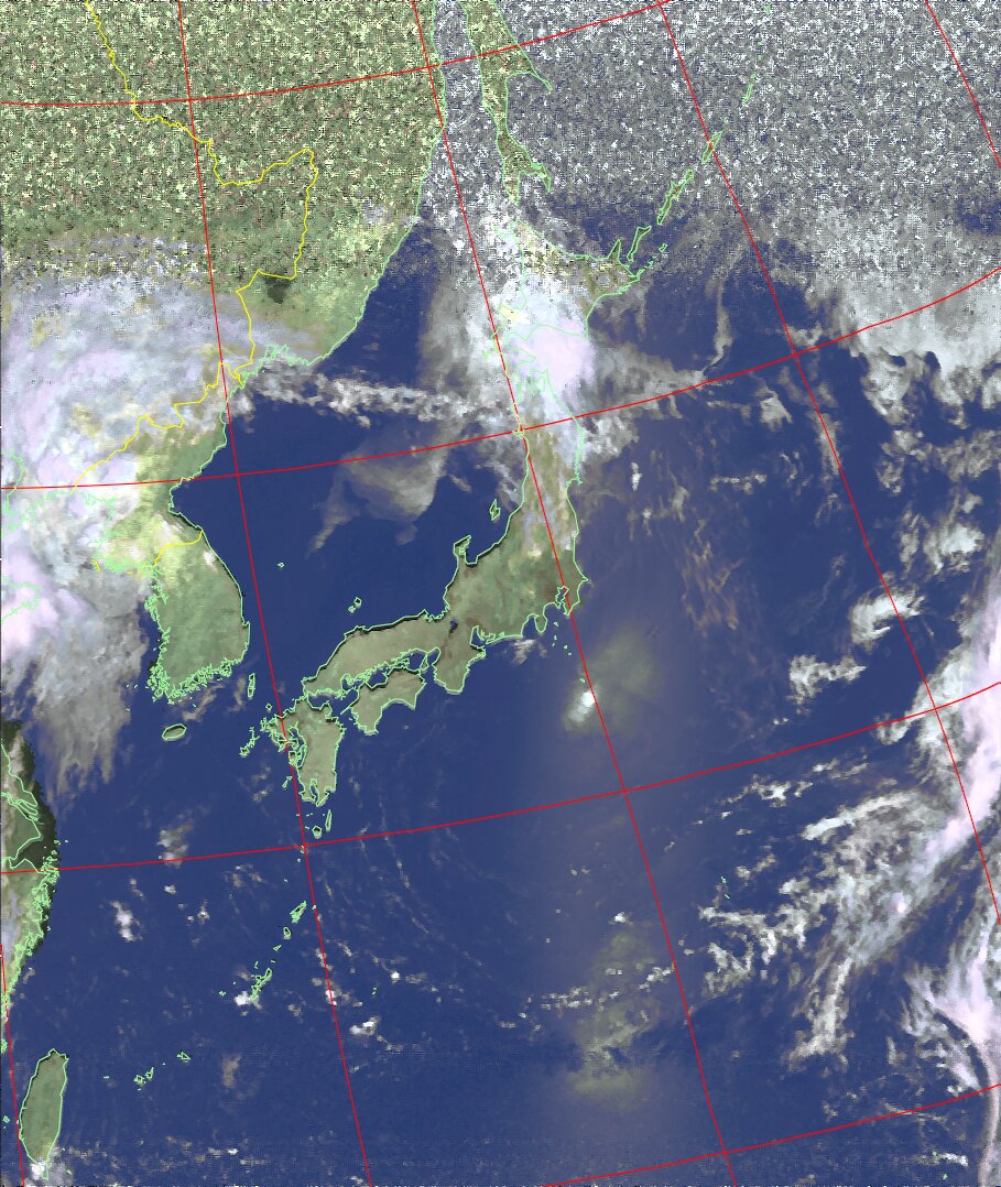 NOAA19 09:57:23~10:13:08 進行方向(北から南) 最大昇角(64°) 方角(東)