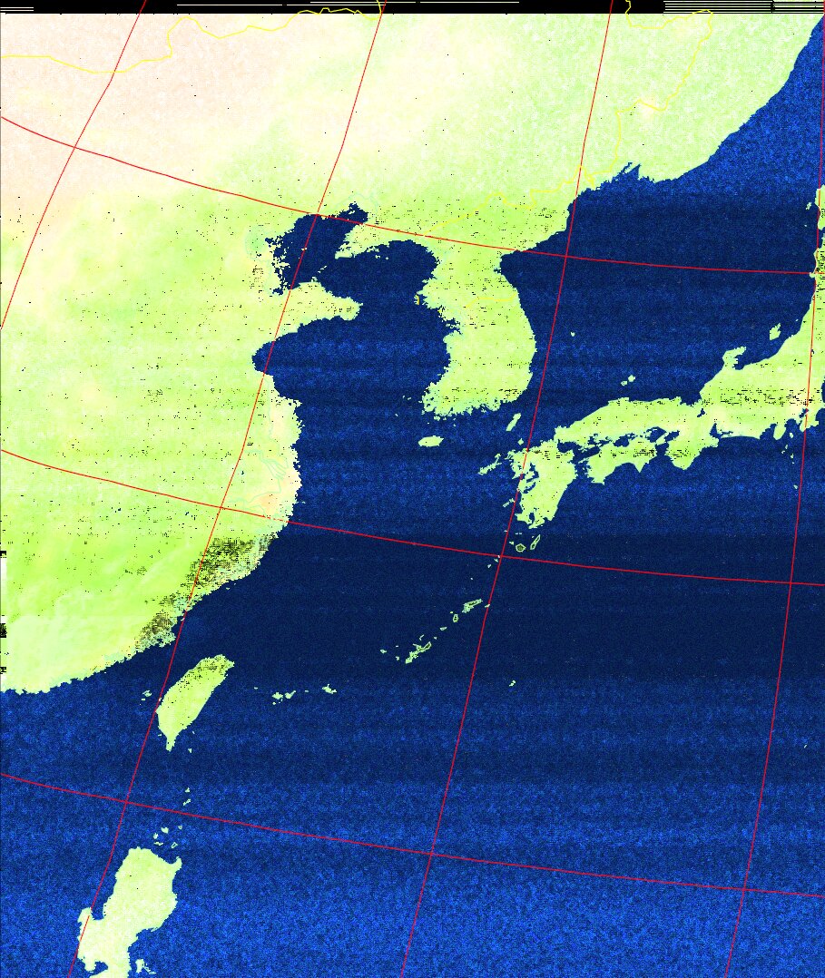 NOAA19 21:19:23~21:35:04 進行方向(南から北) 最大昇角(81°) 方角(東)