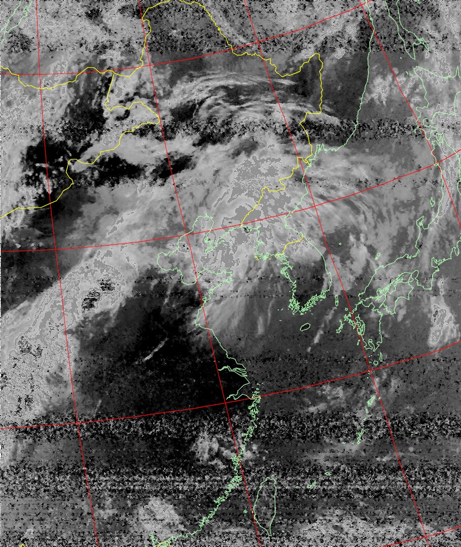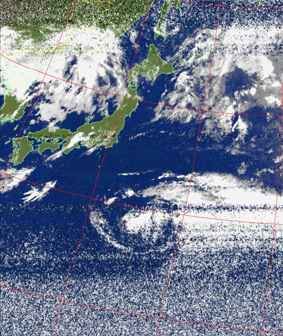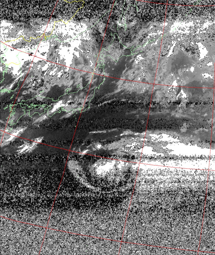 NOAA19 11:00:13~11:15:06 進行方向(北から南) 最大昇角(32°) 方角(西)