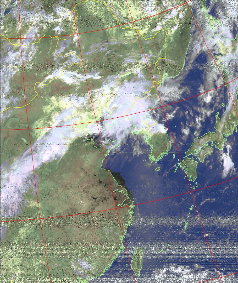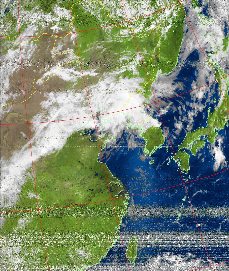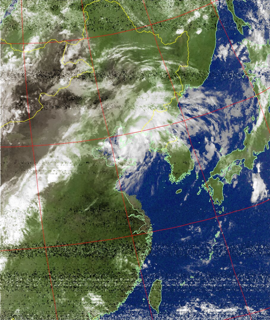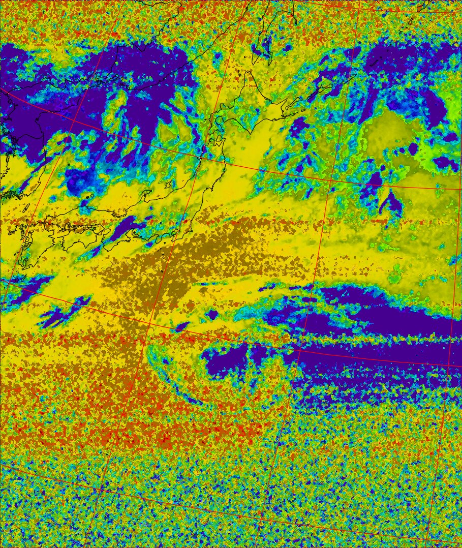 NOAA19 11:00:13~11:15:06 進行方向(北から南) 最大昇角(32°) 方角(西)