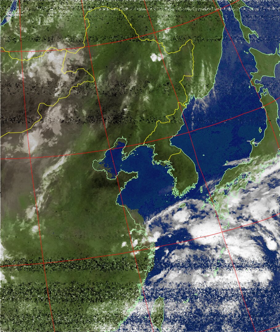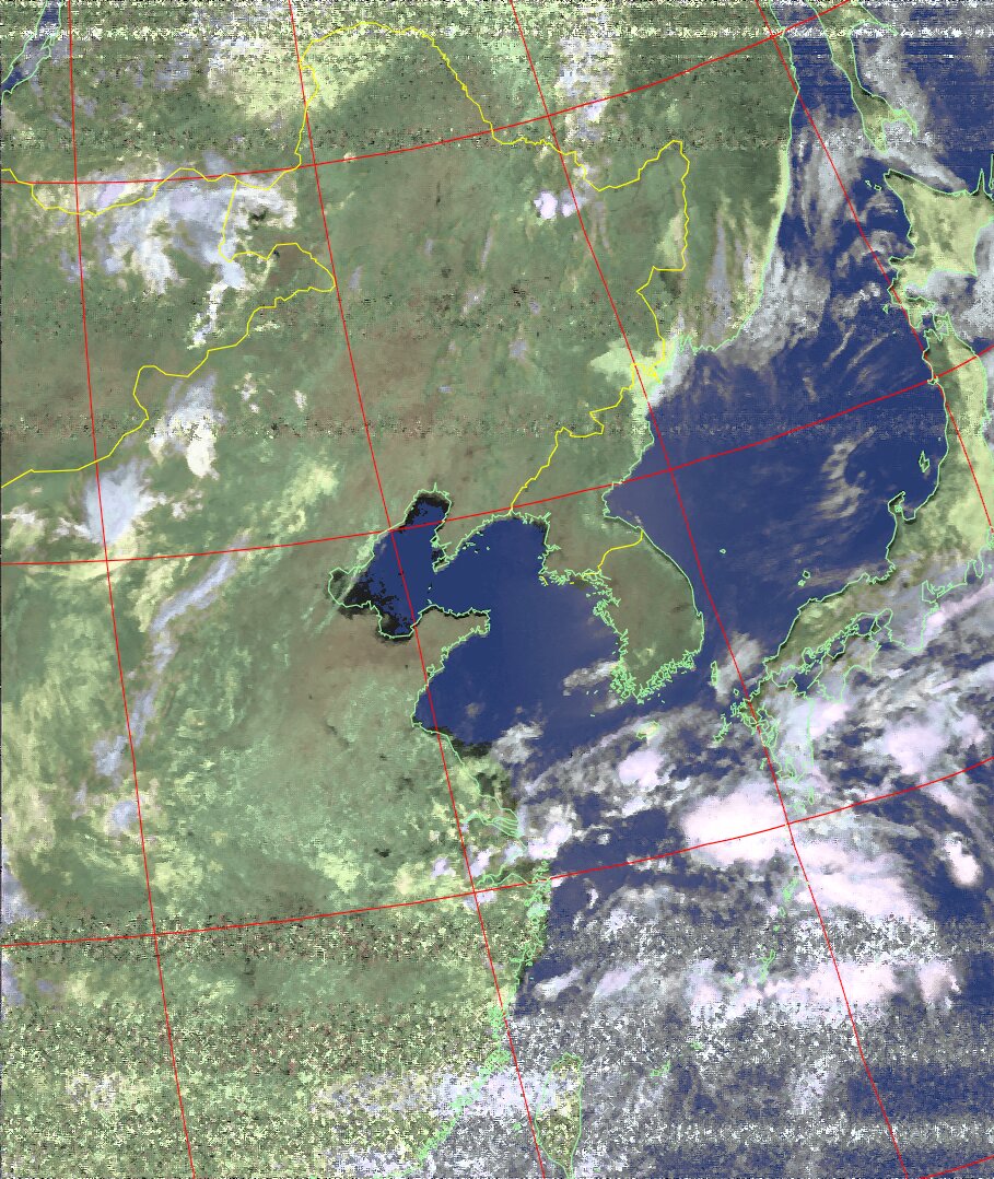 NOAA19 20:41:06~20:56:01 進行方向(南から北) 最大昇角(33°) 方角(東)