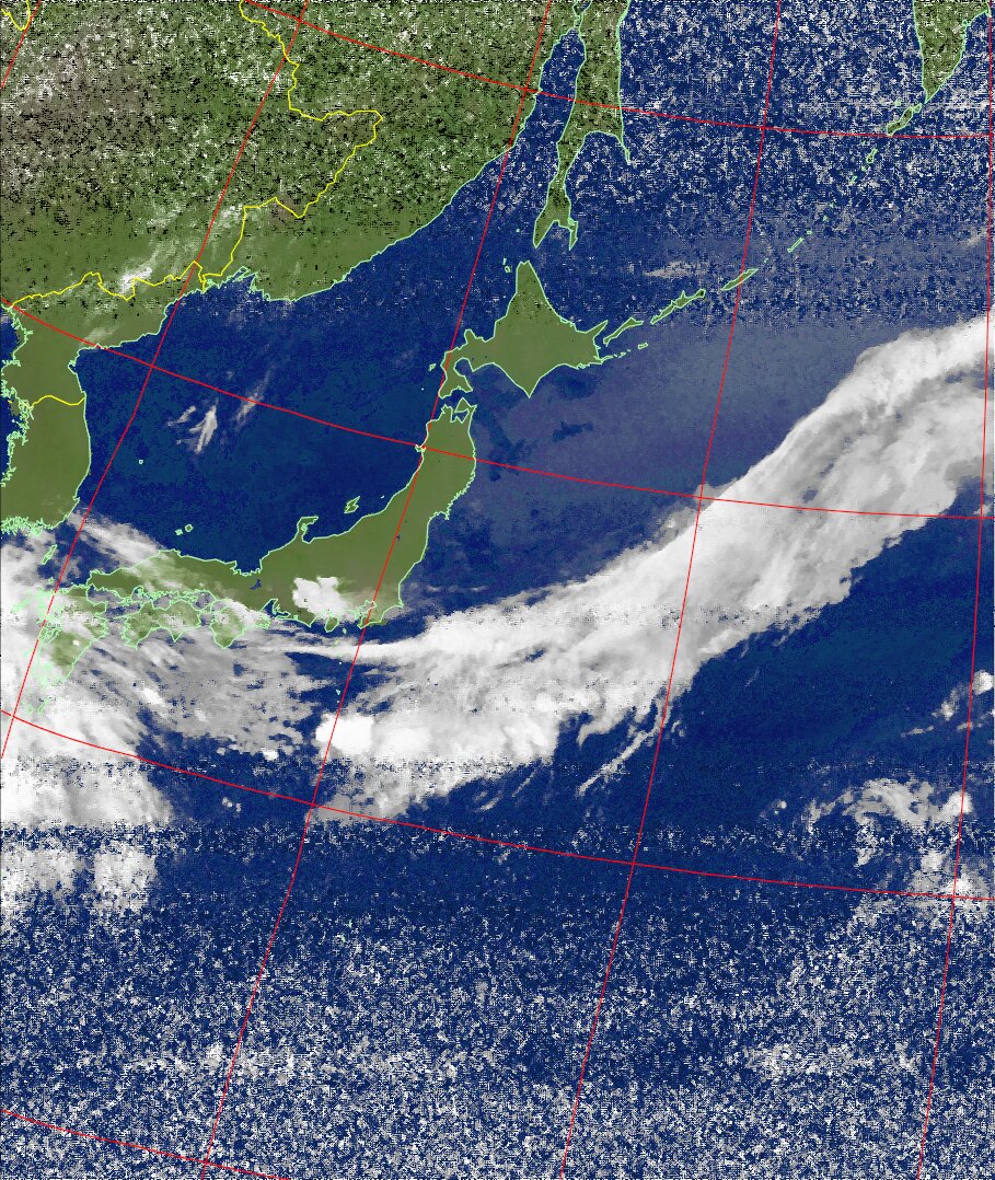 NOAA19 10:59:25~11:14:20 進行方向(北から南) 最大昇角(33°) 方角(西)