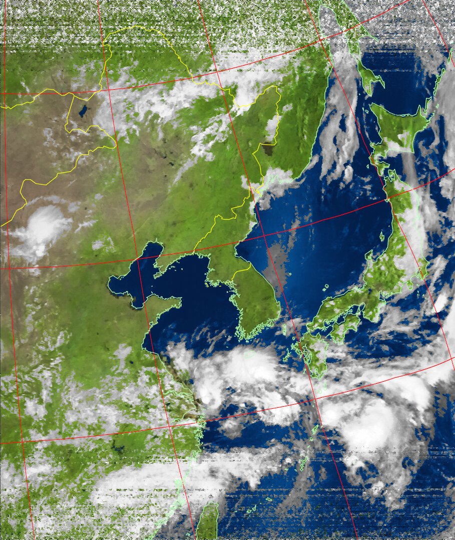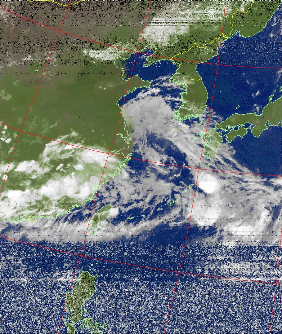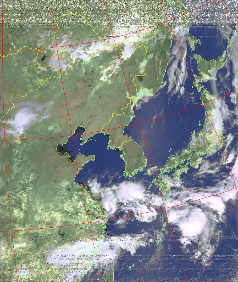 NOAA19 10:46:37~11:01:57 進行方向(北から南) 最大昇角(44°) 方角(西)